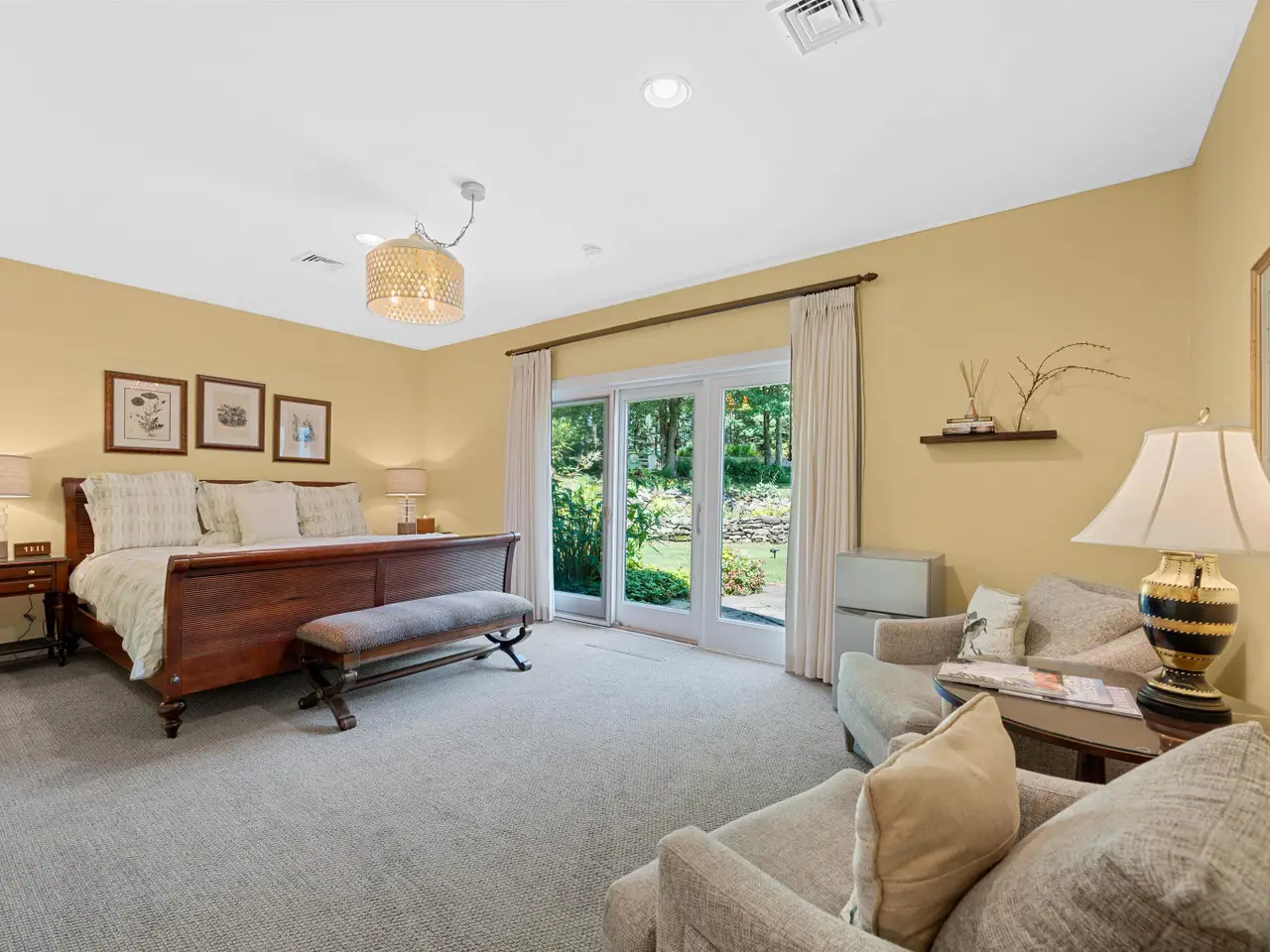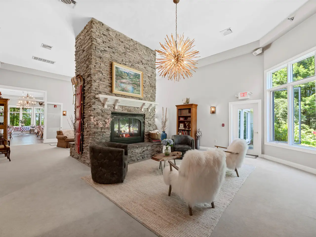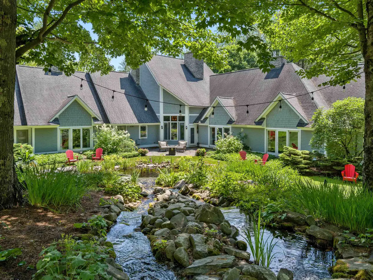A stunning mountain retreat offering an enchanting world of its own to explore. Settle in with desirable, luxury amenities within 9.24 sprawling acres, privately sheltered by forest with winding footpaths through nature. The property is ideally located 5 minutes to Stowe village and to the world class Stowe Mountain Resort. The property boasts a 3BR/3BA owners' house, a 1BR/1BA apartment, and 9 meticulously maintained bedroom suites, each with ensuite bathrooms, double sided gas fireplaces, tall ceilings, and outdoor garden terrace access. The living room has an amazing, vaulted ceiling with a double-sided stone fireplace hearth. A commercial kitchen supports the sunny, elegant dining room. Expansive movie and game rooms with access to a beautiful stone patio and firepit. Oversized 4-bay garage/workshop. Professionally designed landscaping and gardens with a tranquil, dramatic outdoor waterfall feature. Winding trails of walking paths through nature on this private property. Property has southern views of the Worcester Mountain Range and northern views of Mt. Mansfield. This property would be a superb private residence, short- or long-term vacation rental, multi-unit housing, PUD/condo conversion or similar development opportunity, or another business venture for the creative entrepreneur.