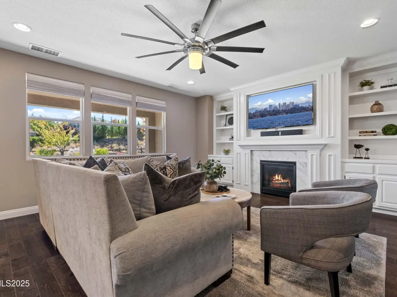 "Open house Saturday 10-18 from 12 to 3 pm" Welcome to your dream home in the prestigious Somersett Golf Community of Reno, Nevada! This stunning, newer residence boasts a desirable single-level open floor plan, perfect for entertaining family and friends. Step inside to discover elegant upgrades that mirror those found in the model home, including exquisite marble countertops and beautiful real hardwood flooring. One of the standout features of this home is the Tesla solar with a Powerwall, ensuring you're never left in the dark and virtually no power bills! The exterior is a gardener's paradise, adorned with an array of fruit trees, vibrant flowers, and aromatic herbs. Enjoy warm evenings on the expansive covered patio, ideal for hosting gatherings or simply relaxing outdoors. Additional highlights include ceiling fans in the main living area and all bedrooms for year-round comfort, an impeccably organized garage with hanging shelves, and soft-close drawers throughout the kitchen. Custom window treatments, including plantation shutters, add a touch of sophistication to every room. This home has been meticulously maintained and is in pristine condition. Don't miss your chance to own a piece of luxury in Somersett—schedule your showing today!