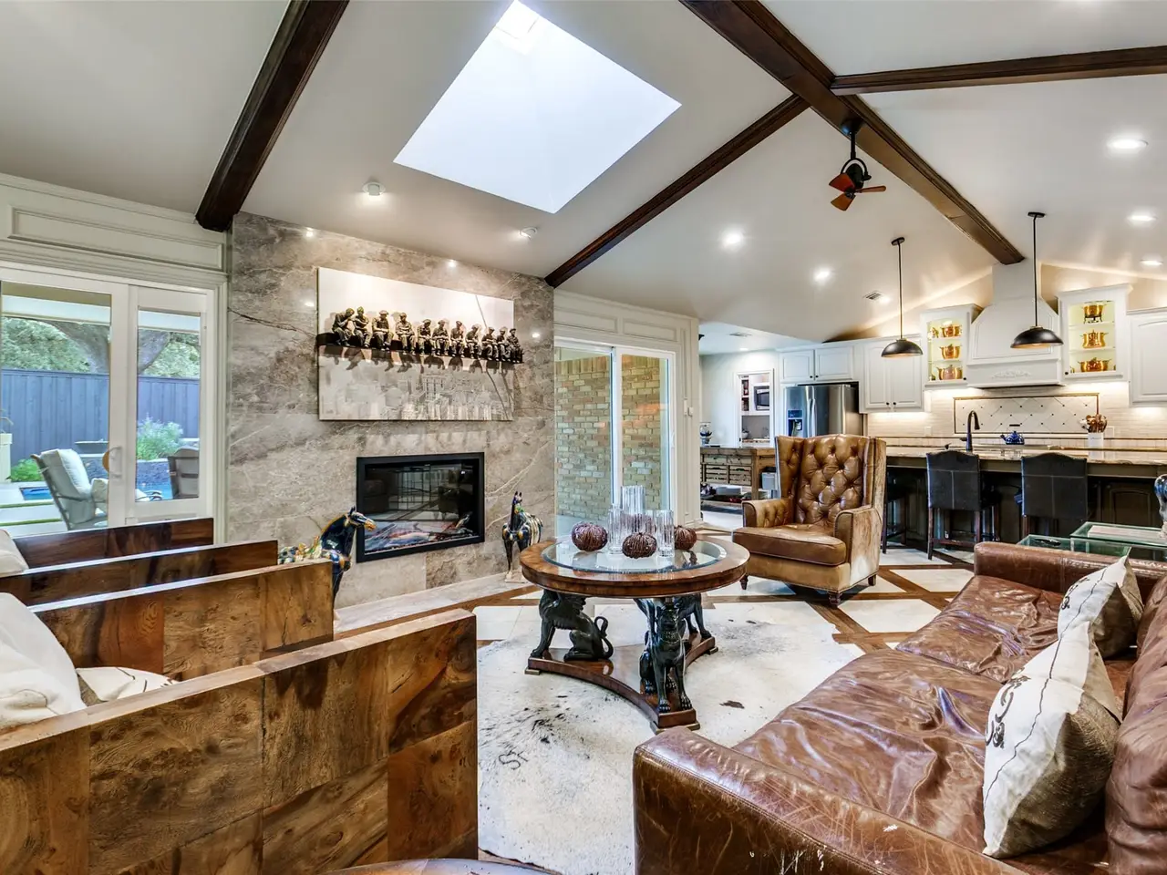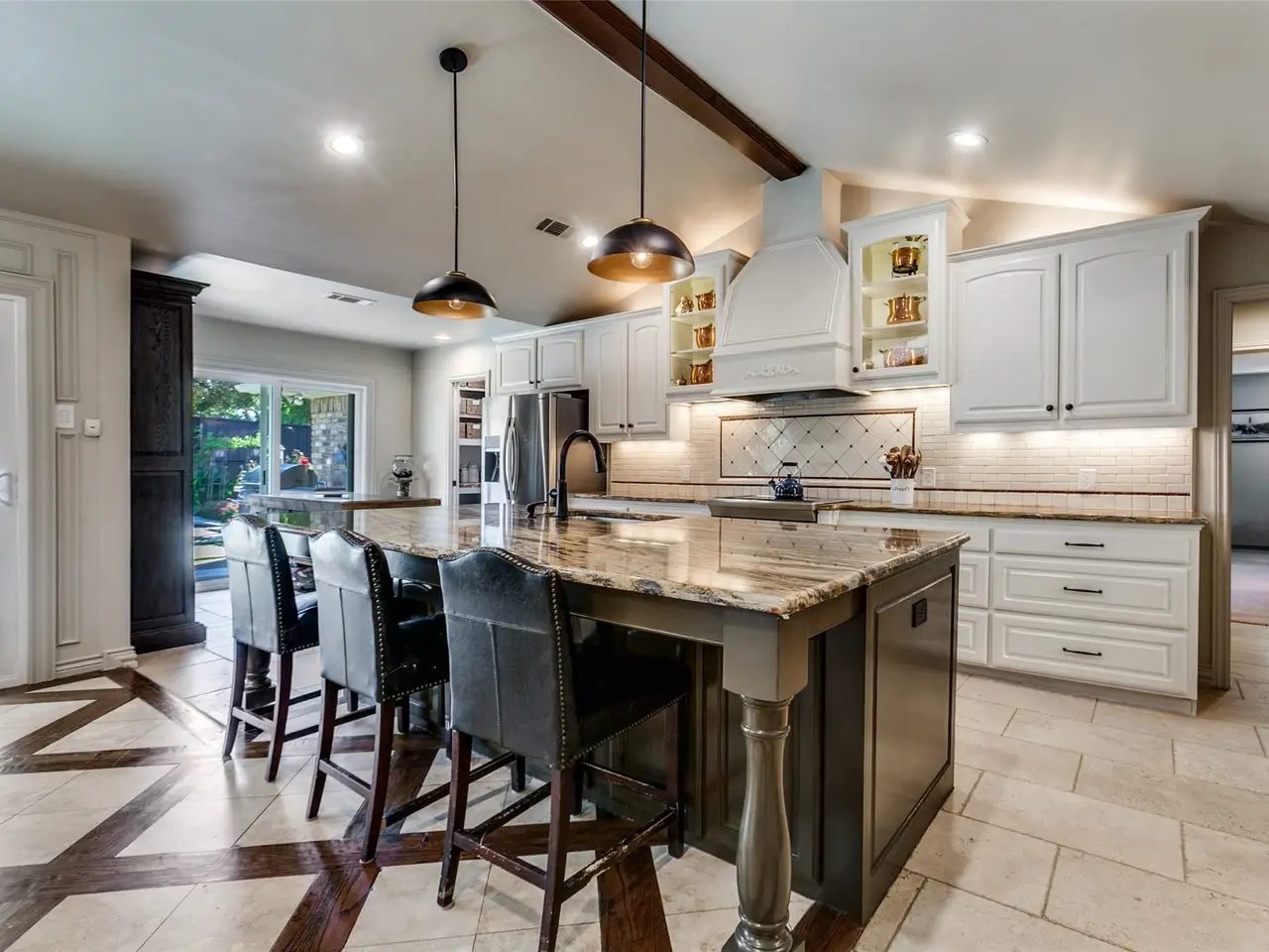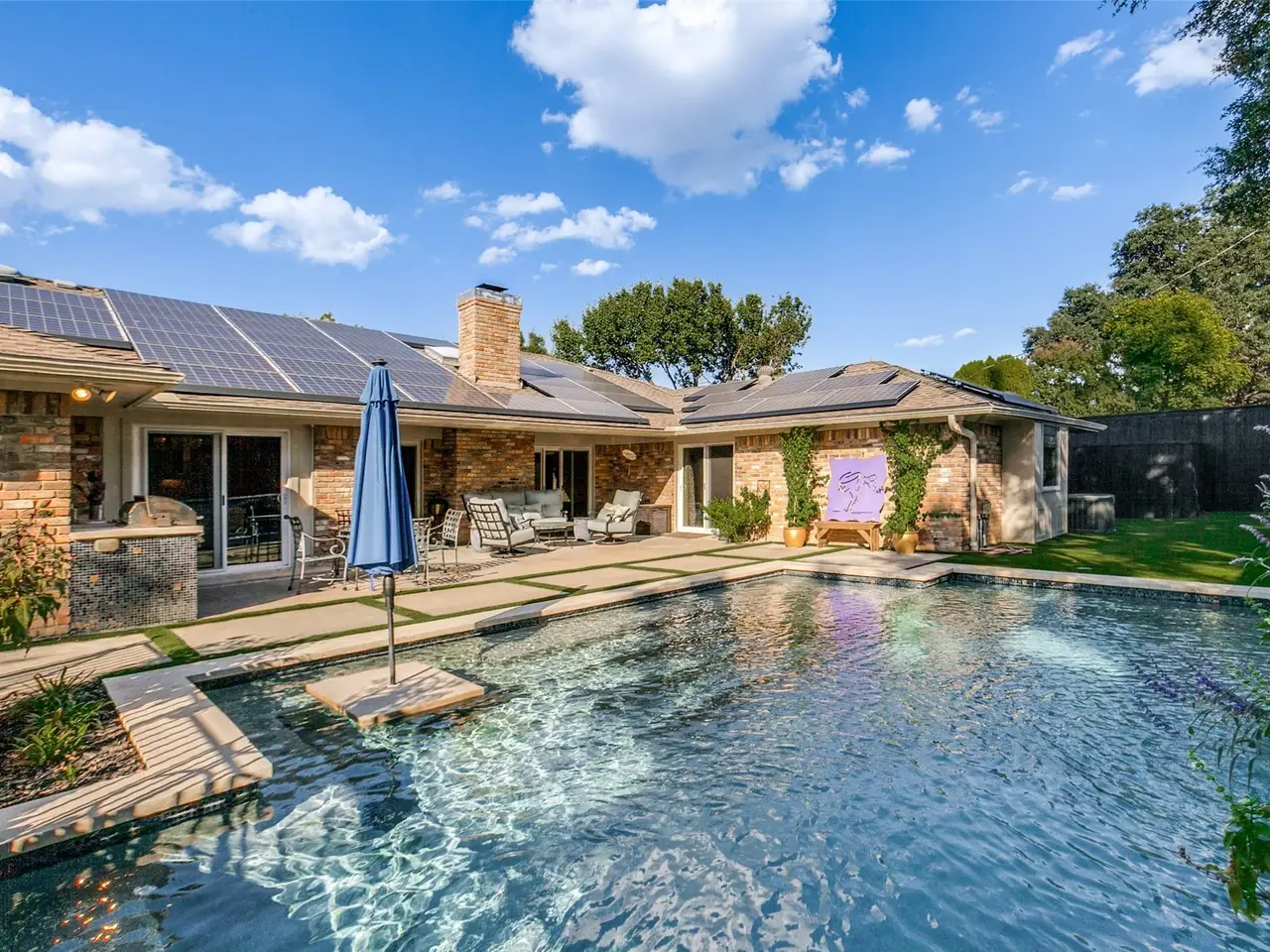 Wonderfully updated, elegant, traditional home with huge rooms on a large, private, corner lot, on its own little island! Cast iron plumbing has been replaced! Spacious living room is open to kitchen, with a fireplace, skylight, vaulted ceiling & 2 glass double doors leading to the back yard. Kitchen has a large island, granite countertops, wet bar, tons of storage & a breakfast room overlooking the pool. The primary bedroom has a raised ceiling, wood flooring, access to the back yard & ensuite bath, with separate shower & jetted tub. Second and third bedrooms have a Jack & Jill bath. Fourth bedroom is split & could be a game room or in-law suite with its own entry & full bath. Large utility room with sink, built-in cabinets & room for freezer. Back yard has a patio, grass, built-in grill & pool with waterfall & fire features. The garage is oversized & ample room for parking on private drive or circle drive. Recent updates & upgrades include: Kitchen, den, pantry remodel (2025), French Drain installed (2024), Art Studio built (2024), Fence perimeter & pool gate installed, including electric security gate, driveway replaced (2024), Artificial grass installed in back yard (2024), Lifetime doors & front windows replaced (lifetime guarantee) (2023), Replacement of soffit & fascia for entire house (2023), Water heater replaced (2020), Carpet in 3 secondary bedrooms replaced (2020), Water shutoff & sprinkler underground control replaced (2020), Critter Control: removal & installation of attic insulation, critter retardant, repairs to HVAC systems, electric temperature controlled attic turbines (2020). Complete update list available upon request. Located in the Private School Corridor, ON the Northaven Trail, walking distance to the Town North YMCA and Northaven Park offering a playground, tennis courts & baseball field! Significant Tax Break allowed due to location!