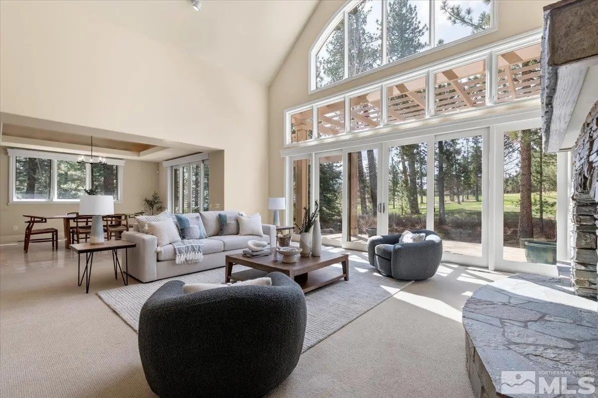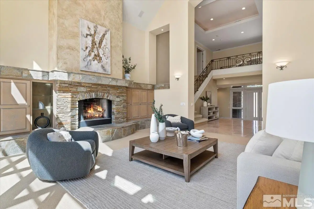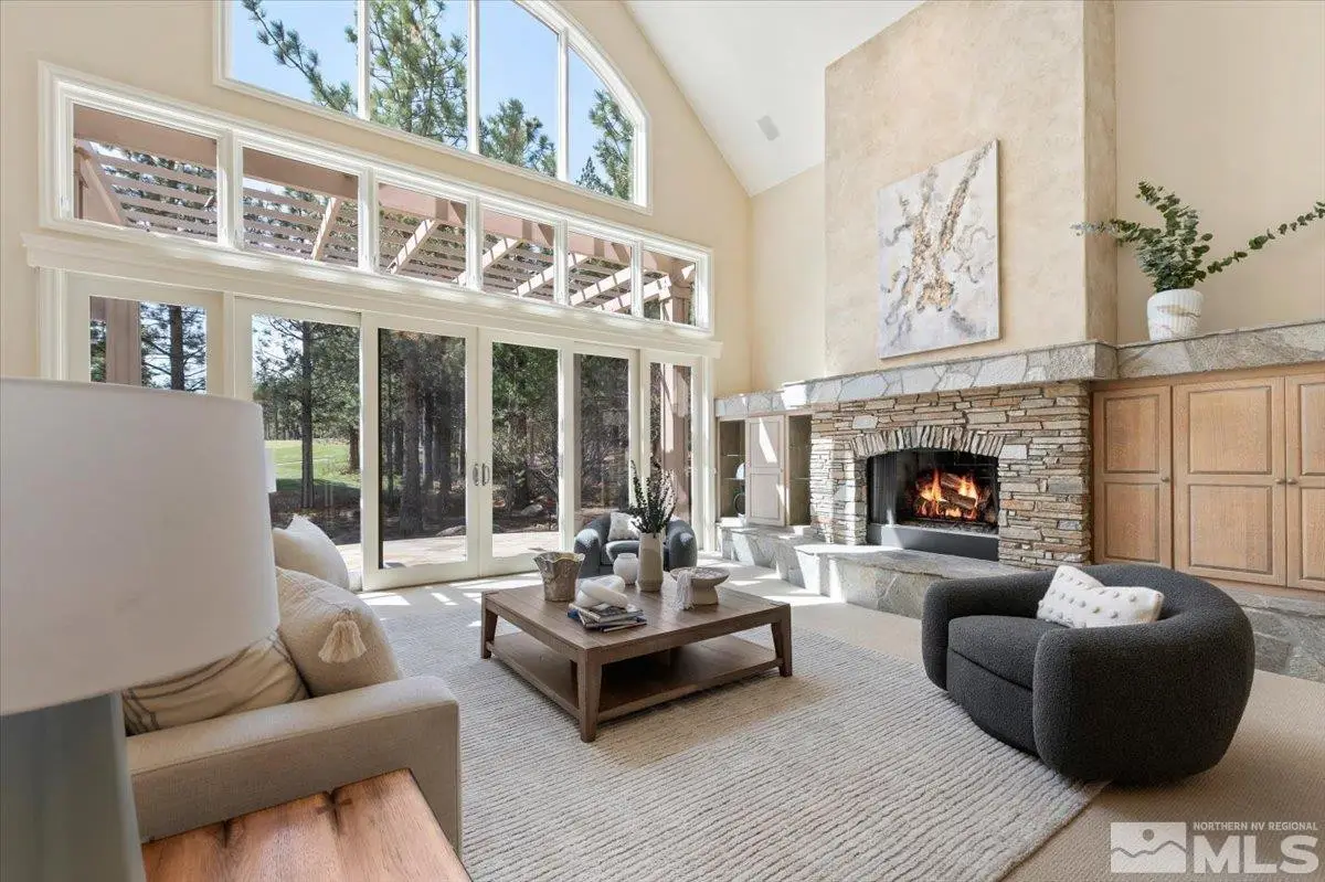 Breathtaking panoramic views in Montreux, overlooking the 14th & 15th fairways, Sierra mountains & tall pines. Soak in the Southern exposure through floor-to-ceiling windows. Featuring 2 spacious primary suites (up & down), 4 en suite Bedrooms in total, 5 baths, a den and a bonus room, the open-concept design is ideal for entertaining. Sophisticated yet warm, this home offers luxury and comfort in perfect harmony. Montreux Sports membership included. Upgrades abound including a large rock fireplace in the family room, a brand new 48-inch Sub-Zero, large walk-in closets, garage heater, central vac, whole house stereo system, expansive landscaping, etc. Montreux is Renos premier gated Nicklaus golf course community. Ideal location, only 20 minutes to the Reno/Tahoe Airport & 25 mins to Lake Tahoe. Close to the entry & miles of trails.