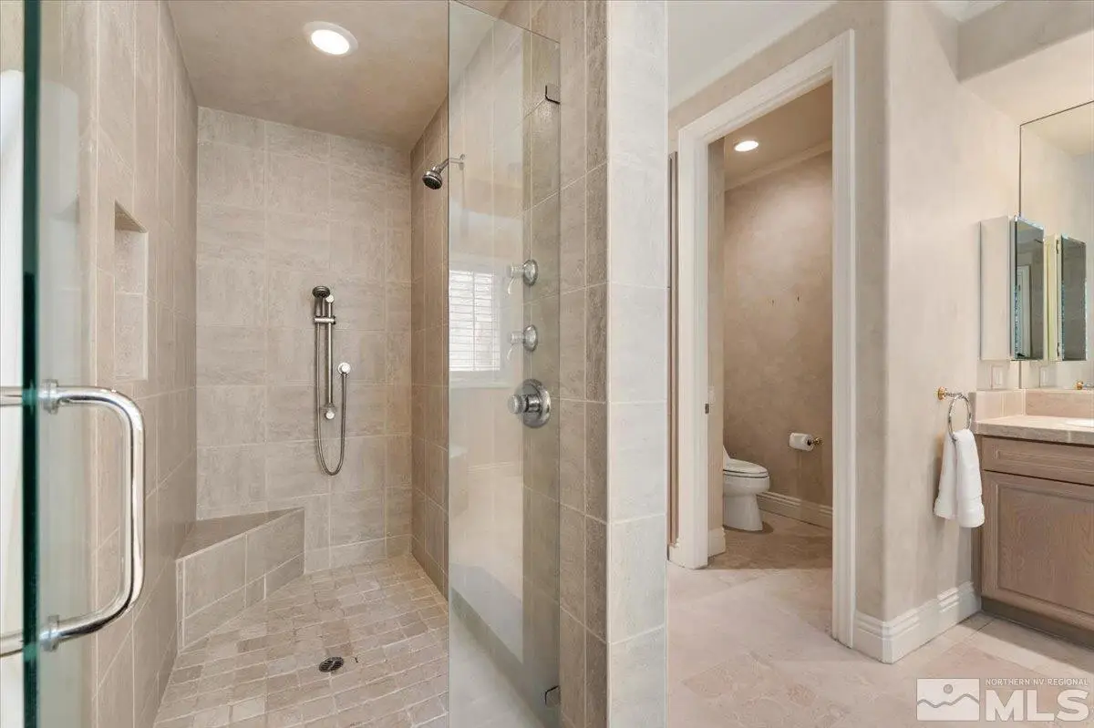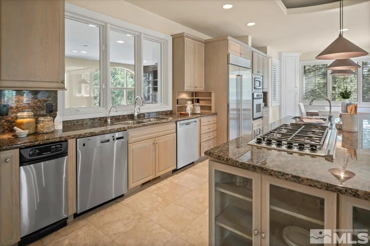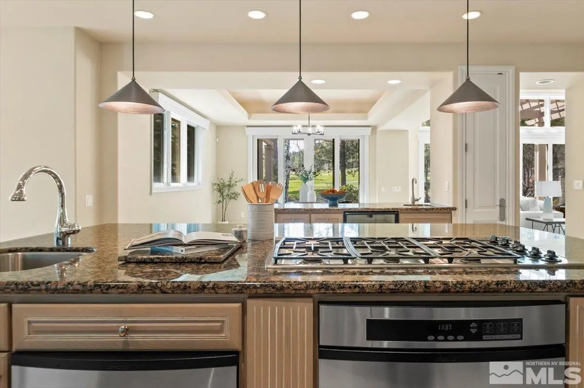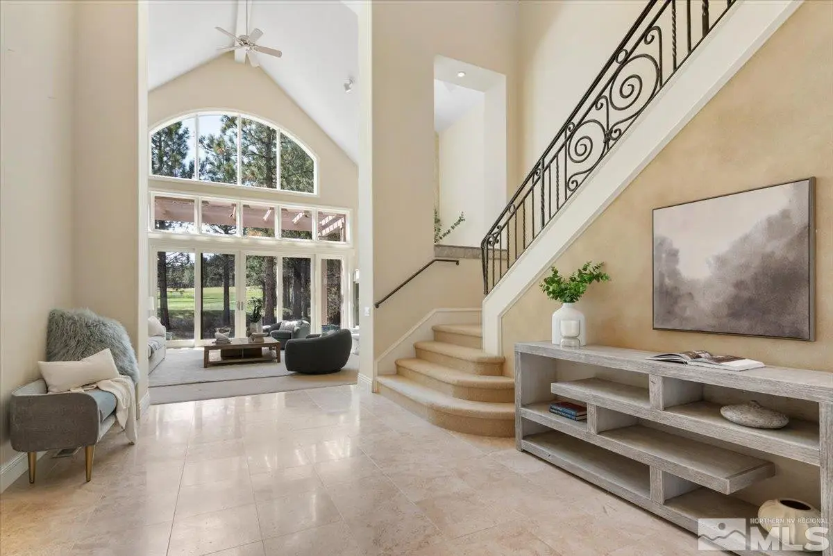 Breathtaking panoramic views in Montreux, overlooking the 14th & 15th fairways, Sierra mountains & tall pines. Soak in the Southern exposure through floor-to-ceiling windows. Featuring 2 spacious primary suites (up & down), 4 en suite Bedrooms in total, 5 baths, a den and a bonus room, the open-concept design is ideal for entertaining. Sophisticated yet warm, this home offers luxury and comfort in perfect harmony. Montreux Sports membership included. Upgrades abound including a large rock fireplace in the family room, a brand new 48-inch Sub-Zero, large walk-in closets, garage heater, central vac, whole house stereo system, expansive landscaping, etc. Montreux is Renos premier gated Nicklaus golf course community. Ideal location, only 20 minutes to the Reno/Tahoe Airport & 25 mins to Lake Tahoe. Close to the entry & miles of trails.