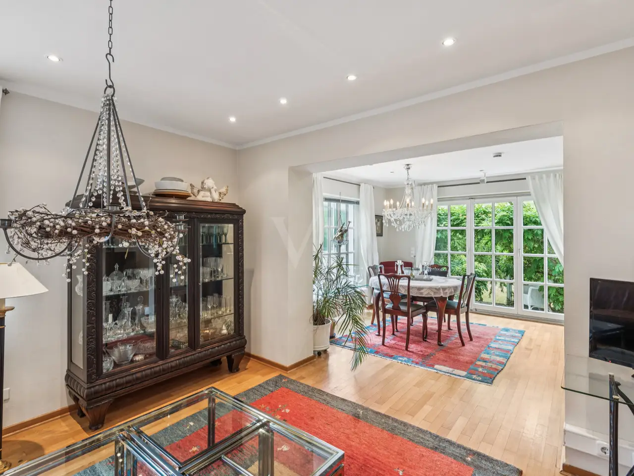 This charming home from 1936 boasts a generous amount of space and a large, mature garden - the perfect combination for families looking for space, tranquillity and development opportunities. With a living space of approx. 161 m² and a spacious plot of around 901 m², this property offers plenty of room to live, feel good and create. The well-kept house impresses with its well thought-out room layout: A total of eight rooms are available - ideal for families with children, home offices, guests or hobbies. Four bathrooms ensure real living comfort and relaxed morning routines without waiting times. A real highlight is the cozy fireplace in the living area, which creates a warm and cosy atmosphere in the cooler months of the year - whether over a glass of wine in the evening or a relaxing Sunday afternoon with the family. The technical equipment dates from around 1990 and therefore offers a solid foundation for individual modernization. If you want to preserve the charm of the house and at the same time meet modern requirements, this is the perfect starting point. The garden is a real paradise: spacious, green and beautifully ingrown, it invites you to play, relax and be creative in your garden design. Whether it's relaxing hours on the terrace, exuberant children's parties or your own vegetable garden - outdoor living is a pleasure here. A private fountain ensures that the garden always stays nice and green. The spacious double garage offers plenty of space for vehicles of all kinds and a really large garden shed can be used to store all garden tools. The location also speaks for itself: situated in a quiet and mature residential area, you benefit from short distances to shopping facilities, schools and public transport. Everything that makes family life enjoyable is close by. This house offers more than just four walls - it is a place where life is created, memories grow and personal living dreams can come true. Be inspired by the atmosphere and discover the many possibilities this home has in store for you. Arrange a viewing today - we look forward to showing you this special home in person!