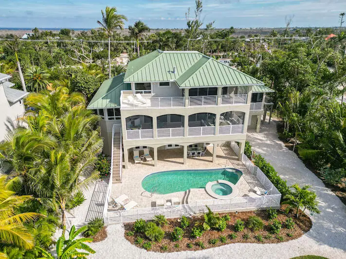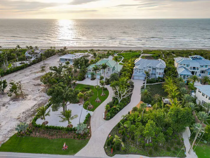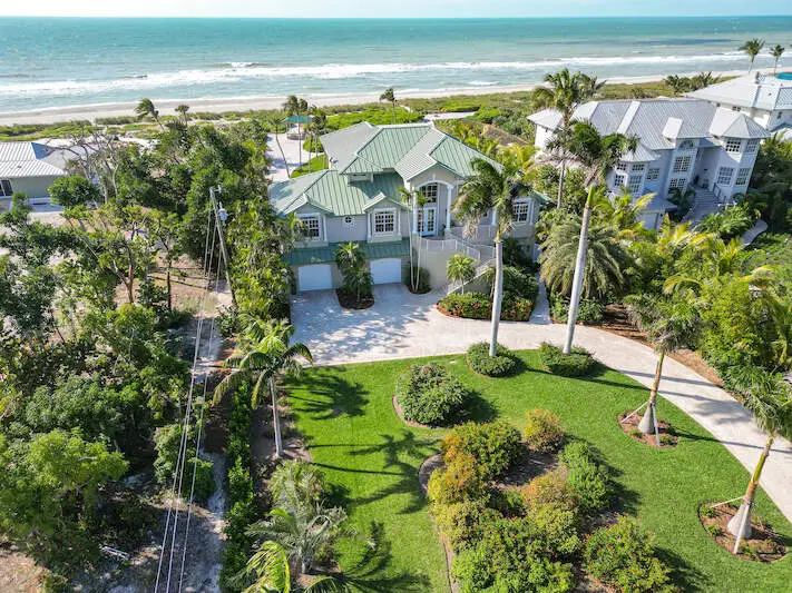 This meticulously refined Gulf-front estate embodies the essence of tropical luxury-where timeless craftsmanship meets modern elegance. Thoughtfully enhanced over time, SOUTH HAVEN blends comfort, sophistication, and functionality at every turn. Recent updates include a redesigned kitchen and dining area, a reimagined primary bath, and a new roof (2023), along with premium finishes and fixtures throughout. The main level welcomes you with a sun-filled foyer leading to multiple guest suites, including a dual guest wing for added privacy. The chef-inspired kitchen combines contemporary design with coastal warmth, opening to a bright dining alcove ideal for gatherings. The living room frames uninterrupted Gulf views, creating a serene backdrop for every moment. Upstairs, the owner's suite commands sweeping ocean vistas and features a stone-clad electric fireplace, woven flooring, and a tranquil, spa-like ambiance. The ground level includes a spacious garage, flexible-use spaces, and elevator access to all floors for effortless convenience. Outdoors, the estate is graced by towering Royal Palms, a resort-style pool with sun shelf, and covered lounging and dining areas designed for relaxed entertaining. Beyond the pool, a private beachside yard with manicured greens, a seaside walkway, and a charming shorefront cabana completes the coastal experience. From its refined architecture to its breathtaking sunsets, South Haven stands as a true Captiva masterpiece-where every detail celebrates the art of island living.