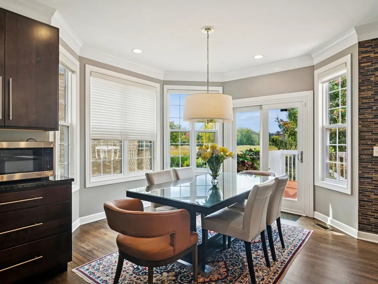 A HOME LIKE THIS DOES NOT COME ON THE MARKET OFTEN. Make sure you don't miss this stunning, elegant home in Peregrine Lake Estates. The perfect blend of open concept living yet the right amount of separation for cozy, defined spaces. A perfect floor plan for entertaining, working, and just everyday living. Enter the elegant foyer with soaring ceilings, porcelain tile flooring, breathtaking lighting, and a winding staircase. A lovely formal living room and dining room greets you at the entrance with beautiful bay windows & rich dark wood floors. The family room feels so luxurious with the 18 ft. soaring ceilings, and updated fireplace yet it's the perfect spot for relaxation. The updated gourmet kitchen with granite countertops, backsplash, center island, pantry, and a spacious eating area is both functional and tastefully done. Need to go upstairs? This kitchen is complete with a back staircase! A charming office with built-ins and a full bath on the first floor make for ideal main floor living. The primary suite is a perfect blend of warmth & elegance with a walk in closet, a sitting area with built-ins, and an lovely updated primary bath. The second bedroom has its own full bathroom and walk-in closet. Two more generous size bedrooms and another full bath complete the second level. Downstairs is the full walkout basement that will take your breath away with everything it has to offer. Flooded with tons of natural light all afternoon with the western exposure, this is the absolute must see spot for all your gathering and entertaining. A full bar in the rec room area, another family room area toward the rear, a full bath and another guest suite or office if needed. All freshly painted, recessed lighting, and great ceiling height make for the ideal additional living, entertaining space. And of course you can just walk right outside to your backyard retreat. Whether it's up on the deck or on the patio just enjoy the view of nature. Peregrine Lake Estates is the perfect blend of comfort, elegance and nature all in one of Palatine's most desirable neighborhoods. With the mature tree lined streets, and tranquil ponds this is such a lovely picturesque community yet close to everything you could want as far as shopping, dining, parks, and award winning Fremd High School. Updates include*NEW ROOF 2023* 2023 NEW HOT WATER HEATERS* NEW EPOXY GARAGE FLOOR JUST COMPLETED* BRICK PAVER DRIVEWAY REDONE 2024* Come see this scenic beauty and the lasting value of this location today.