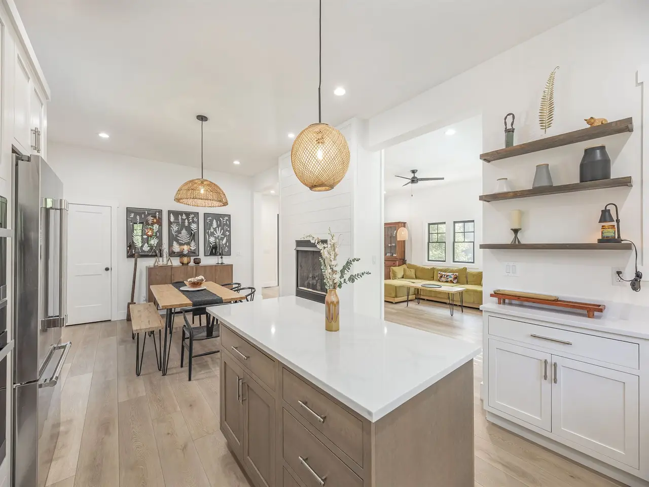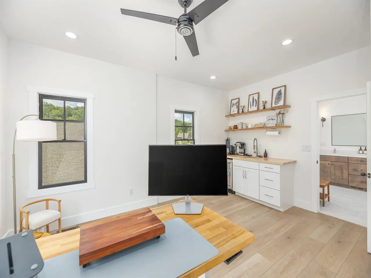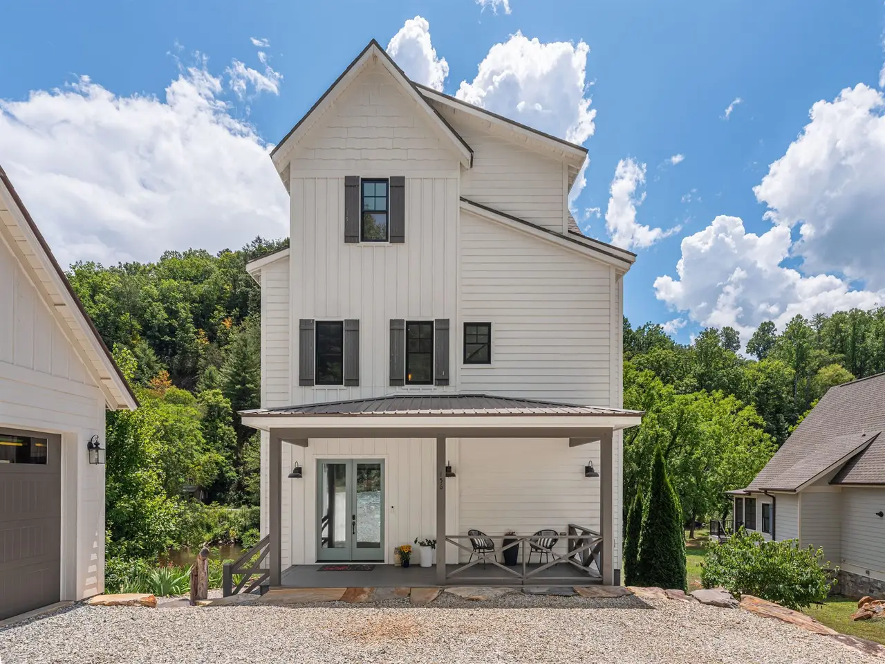 This luxurious modern farmhouse is perfectly situated above the tranquil Tuckasegee River, a fisherman's dream stocked with trout and perfect for floating or kayaking directly from your backyard. The gently sloping, oversized lot offers one of the most desirable settings in the neighborhood, with a large grassy backyard, no flood damage during Hurricane Helene, and plenty of parking for family and guests. Inside, the home features a spacious open floor plan with beautiful river views from nearly every window. The main level includes a large living room that flows into an elegant kitchen and dining area with a half bath. From here, step onto one of two expansive Trex decks, ideal for lounging and entertaining while overlooking the river. The upper level serves as a true retreat, with a primary bedroom that opens into a spacious office with a sleek wet bar, a private Trex deck, and a spa-like bathroom with a soaking tub and tiled shower. The third floor includes two generous guest bedrooms, each with its own private full bathroom. A Redwood Outdoors 6-person barrel sauna, featuring a powerful 8kW Harvia WiFi-controlled heater and a full glass wall that looks out over the water, creating a private wellness experience. The home also offers a large covered front porch, an oversized two-car garage with an unfinished upstairs, and tasteful stone landscaping that ties everything beautifully into the upscale neighborhood. Built with 2x6 construction, the home includes industrial-grade LVP flooring throughout, with durable carpet on the stairs. The design blends premium craftsman style with modern farmhouse touches. It comes fully furnished (excluding a few select pieces) and includes high-end appliances such as a washer, dryer, and refrigerator. The kitchen features premium Miele appliances, including the oven, microwave, and dishwasher. Enjoy the benefits of natural gas, including a gas stove and a grill hookup. The property is also connected to high-speed fiber internet, making it ideal for remote work or streaming. Located just seconds from the Western Carolina University campus, this home offers both convenience and privacy. The community allows select short-term rentals, and this property is one of the few that qualifies. Other similar rentals in the neighborhood have a proven track record of profitability, while the remaining homes are owner-occupied family residences. This is a rare opportunity to own a premium riverfront home with unmatched views, luxurious features, and income potential!