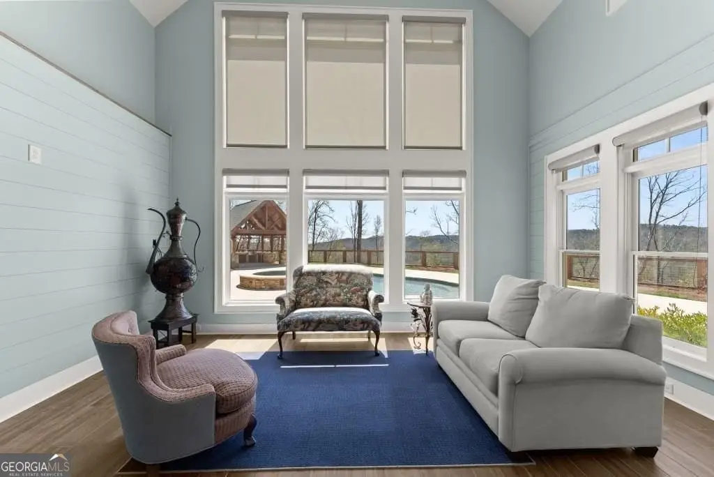 Nestled amidst the serene splendor of Tiger Mountain, this breathtaking 9-acre homestead seamlessly blends natural beauty with refined luxury. Located just 90 minutes from the heart of Atlanta and 12 minutes from the shores of Lake Burton and the charming town of Clayton, this property offers the perfect balance of accessibility and tranquil retreat. Perched high up the mountain the homestead boasts uninterrupted, panoramic views of pristine wilderness, facing expansive land managed by the US Forest Service-ensuring a timeless sanctuary with little chance of future development. Surrounded by towering hardwoods and the gentle whispers of nature this estate invites you to unwind and reconnect. The sprawling acreage provides endless possibilities whether you envision private hiking trials, a thriving garden, or simply a haven of peace and privacy. At the heart of this retreat lies an outdoor oasis designed for unforgettable gatherings: a heated pool with attached jacuzzi and cascading waterfall, a fully equipped outdoor kitchen, and a cozy fire pit area. All are crafted to elevate entertaining to a luxurious art form. Imagine hosting family and friends under the open sky, with ample space to invite then all- these amenities promise cherished memories filled with laughter, warmth and relaxation. The multilevel, Craftsman style, main house and accompanying pool house offer 8 spacious bedrooms, 8 full and 3 half bathrooms ensuring comfort and privacy for every guest. Enter the beautiful alder wood front door to discover rich hardwood floors that flow throughout. Ten-foot ceilings and eight-foot doors create an airy, expansive ambiance in every room. Adding to the allure are two stone fireplaces for those cool evenings. The owner's suite elevates luxury further with a spa-inspired bathroom featuring marble tile and a beautiful soaking tub room with a view overlooking the mountains. Convenience meets indulgence with two full kitchens, two additional kitchenettes, four laundry areas and a rejuvenating indoor sauna. Every detail has been thoughtfully designed to make life effortlessly enjoyable whether you're preparing a feast, unwinding after a day of mountain or nearby lake adventures or simply soaking in the serenity. From the crisp mountain air to the star-filled skies, this Tiger Mountain gem promises a lifestyle defined by natural wonder, boundless possibilities and the ultimate in sophisticated comfort. Imagine the memories waiting to be made in a place where luxury and nature unite in perfect harmony.
