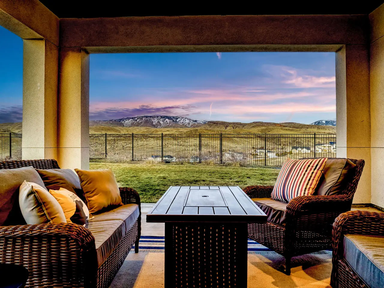 Perched on a premier lot in Cartwright Ranch, this stunning home offers breathtaking views of the Boise Foothills with no rear neighbors. Impeccable craftsmanship and quality construction throughout. The spacious great room showcases a double-sided fireplace with an oversized covered back patio – perfect for entertaining and enjoying vibrant sunscapes! The gourmet kitchen is a chef’s dream, with granite counters, a tile backsplash, large island, 5-burner Wolf range, instant hot water, and both a walk-in and butler’s pantry. The private main level primary suite boasts a spa-like bath with a jetted soaker tub and an expansive closet. The main level also includes a home office and a versatile room for a 2nd office/playroom/guest space. Upstairs offers a bonus room, 3 bedrooms, and 2 baths. Additional features include an oversized 4-car garage with epoxy floors, ample storage, ethernet wired to every room, dual-zoned HVAC and a recirculating hot water system. Close to foothill trails, community pool, parks, walking/biking paths!