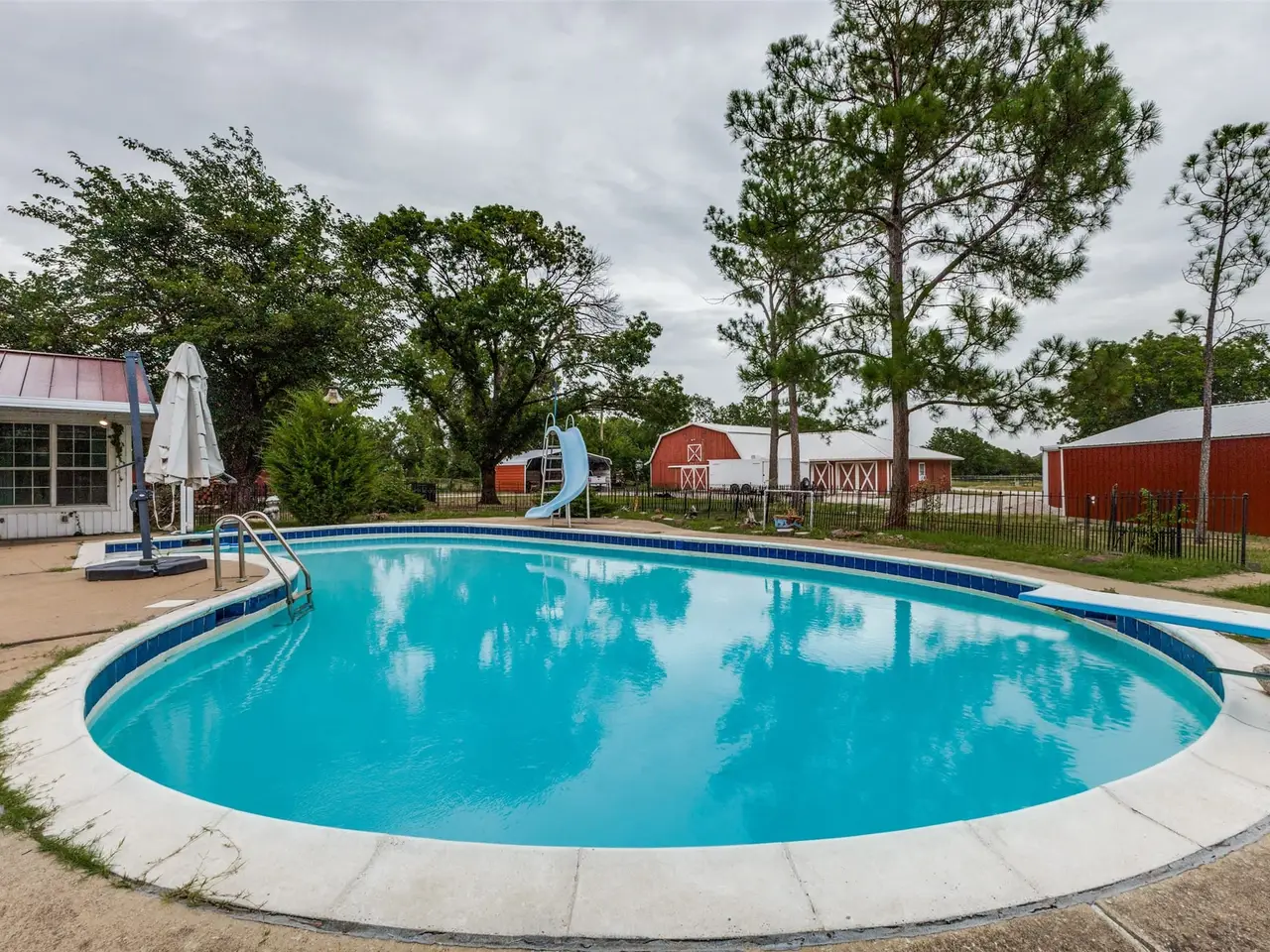 Equestrian property in desirable location - perfect for professional trainer or amateur enthusiast! Property highlights include: Main barn with six 12x12 stalls, Pyrhana automatic fly spray system, wired for 220V, tack room, feed room, large laundry room with full size washer & dryer connections and additional storage space, wash bay with heat lamps, full bathroom, hay loft, garage parking for four vehicles with space for golf cart or ATV, staff living quarters with two bedrooms, full bathroom, and kitchenette. Shavings storage located close to main barn. Second barn has six 12x12 stalls, Pyrhana automatic fly spray system. Five additional run in stalls located close to second barn. Lighted indoor arena with kick wall has sliding doors on one long side and roll up door on opposite long side. Lighted outdoor arena with improved footing and perimeter railing. Six individual paddocks fenced with two rail wood fencing. Storage shed for equipment. Pond located at the back of the property. Four bedroom three and a half bath home located at front of property with gated entrance and circle drive needs work. In ground pool with slide, large open flagstone patio off of sunroom located at back of home, separately fenced backyard for pets, attached two car garage. Close proximity to shopping and dining at Firewheel Town Center and easy access to SH 78 and PGBT.