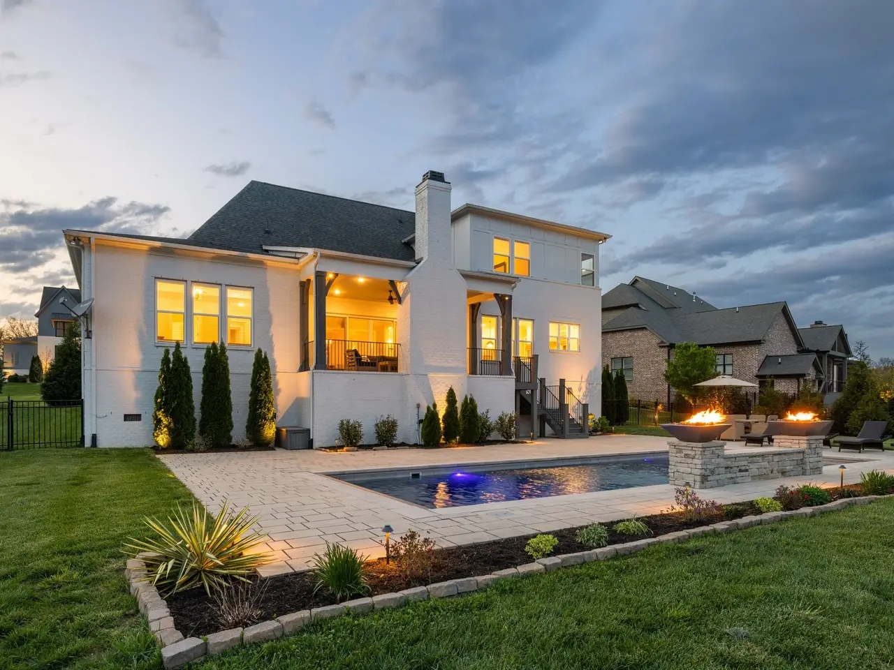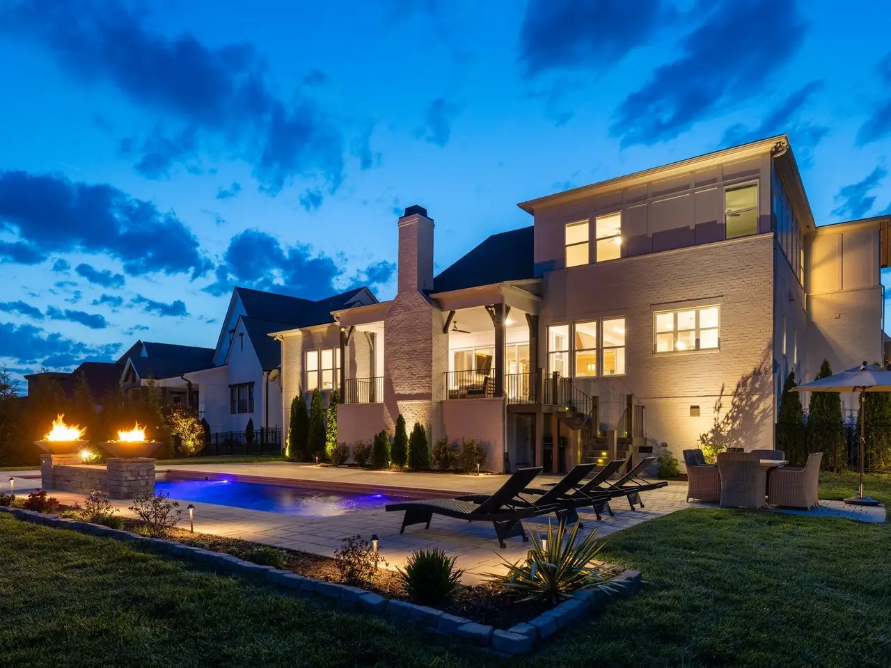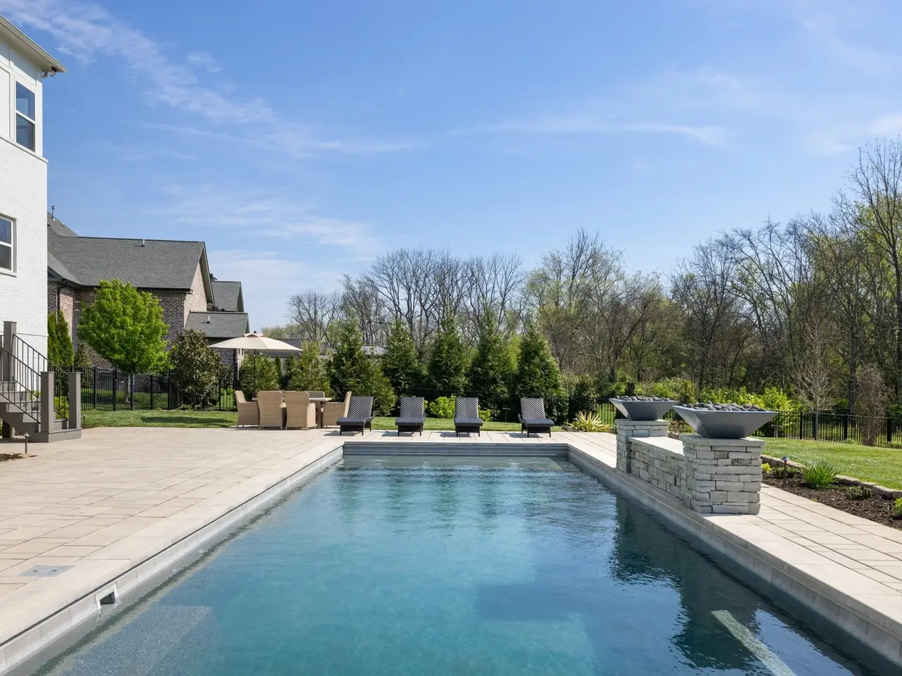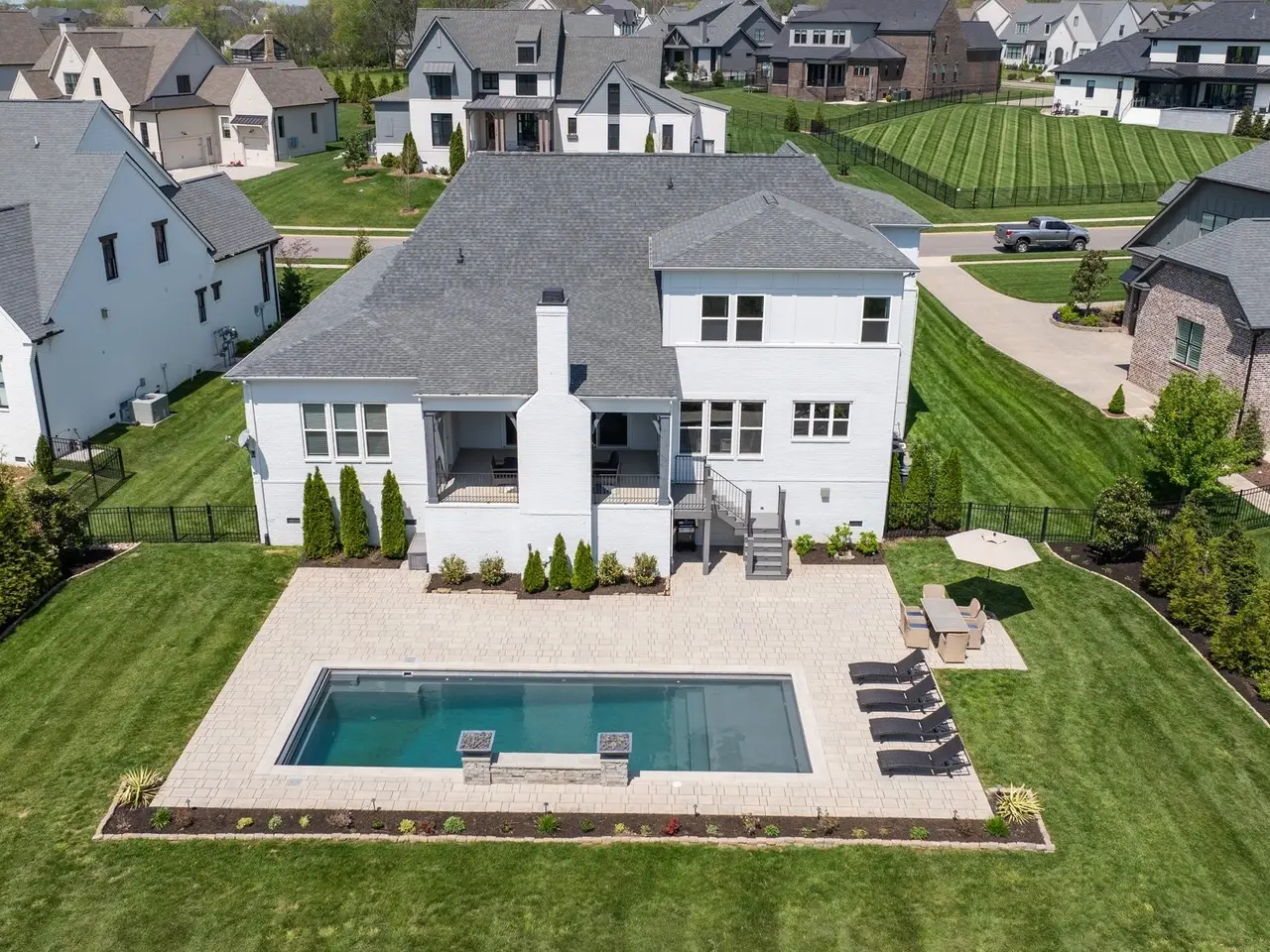 This stunning residence blends luxury, functionality, and thoughtful design across every inch. Located in a desirable community, the home boasts incredible attention to detail--from custom ceiling treatments and exposed wood beams to expansive living spaces and resort-style outdoor amenities.The main level features both a primary suite and guest suite, along with a private study adorned with a coffered ceiling and French doors. Gorgeous hardwood floors run throughout the main living areas, while the formal dining room shines with natural light and elegant wainscoting.The chef's kitchen is a true centerpiece, offering a large center island with seating, ceiling-height cabinetry, top-of-the-line stainless steel appliances, and ample prep space. Just off the kitchen, a wet bar with beverage center provides the perfect setup for entertaining.The living room features a vaulted ceiling with exposed wood beams, custom built-in bookcases, and a gas fireplace, with glass sliding doors opening to a covered rear porch--complete with a fireplace and views of the in-ground pool and lush green space.The primary suite is a luxurious retreat, showcasing a tray ceiling with shiplap accents, private porch access, dual vanities, a freestanding soaking tub, and a floor-to-ceiling walk-in shower with rainhead and bench seating.Upstairs offers incredible flexibility with a spacious bonus room and a media room pre-wired for surround sound, ideal for movie nights or casual entertaining.The outdoor living space is unmatched, featuring a sparkling pool with sun shelf, fire features, and a generous patio area for lounging. The fenced-in backyard adds privacy, and the 3-car garage with stately courtyard entry completes the package.With its mix of elegance, comfort, and entertainment-ready spaces, this home is truly one-of-a-kind.