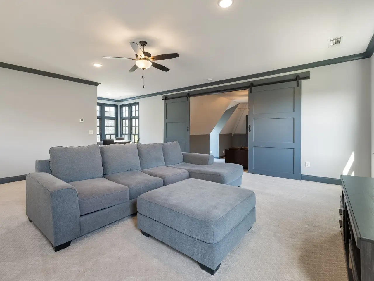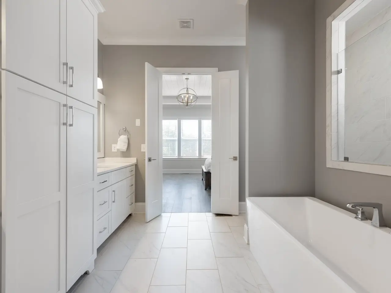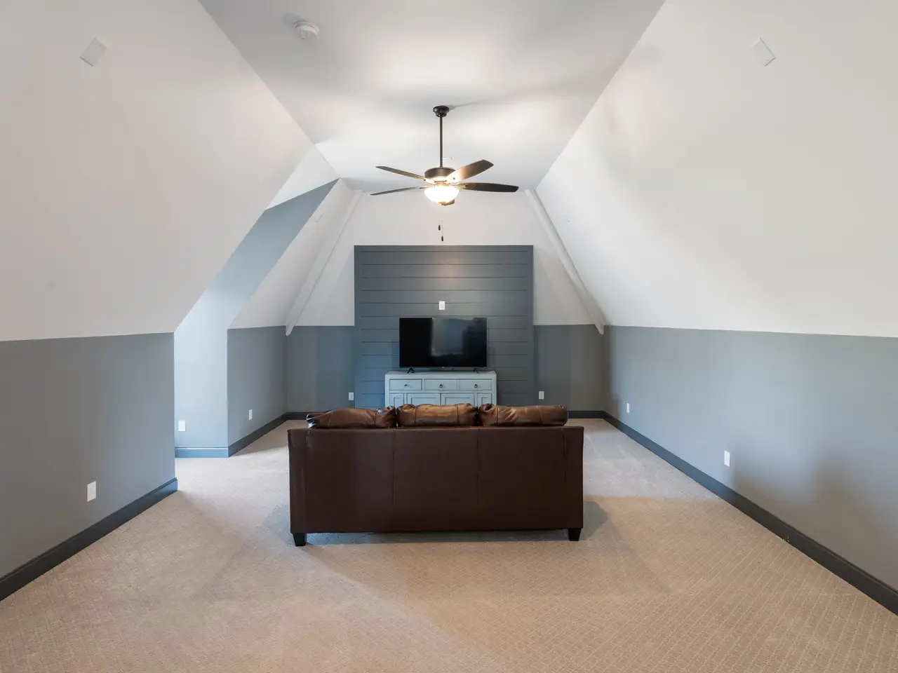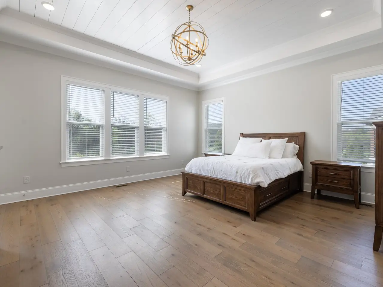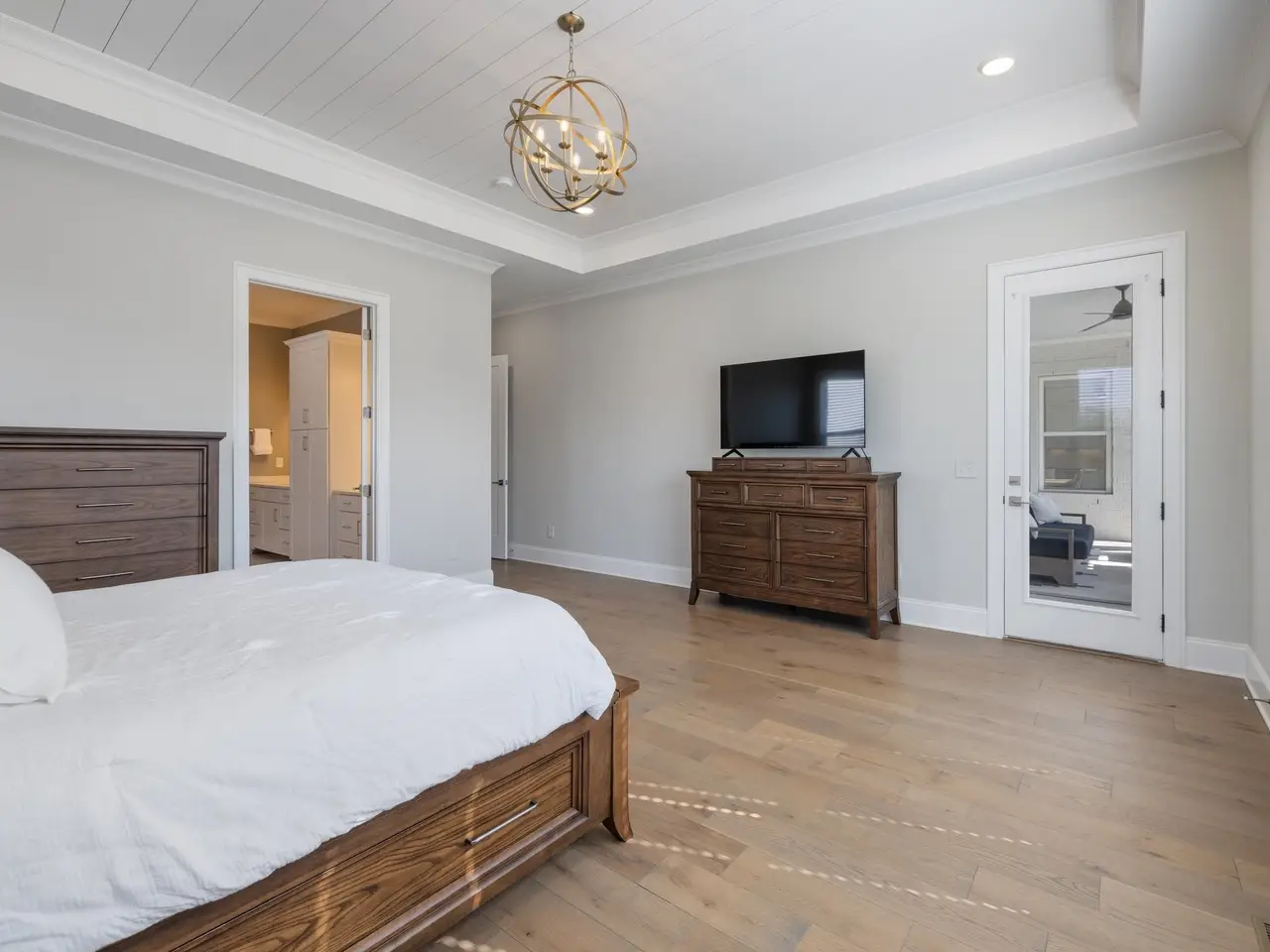This stunning residence blends luxury, functionality, and thoughtful design across every inch. Located in a desirable community, the home boasts incredible attention to detail--from custom ceiling treatments and exposed wood beams to expansive living spaces and resort-style outdoor amenities.The main level features both a primary suite and guest suite, along with a private study adorned with a coffered ceiling and French doors. Gorgeous hardwood floors run throughout the main living areas, while the formal dining room shines with natural light and elegant wainscoting.The chef's kitchen is a true centerpiece, offering a large center island with seating, ceiling-height cabinetry, top-of-the-line stainless steel appliances, and ample prep space. Just off the kitchen, a wet bar with beverage center provides the perfect setup for entertaining.The living room features a vaulted ceiling with exposed wood beams, custom built-in bookcases, and a gas fireplace, with glass sliding doors opening to a covered rear porch--complete with a fireplace and views of the in-ground pool and lush green space.The primary suite is a luxurious retreat, showcasing a tray ceiling with shiplap accents, private porch access, dual vanities, a freestanding soaking tub, and a floor-to-ceiling walk-in shower with rainhead and bench seating.Upstairs offers incredible flexibility with a spacious bonus room and a media room pre-wired for surround sound, ideal for movie nights or casual entertaining.The outdoor living space is unmatched, featuring a sparkling pool with sun shelf, fire features, and a generous patio area for lounging. The fenced-in backyard adds privacy, and the 3-car garage with stately courtyard entry completes the package.With its mix of elegance, comfort, and entertainment-ready spaces, this home is truly one-of-a-kind.