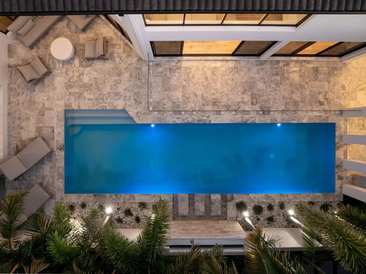 • Heated 12m pool with travertine surrounds