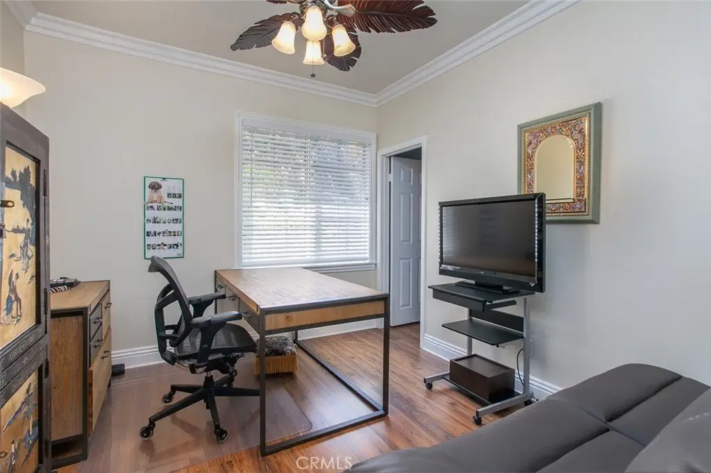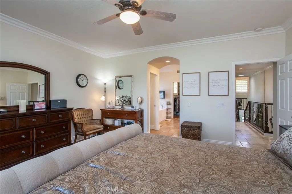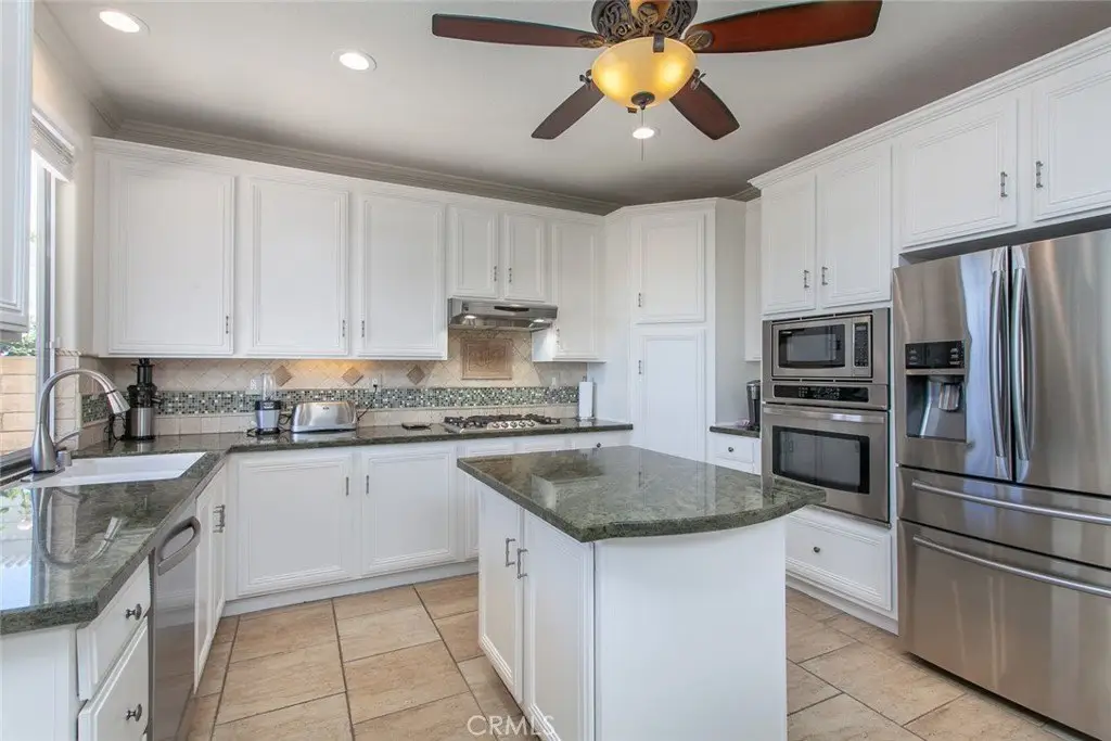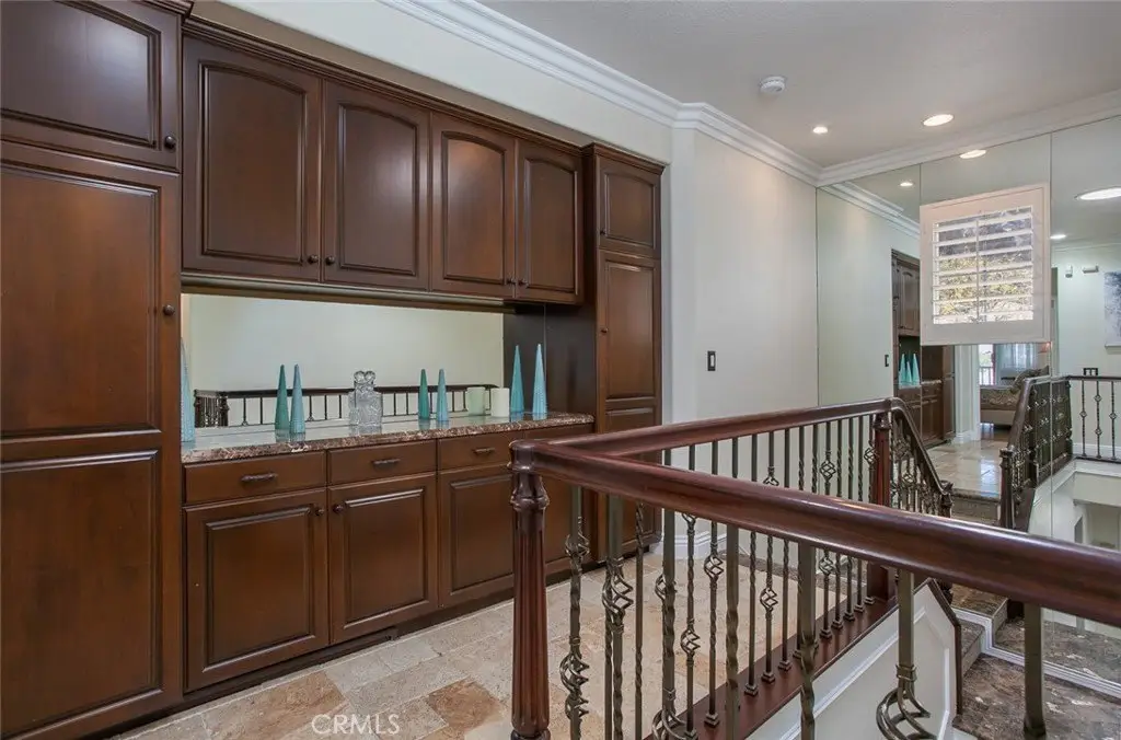 Welcome home a beautifully maintained 4-bedroom, 3-bathroom + office home tucked away on a quiet cul-de-sac in the heart of Stevenson Ranch. Enjoy privacy and panoramic views of the Santa Clarita Valley with no rear neighbors and stunning scenery from the upstairs bedrooms, kitchen, and backyard. From the charming stacked stone exterior and peaceful fountain entry to the spacious front porch, every detail of this home invites you in. Inside, you’ll find custom tile flooring, elegant wrought-iron finishes, and built-ins surrounding the cozy living room fireplace. The bright, open kitchen is perfect for entertaining with abundant cabinetry featuring pull-out racks, generous counter space, and updated stainless-steel appliances including a built-in range. The downstairs office offers beautiful custom wood cabinetry — an ideal work-from-home setup. Upstairs, the primary suite opens to an expansive private balcony with sweeping views and a spa-inspired bathroom featuring dual sinks, soaking tub, and walk-in shower. Additional highlights include a tankless water heater, dedicated laundry room, and leased Tesla solar system for energy efficiency. Step outside to your private backyard oasis, complete with a built-in spa with cascading waterfalls, outdoor fireplace, BBQ island, and low-maintenance landscaping — perfect for relaxing or entertaining under the stars.