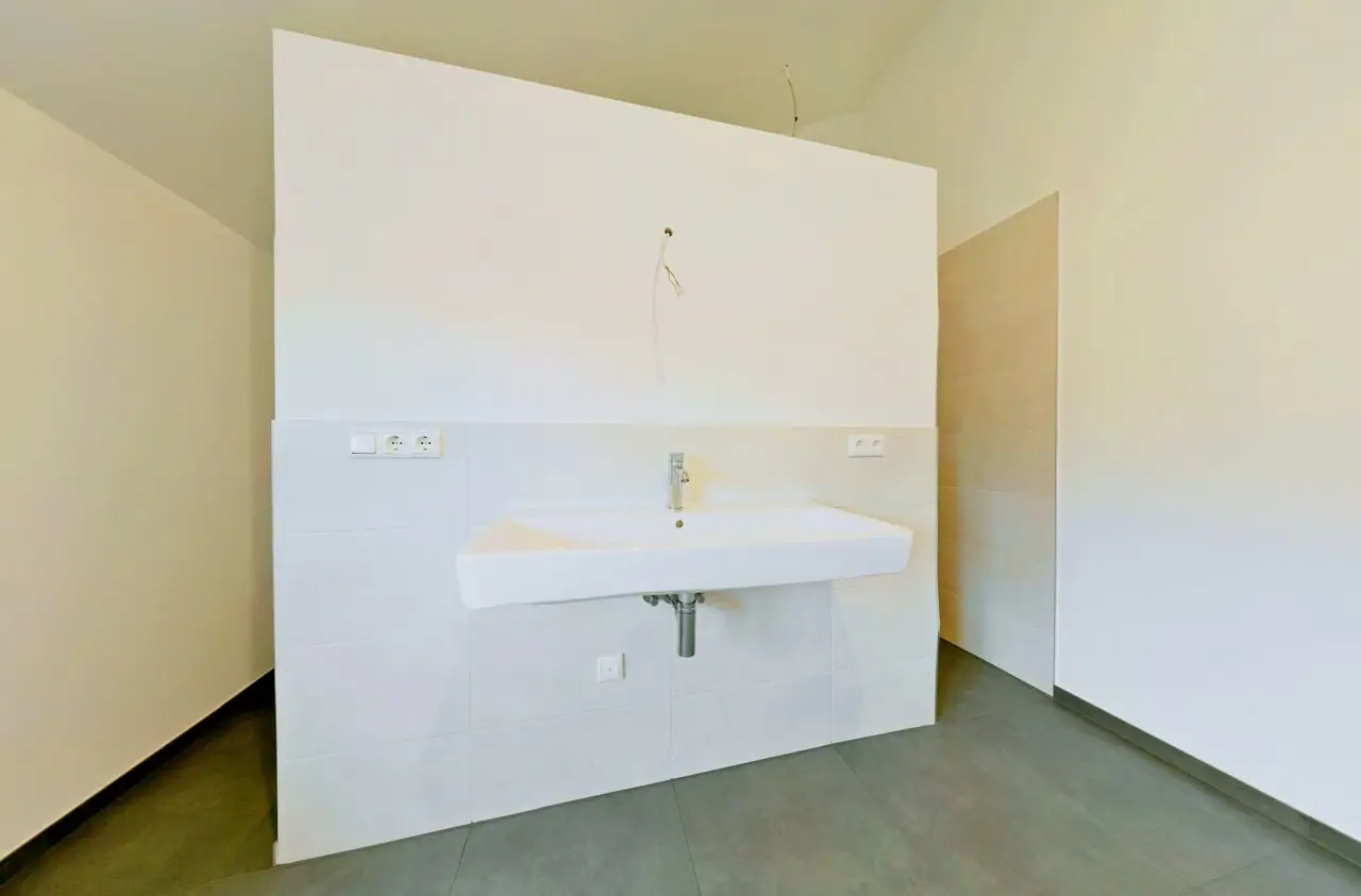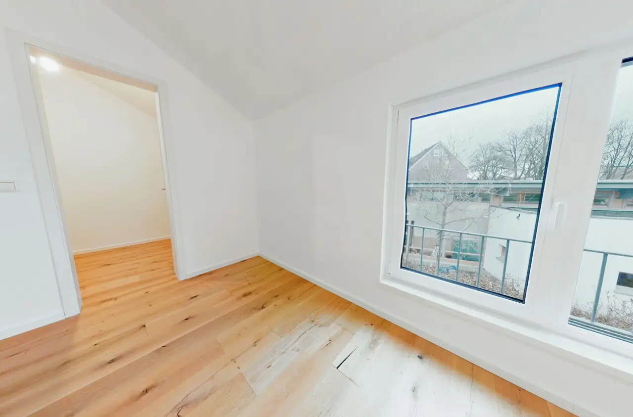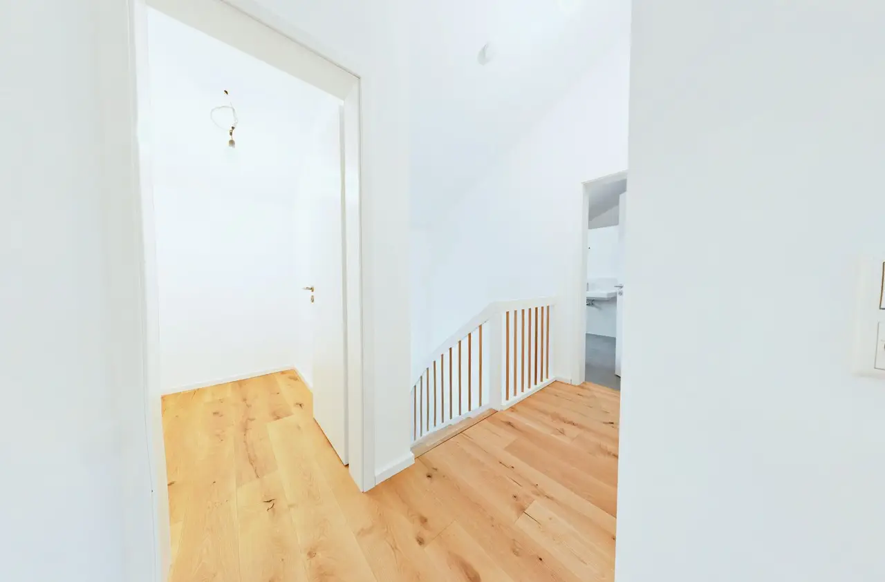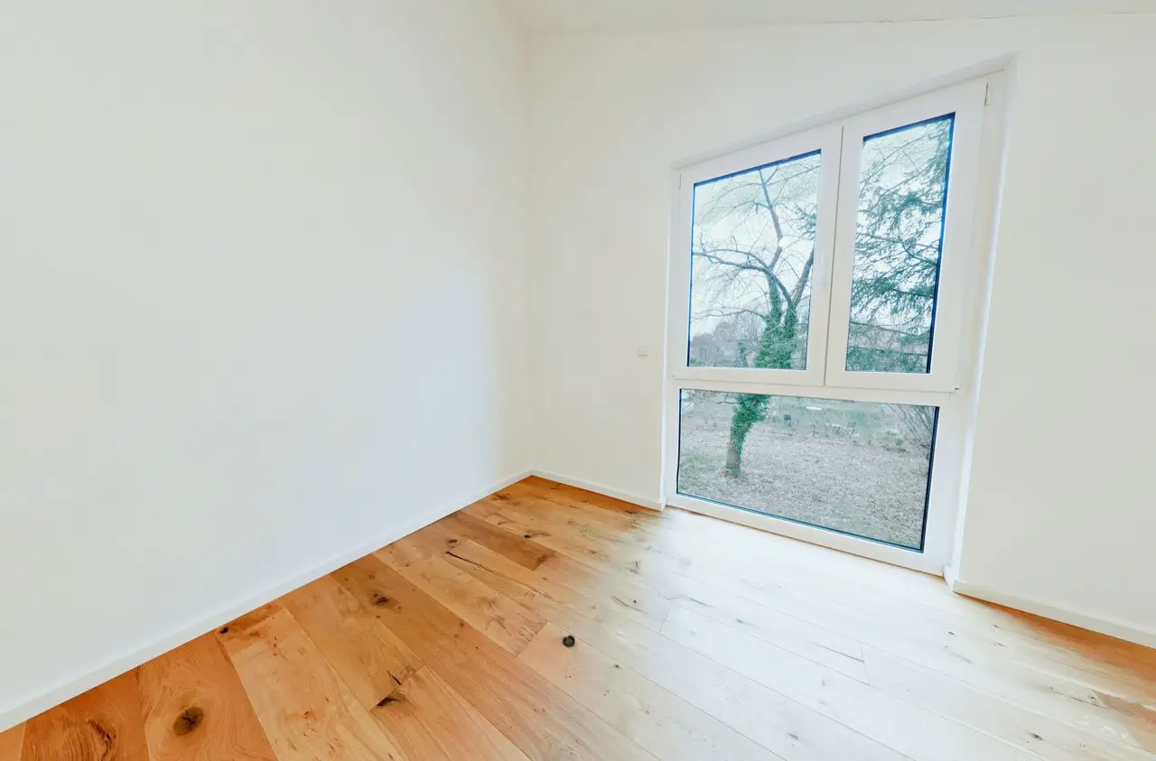 This architecturally appealing semi-detached house built in 2024 offers you modern comfort, energy-efficient construction and high-quality fixtures and fittings on a living space of approx. 157 m². The first-time occupancy of this new-build property promises you a high standard of living quality. The property is being built in a healthy timber frame construction and boasts a highly thermally insulated building envelope (energy efficiency house A+), which contributes to a balanced indoor climate and sustainably reduces energy costs. Natural building materials such as external insulation made from sheep's wool and wood wool meet the highest standards - even for allergy sufferers. With a total of four well-designed rooms, including three comfortable bedrooms and a well-equipped bathroom, the property meets numerous requirements for contemporary living. The spacious plot with an area of around 606 m² opens up a wide range of possibilities for individual garden design and impresses with a west-facing terrace area. Heating is provided by a modern air-to-water heat pump from the renowned Nibe brand, coupled with underfloor heating in all rooms - so you can enjoy comfortable heat distribution all year round. Windows with triple glazing and electrically operated privacy and light protection systems not only contribute to energy efficiency, but also to the pleasant atmosphere. Another highlight is the photovoltaic system with 20 modules and a total output of 7.8 kWp including inverter (8 kW) and bidirectional meter in the technical room. This not only protects the environment, but also reduces ancillary costs in the long term. The central ventilation system with an impressive 90% heat recovery rate also ensures a pleasant indoor climate, providing a constant supply of fresh air. The heart of the house is the open, light-flooded living and dining area with direct access to the terrace. The open-plan design allows the seamless integration of your individual kitchen planning and offers generous space for cooking, eating and relaxing together. The west-facing terrace extends the living area into the countryside and invites you to spend convivial hours in your own garden. The outdoor parking space on the property is already equipped with a cable connection for a wallbox - ideal for owners of an electric vehicle or those who want to become one. The fixtures and fittings are sophisticated and well thought-out throughout. Here you can live energy-efficiently, comfortably and in attractive surroundings. The combination of modern technology, sustainable construction and high-quality fittings makes this offer particularly attractive. See for yourself during a personal viewing and discover the advantages of this exceptional property. We look forward to your inquiry!