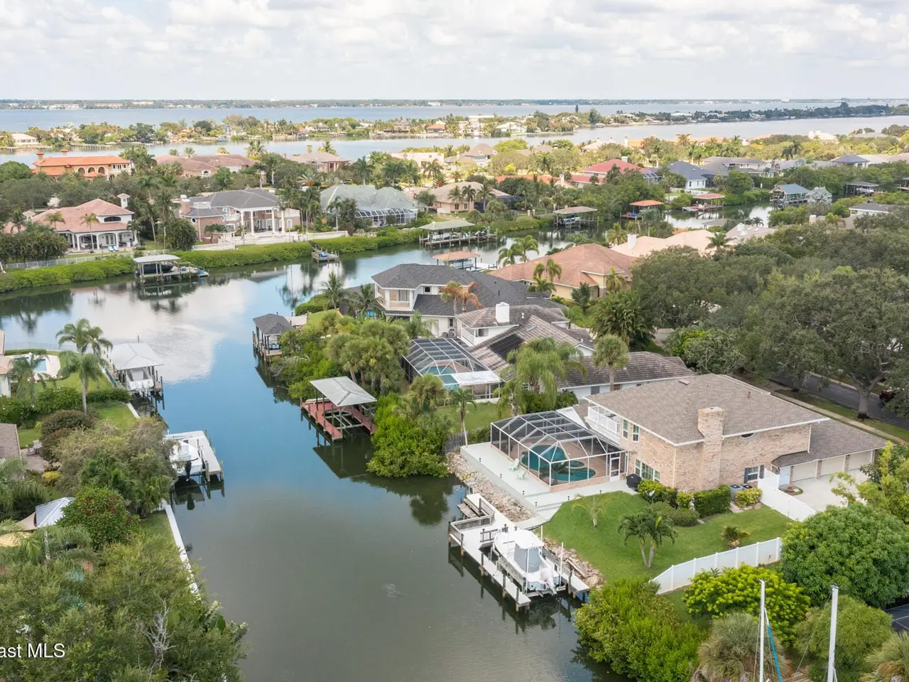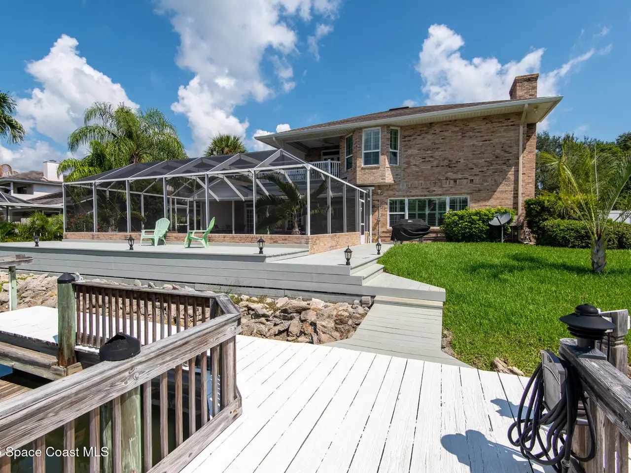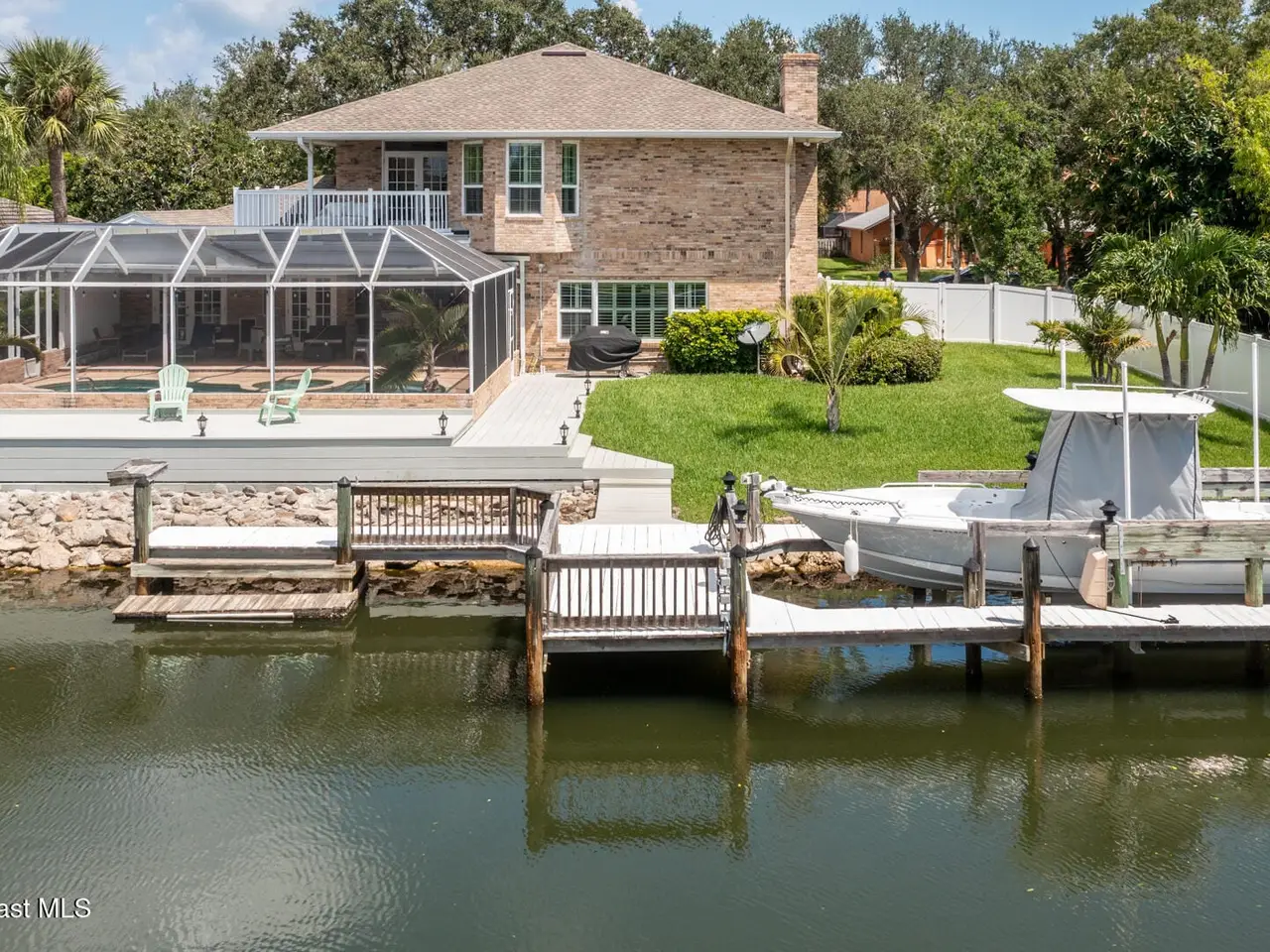 Exquisite canal-front residence in the amazing Windward Cove subdivision in the Kiwi Racquet and Fitness Club neighborhood offers luxury living with four bedrooms, three bathrooms, and an impressive 3,643 square feet of meticulously crafted interiors. A boater's dream, the property boasts 97 feet of pristine water frontage, a private dock with a boat lift, brand new deck and direct access to navigable Banana River. The screened-in pool and spa outdoor provides splendid entertainment. Living room with gas fireplace overlooking the amazing spacious kitchen with island, granite counter tops and fully remodeled cabinets. All three bathrooms tastefully remodeled. Hurricane impact windows provides the perfect comfort in Florida living. New roof in 2021 and the whole house with high end luxury lifetime vinyl plank floor. This rare waterfront sanctuary seamlessly combines elegance, exclusivity, and the ultimate coastal lifestyle.