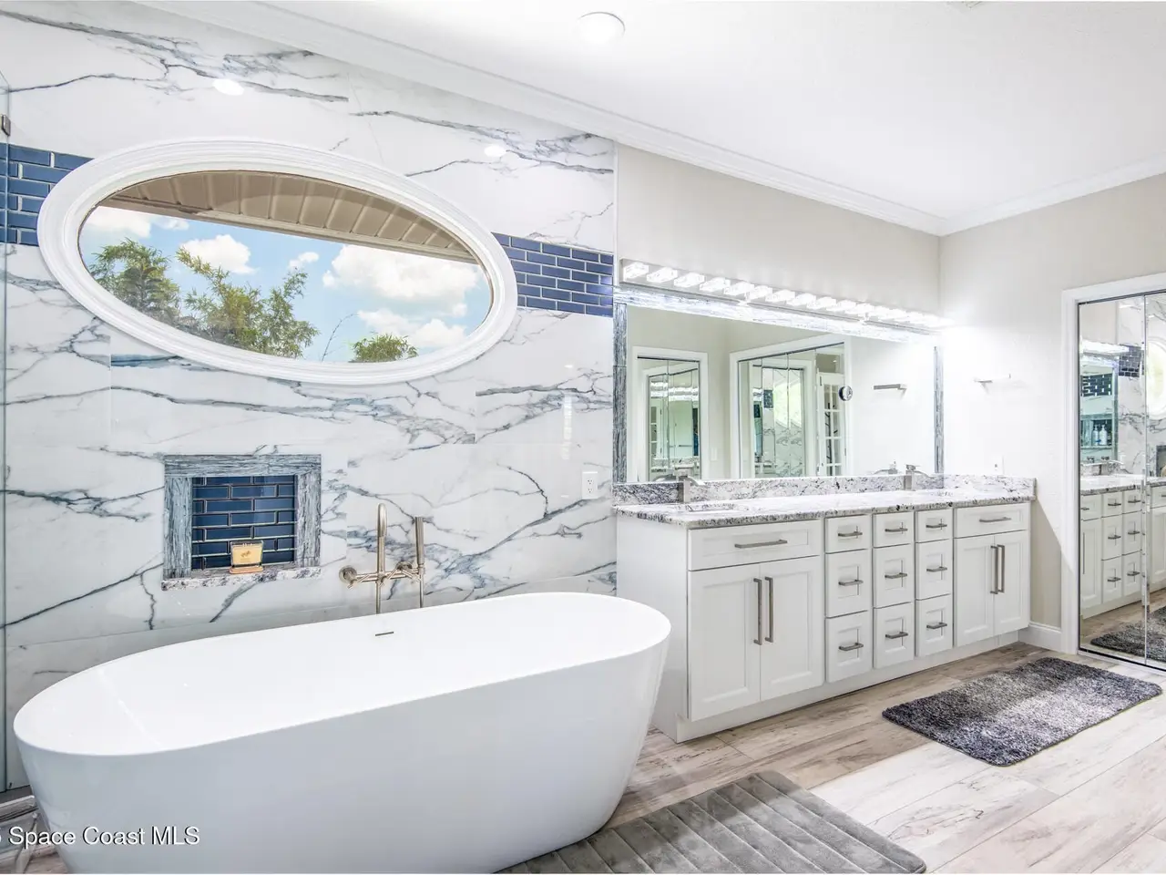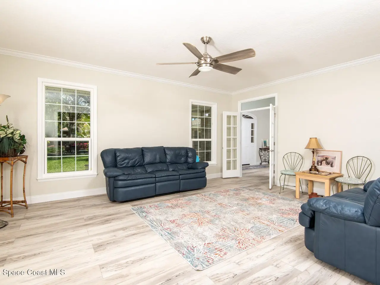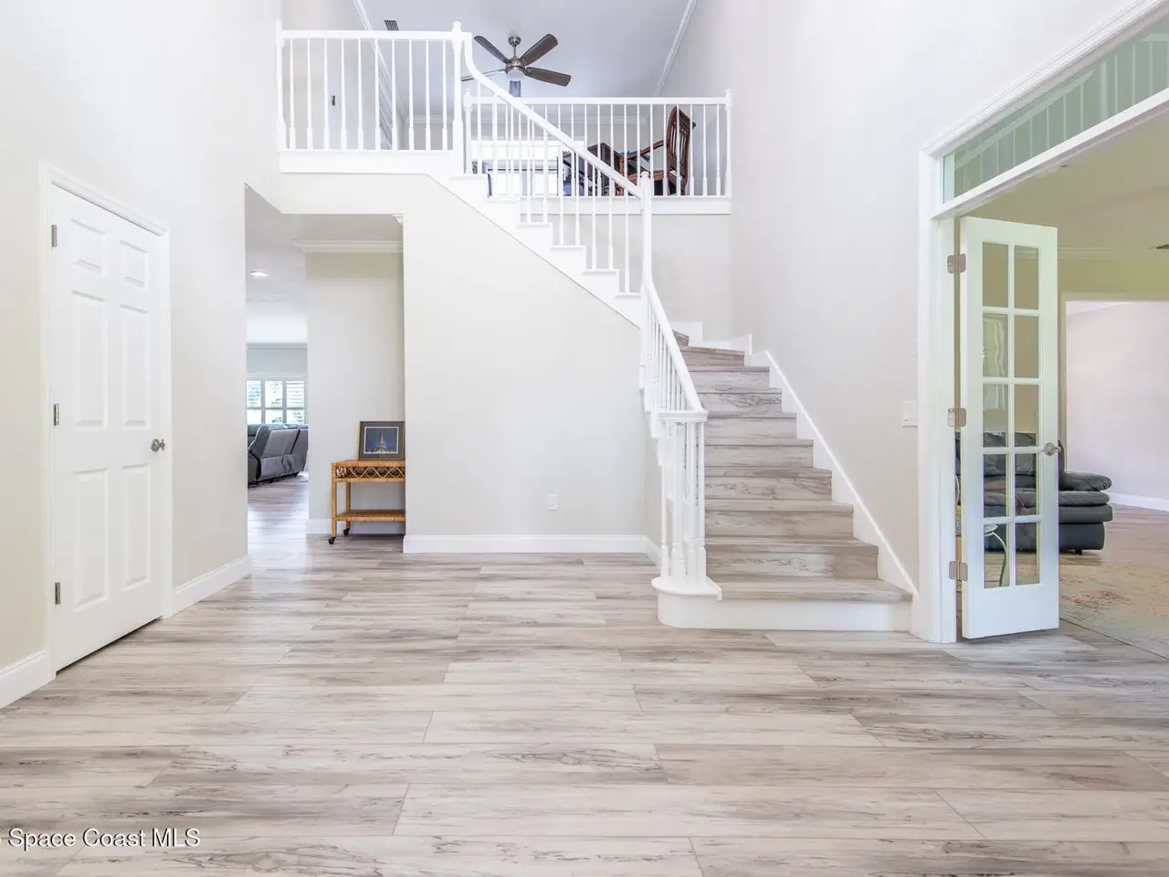 Exquisite canal-front residence in the amazing Windward Cove subdivision in the Kiwi Racquet and Fitness Club neighborhood offers luxury living with four bedrooms, three bathrooms, and an impressive 3,643 square feet of meticulously crafted interiors. A boater's dream, the property boasts 97 feet of pristine water frontage, a private dock with a boat lift, brand new deck and direct access to navigable Banana River. The screened-in pool and spa outdoor provides splendid entertainment. Living room with gas fireplace overlooking the amazing spacious kitchen with island, granite counter tops and fully remodeled cabinets. All three bathrooms tastefully remodeled. Hurricane impact windows provides the perfect comfort in Florida living. New roof in 2021 and the whole house with high end luxury lifetime vinyl plank floor. This rare waterfront sanctuary seamlessly combines elegance, exclusivity, and the ultimate coastal lifestyle.