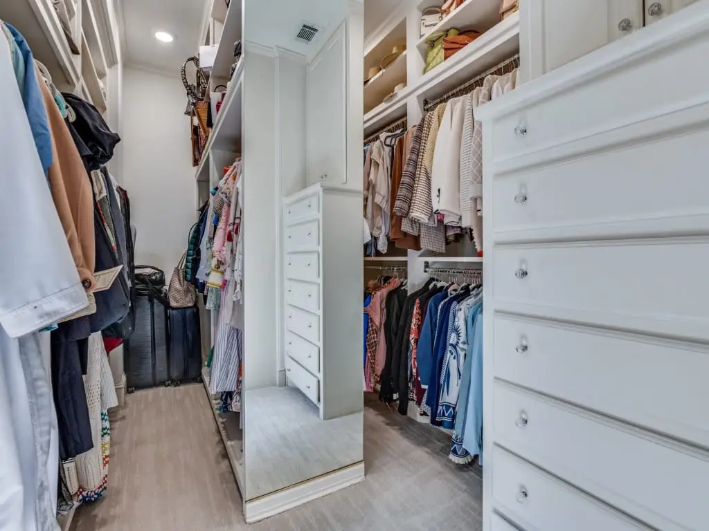 This beautifully updated home blends charm and sophistication with a bright, open feel throughout. The main level offers a guest bedroom and a private office, a gourmet kitchen with ample storage, and inviting living areas highlighted by tall ceilings, rich hardwood floors, and elegant European-inspired lighting. A dramatic staircase with a striking stained-glass window sets the tone for the homes character. Upstairs, youll find the second bedroom along with the expansive primary suite, complete with custom built-ins, a spa-inspired marble bath, a sunroom retreat, and an impressive walk-in closet. Other highlights include a cedar closet, recent updates to the roof, windows, HVAC, and French doors (20182022), and a heated & cooled oversized two-car garage currently used as storage with one bay for parking, plus a circular drive with space for three cars. Light, bright, and thoughtfully designed, this home offers a warm and welcoming atmosphere in a prime locationwalking distance to McCullough Middle School and within the acclaimed Highland Park ISD.