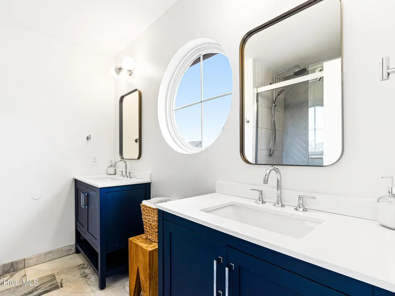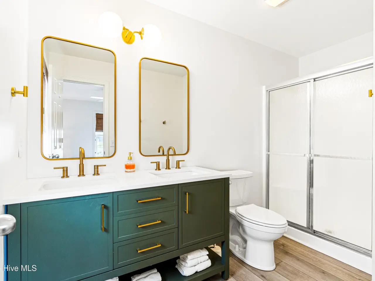 Professional interior design with modern decor Newly installed vanities, mirrors, and premium shower hardware