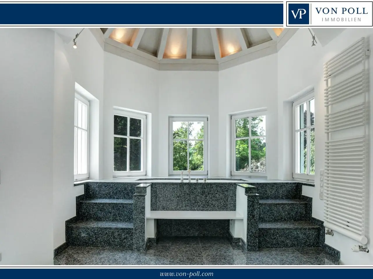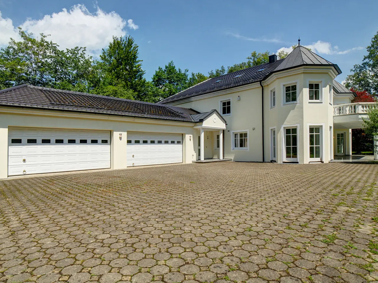 It's well known that farmers often build their homes in special locations. A well-known property developer recognized this spot as a gem and replaced it with an exclusive villa in 2000. Outsiders rarely find the property, as its beauty is hidden from view. Its grandeur and uniqueness are revealed only to visitors, and only when the entrance gates open. You drive down a long driveway through the park-like property, whose trees resemble a small castle. Only then does the size of 8,275 m² become tangible and visible. Upon arriving at the house, the unique architectural style is striking. The two towers alone, positioned to the right and left, give the villa something extraordinary and special. The property developer couple built for themselves and spared no expense, so they focused on the exceptional right from the drawing up of the plans, coupled with their experience. The architect commissioned, Tom Ferster, shaped our region and was known for his individual ideas and exclusive buildings. Always something special. Initially, much was planned and much was discarded, so that in the end, in 2000, the result was this park villa. Directly on the hill with a mountain view. A DREAM!!! A place to linger and fall in love. The entrance area was lovingly designed, welcoming your guests into a majestic entrance hall. The enormous chandelier underscores this sublime grandeur and creates a wow factor. You walk through the hall and have several routes into the living area, allowing you to decide which area you show your guests. A hallway leads to the kitchen. The kitchen has a modern and open design. The counter invites you to watch the cooking or make yourself comfortable in the dining area. Despite the modern design, the builder did not forego the pantry, something you have once had and cannot give up again. The bright living room with countless window fronts and a glass extension invites you to relax in front of the fireplace in winter. In spring, summer, and autumn, you can enjoy your park from there and delight in the animal visitors. In the morning, one or two deer often linger in your garden, enjoying the peace and space. If we stay on the ground floor, you can use the wellness area. After a visit to the sauna and/or the Kneipp pool, and after cooling off with a shower, head outside. Or you can stay indoors and relax, as you have a view of everything through the many windows in the garden. It would also be conceivable to use this area as a bedroom if a barrier-free solution is required. You'll find something special in every room and in every corner. This villa impresses with its furnishings and tasteful design, without being intrusive. It goes without saying that it has underfloor heating, a bus system, and an integrated vacuum cleaner. Even a laundry chute leading to the utility room in the basement has been thought of. The spacious garage for four cars can be accessed directly from the house. If we take the stairs to the upper floor, further luxury awaits us. The dressing room leaves nothing to be desired. The master bedroom, with its huge balcony integrated into the bay window, sets the mood for lovely evenings on the balcony terrace. You can step out onto the gallery at any time and from there gaze into the living room. In the master bathroom, a staircase leads to the bathtub. From there, you have a clear view of your park, completely hidden from prying eyes. Although the attic has been converted, this space has been little used so far and, due to its generous dimensions, was affectionately referred to by the previous owner as the "tennis court." If you would like to add a shower and bath to this room, the connections are available, and an additional children's or guest area can be created. The basement is just as bright as the rest of the house. The office, measuring approximately 60 m², is ideal for home office work. But your beloved Carrera track also has just as much space as a study, a wine cellar, or a bedroom.