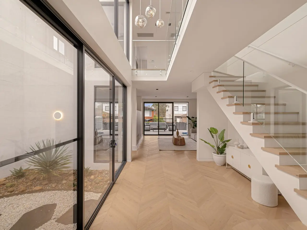 A statement of undeniable luxury, this remarkable home sets a new standard of sophistication and functionality. Meticulously crafted with top-tier finishes, it offers an impressive fusion of elegance and practicality that surpasses all expectations of family living. Its sleek interiors are awash with natural light and promote boundless space for entertaining, living and socializing on a grand or intimate scale. Set within 750 meters of Majors Bay dining and boutiques, the property is also mere footsteps from Concord Park. - Brand new luxury residence on a large 627square meters land parcel in convenient locale - Free-flowing design unveils a bright lounge/dining area with in-built cabinetry - Seamless indoor/outdoor flow to a covered alfresco terrace with a built-in barbecue - Elevated entertainer's deck includes a sparkling in-ground concrete pool - Unique secluded and private landscaped central garden/open atrium - Stone kitchen features stainless steel Miele gas appliances and walk-in pantry - Five generous bedrooms each with built-ins, two of the bedrooms are masters - Three bedrooms include ensuite bathrooms, bed one enjoys a private balcony - Custom-appointed main bathroom with floor-to-ceiling tiles and a rain shower - Upstairs study, bar area, ducted air-conditioning, down/sky lighting throughout - Double automatic garage with internal access, linen and under-stairs storage - Short walk to public transport, set within 1.6km from schools and Bayview Park