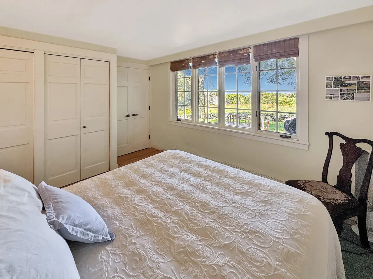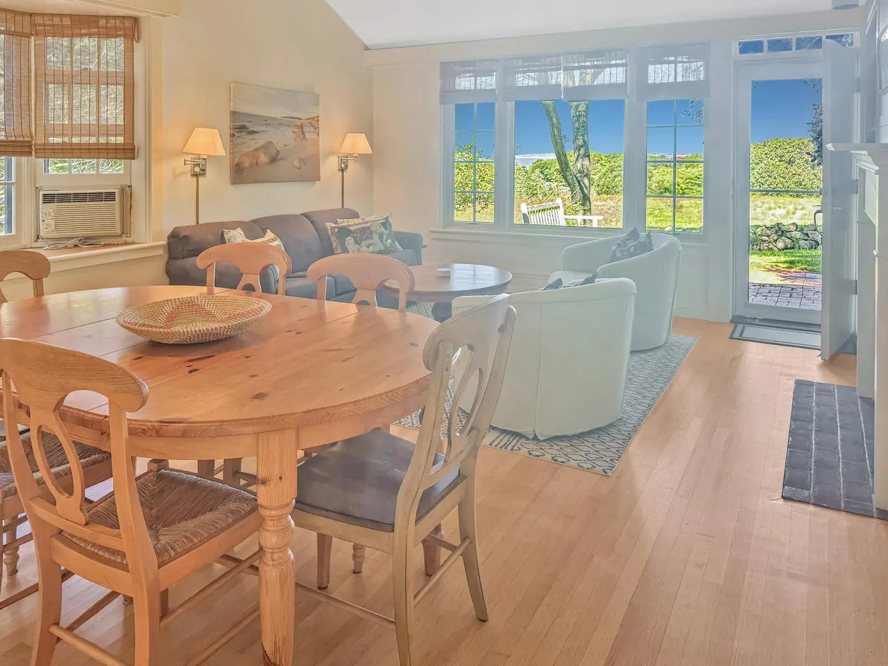 Charming cottage with spectacular water views across stone walls and rolling meadows to Vineyard Sound and the Elizabeth Islands. Set on 1.2 acres, this custom-built home was thoughtfully designed to embrace its serene surroundings, with wood and tile floors, a recent roof (2023), and an open-plan kitchen, dining, and living area framing commanding views of the water. Perched at the edge of the Cedar Tree Neck Sanctuary, miles of walking trails wind through cedar groves and down to the Sound, offering endless opportunities to explore nature. The home features a primary bedroom with waterviews, a den furnished as a bedroom, a 3 bedroom septic system, and an open floor plan with ample space to gather, plus an outdoor shower for rinsing off after beach days. A brick patio provides the perfect setting for morning coffee or al fresco dining. Two storage sheds add practicality for Vineyard living, while ownership includes access to West Tisbury's town beach, the coveted Lambert's Cove Beach for daily swims and unforgettable sunsets. A rare offering that combines natural beauty, privacy, and timeless Vineyard character.