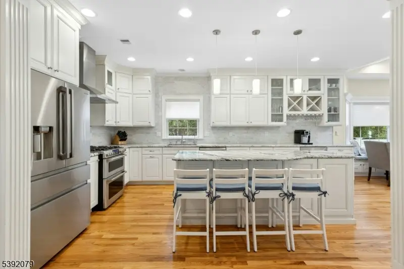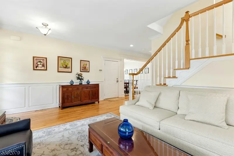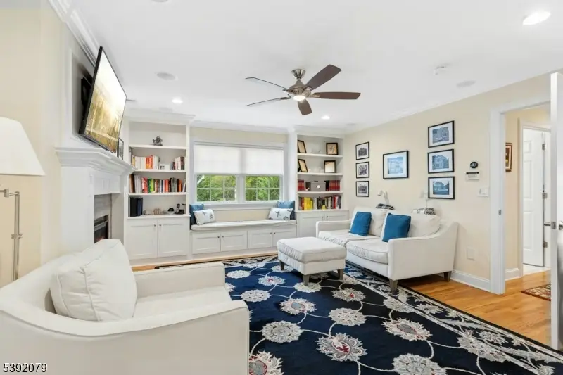 Located on one of Westfield's most desirable streets, this 5 Bedroom, 4.5 Bath Colonial offers nearly 6,000 sq. ft. of luxury living space on a .25acre lot that backs to the bird preserve, just blocks to schools, downtown, and the train station. Exceptional craftsmanship throughout with elegant millwork, hardwood floors, designer lighting, and thoughtful storage. The grand foyer opens to a sunlit living room, formal dining room, and a spacious family room with gas fireplace. The chef's kitchen boasts high-end appliances, a large island, custom white cabinetry, walk-in pantry, and breakfast area. A first-floor in-law suite includes a marble bath, walk-in closet, and laundry. Upstairs, the primary suite is a private retreat with sitting room, double-sided fireplace, spa-like bath, balcony with French doors, and walk-in closet. Three additional bedrooms, a full bath, and laundry complete this level. The finished basement features a rec room, full bath, gym, office, and storage. Outside, enjoy a Trex deck, paver patio with fireplace, and expansive vinyl fenced yard perfect for entertaining. Additional highlights include surround sound systems, central vacuum, sprinkler system, alarm system, Hardie siding, and multi-zone HVAC. Walk-up attic can easily be turned into livable space. A truly stunning home in the perfect Westfield location!