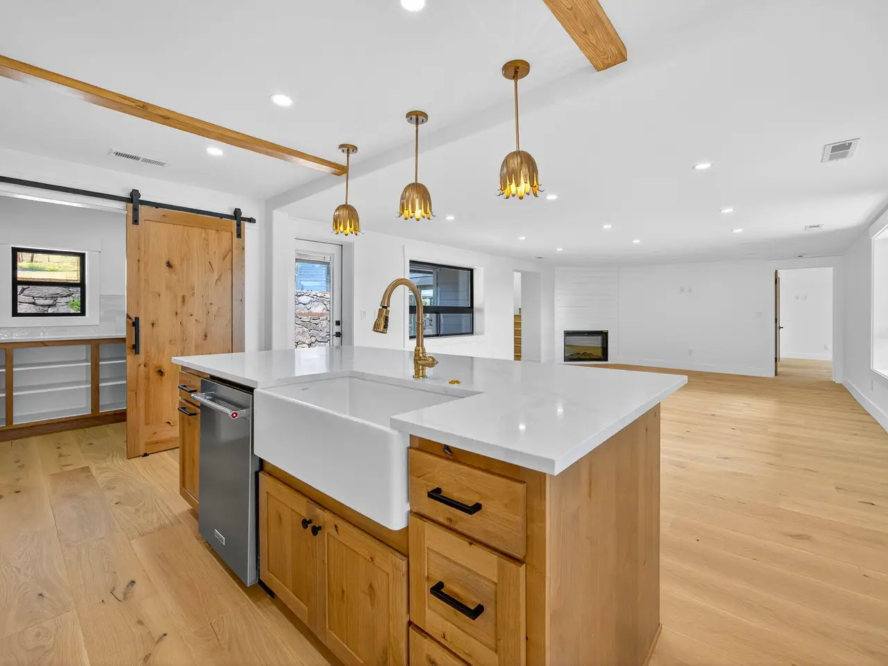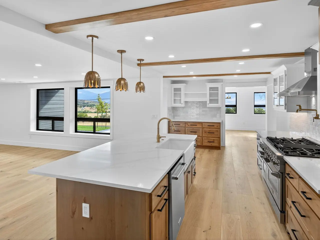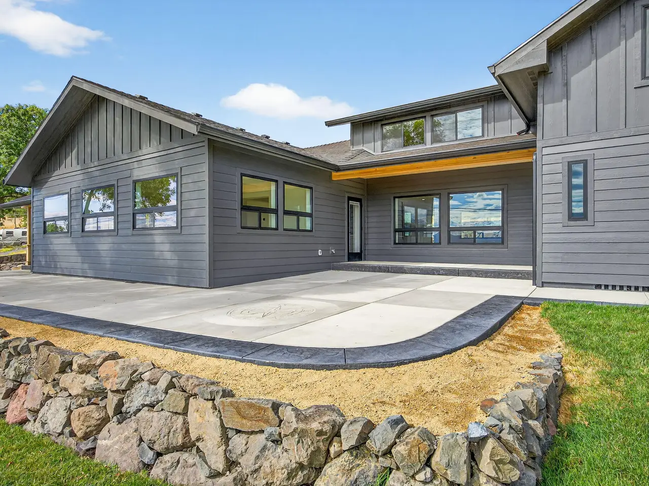 Incredible one-of-a-kind East Medford hillside home showcasing breathtaking panoramic views and a complete remodel from the ground up. No expense spared while staying true to its farmhouse roots. Main floor primary suite, huge .62 acre lot, and endless upgrades throughout. Spacious living room with walls of windows and European hardwood floors. Gourmet kitchen boasts upgraded stainless appliances including a 48'' range, custom knotty alder cabinets, quartz counters, island, and butler's pantry. A true four bed four and a half bath with every bedroom having its own bathroom. Excellent layout with two expansive living areas, dual laundry rooms, and a bonus room not included in square footage. Major updates include new electrical, plumbing, insulation, HVAC with three new A/C units, windows, doors, gutters, cement board siding, paved drive, and gorgeous stained concrete. The exterior has lush landscaping with sod, fruit trees, bushes, & Wifi irrigation. Nothing left untouched. This home is a must-tour home