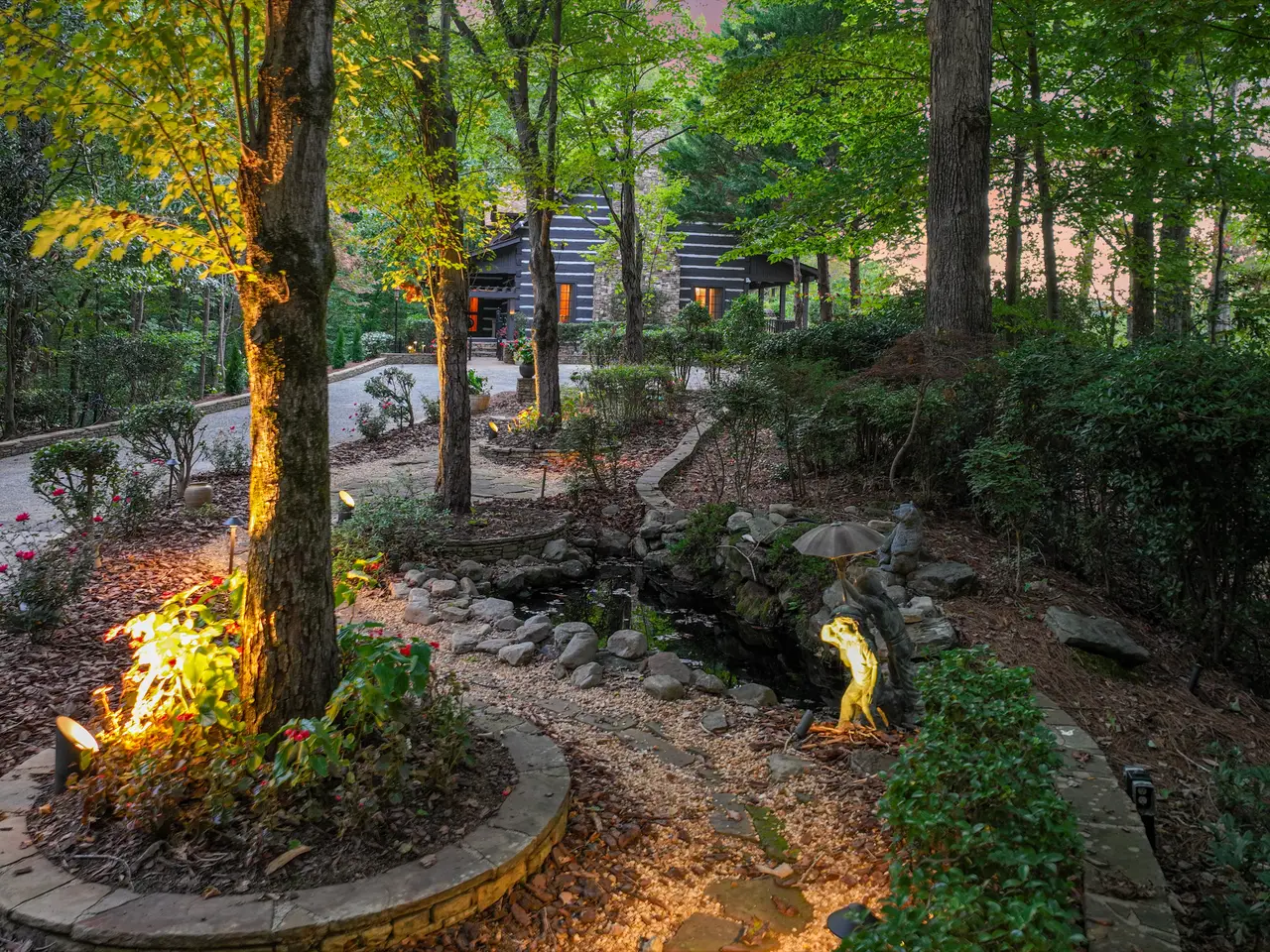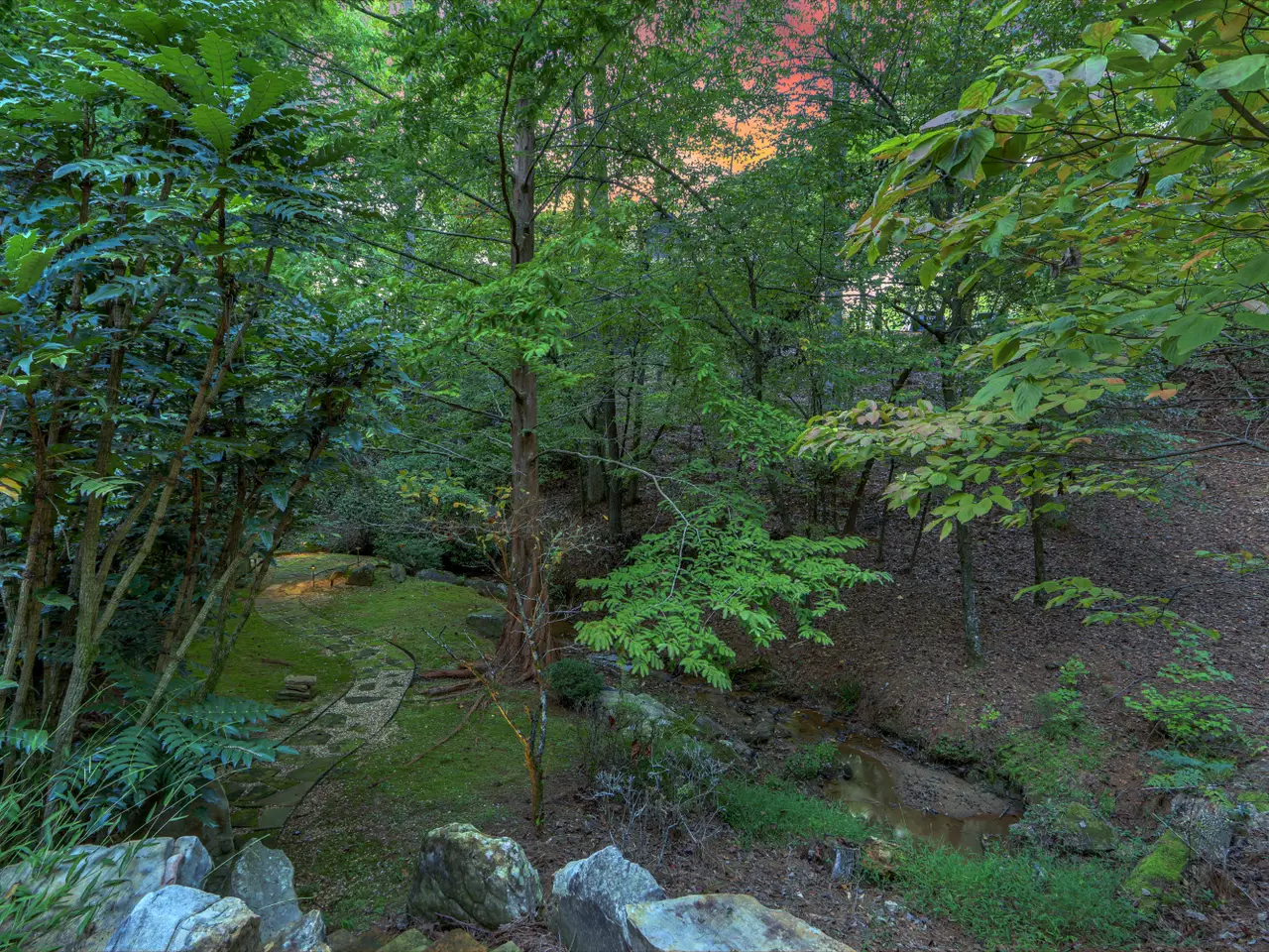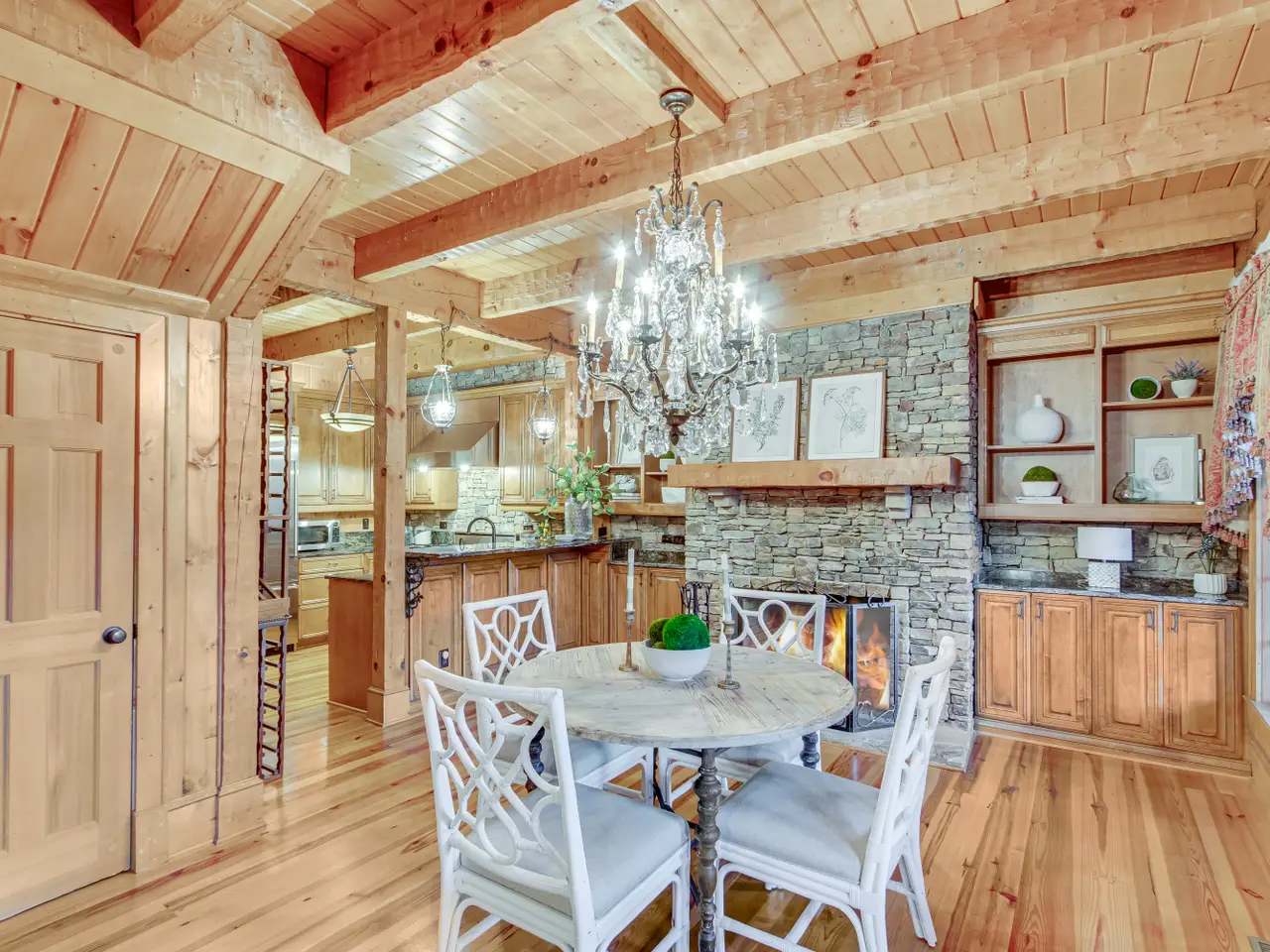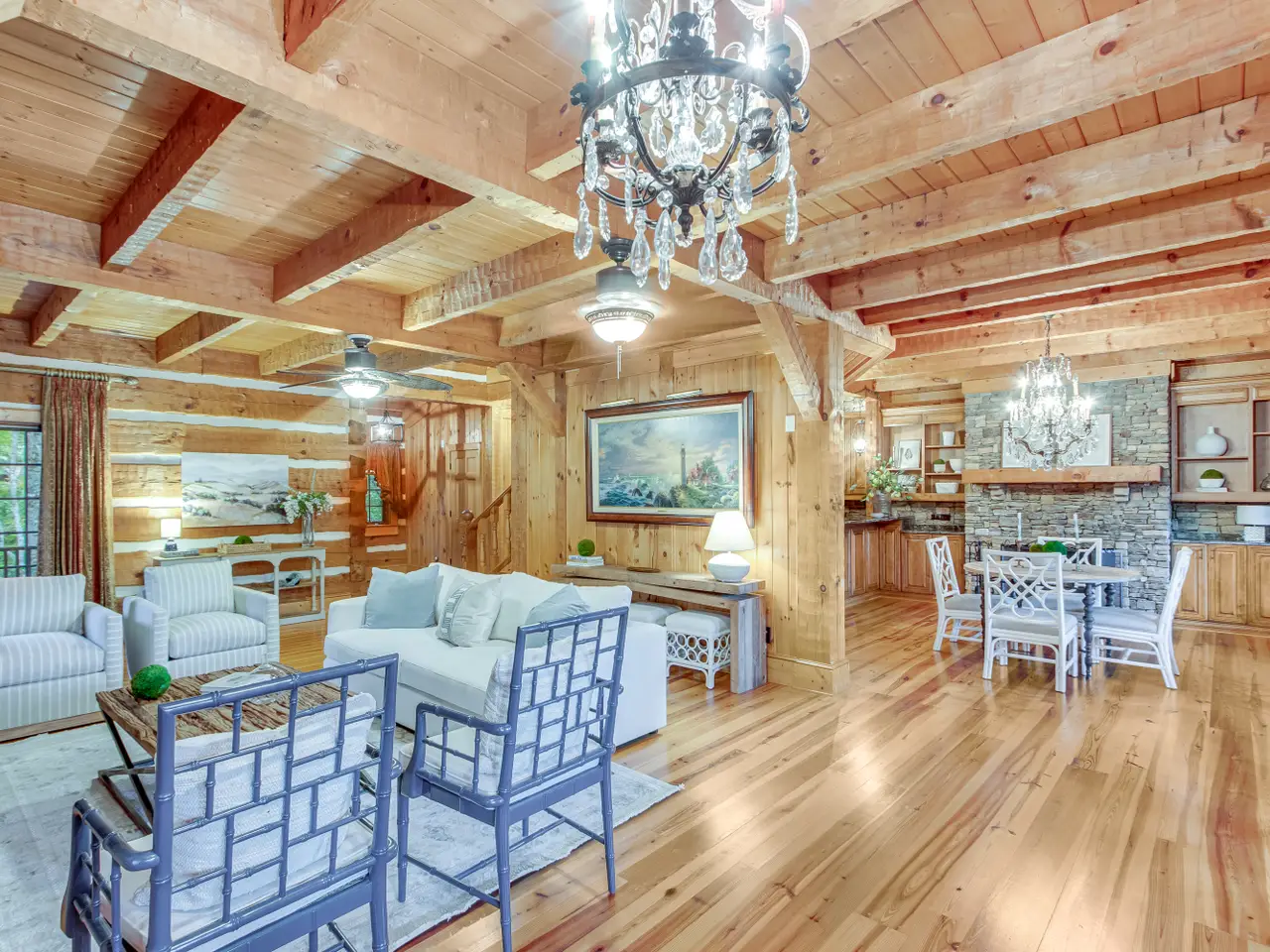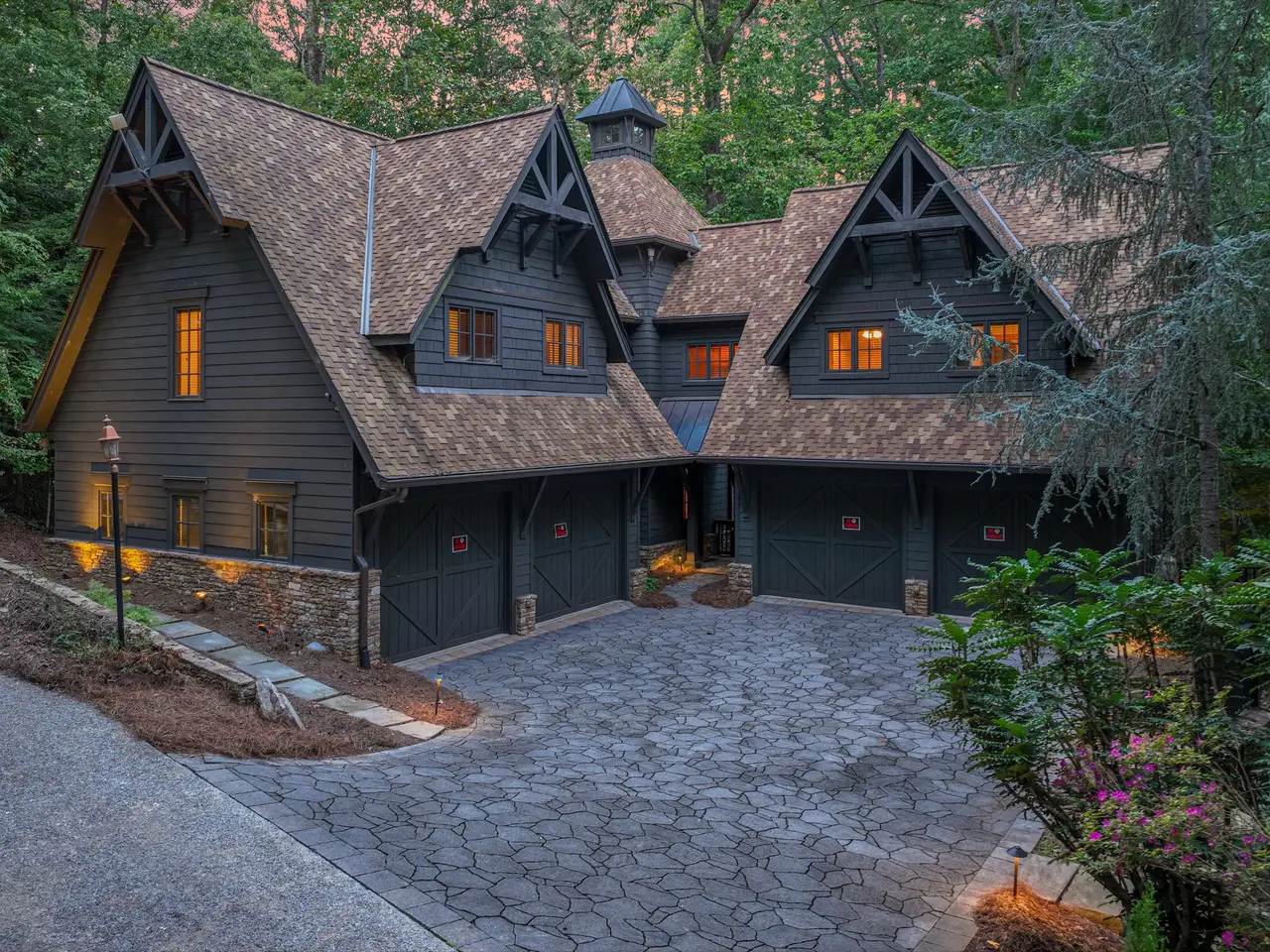 This magnificent, elegantly rustic, custom built Lake Lanier estate on 6.78 acres includes a Main Home, a Carriage House, and 2 attached Guest Houses on deep water with a double slip party dock, along with a stream, multiple waterfalls and water features, covered gazebo, and stone walking paths, is like no other property you've experienced! It could easily function as a private estate, investment opportunity, or corporate retreat. A refined gated entrance and tree lined drive over the stream welcomes you to the main home reminiscent of a log home in the mountains. Once inside, you'll appreciate the family room with gorgeous, hand hewn logs and beams, pine floors taken from an 1800's cabin, both joined with wood pegs, wood ceiling, stone fireplace, and an open porch leading to a stone patio that captures beautiful lake views. The kitchen boasts a stone backsplash, Viking appliances of a 4 burner with griddle gas range and refrigerator, a Bosch dishwasher, built-in pantry, a second stone fireplace in the dining area, and lake views. Just off the kitchen is a laundry room, and a hall full bath with a SteaMist shower. Walk past a spiral staircase (reclaimed from a ship) and you'll find a generous guest bedroom with ensuite offering a third stone fireplace, built-ins, lake views and French doors to a private screened porch. The bathroom includes a gorgeous stone accent wall and a huge, dual head shower. Upstairs, the primary bedroom with ensuite offers a cozy sitting/office area featuring a wood burning stove against a stone accent wall. Built-ins and a spacious morning bar lead into the luxurious bath with a makeup area, SteaMist shower, and stone floors. Within the bedroom, a fourth stone fireplace, huge walk-in closet with built-in storage, and French doors leading to your private deck overlooking the lake, combine to enhance the beginning or ending of your day. An additional bedroom/office with 3 closets, a sitting area and a fifth stone fireplace will warmly welcome guests. Two hall closets and a hall full bath complete the upper floor. The Carriage House features a 2 bay, heated and cooled garage with an interlocking tiled floor. Upstairs... you'll enjoy the convenience of a full kitchen with a Thermador 4 burner gas range, 2 Subzero under counter refrigerators, a Bosch dishwasher, granite counters, stained cabinets, wood walls and ceilings, and wide board pine flooring. A spacious dining and living area focuses on a stacked stone accent wall with a wood burning stove. A full bath, linen closet, and closet, along with a loft bedroom makes a perfect space for your guests. Should there be a power loss, a Generac generator supports the Main Home and the Carriage House. The Guest Homes allow for additional family or guests to feel right at home. Each home features 2 garage bays that are heated and cooled with separate thermostats, with 1 bay hosting an EV charger. Upon entering the homes, you'll find a laundry room with glazed cabinets, travertine tile floors, granite countertops and a sink. Before you walk upstairs, look up! You won't want to miss the stunning, light-filled, wood ceiling. Once upstairs, you'll find that both living spaces are private, yet conveniently connected. Each offers kitchenettes with Kitchen Aid refrigerators, drawer dishwashers and microwaves. The family and dining areas are intimate, and both have ample bedrooms with ensuites. Stone paths from the main home and the guest home lead past the stream, waterfall, and pond to a covered gazebo with beautiful lake views. The 32x32 double slip, covered dock is teak and has been recently pressure washed and oiled. Included in the dock are a boat hoist and 4 jet ski ports. The dock electrical was also recently rewired. This amazing property also features stone accent walls. A walkable paved cart path that leads to the adjacent vacant lot with a concrete drive allows for overflow parking, an RV or trailer for your watercraft, and a separate gated entrance.