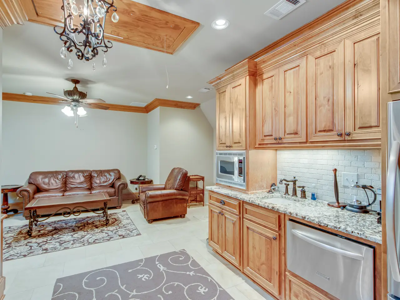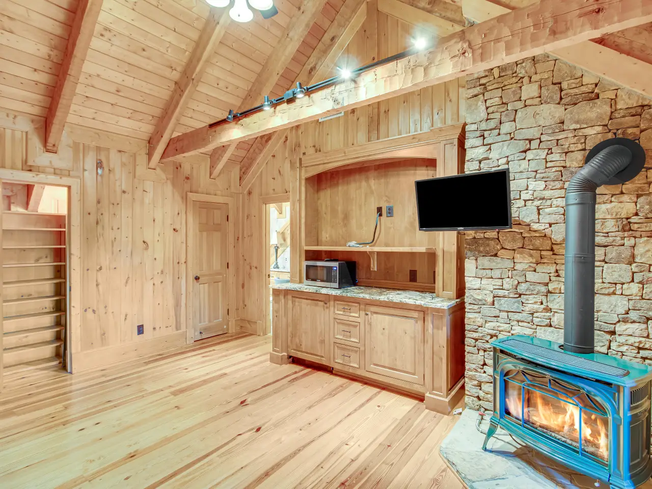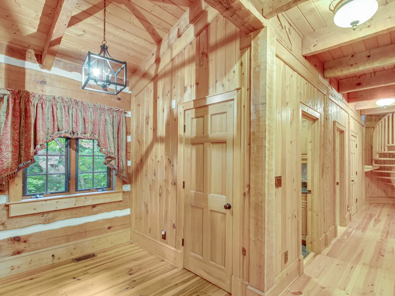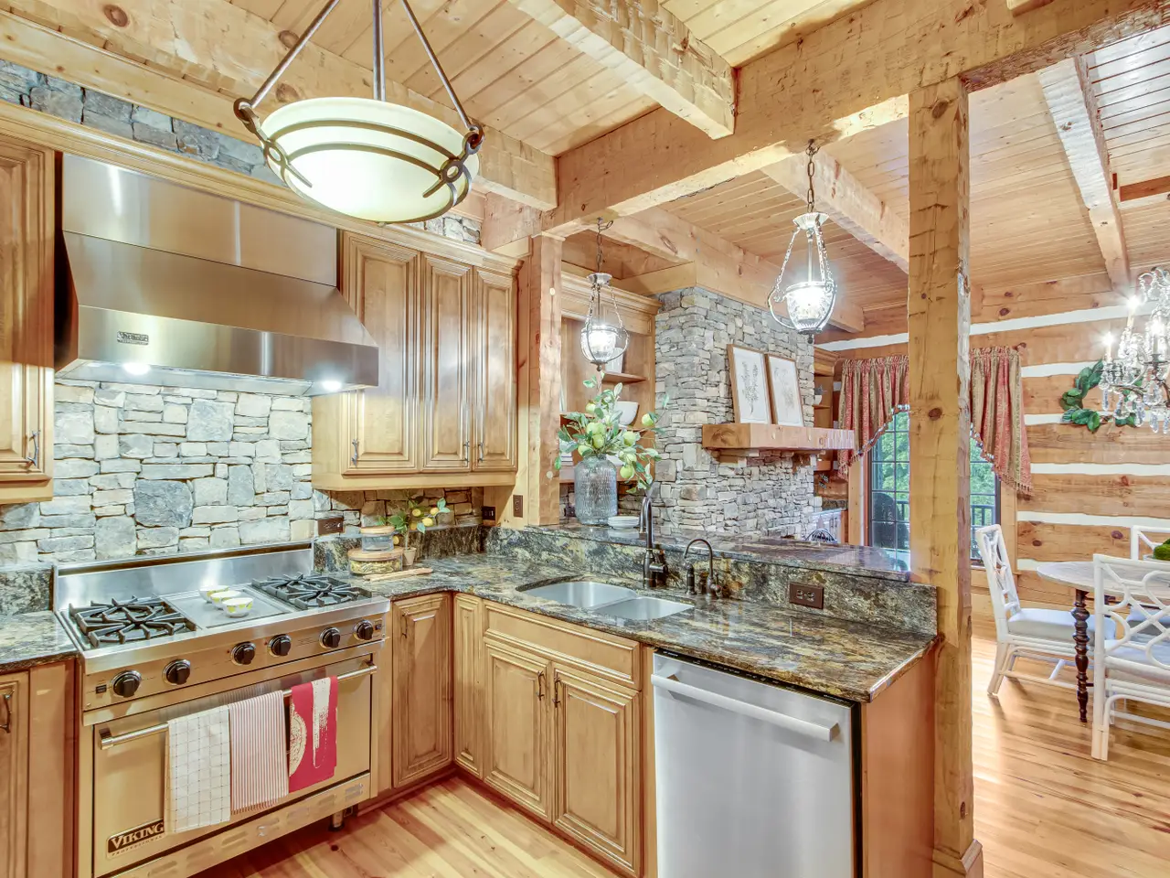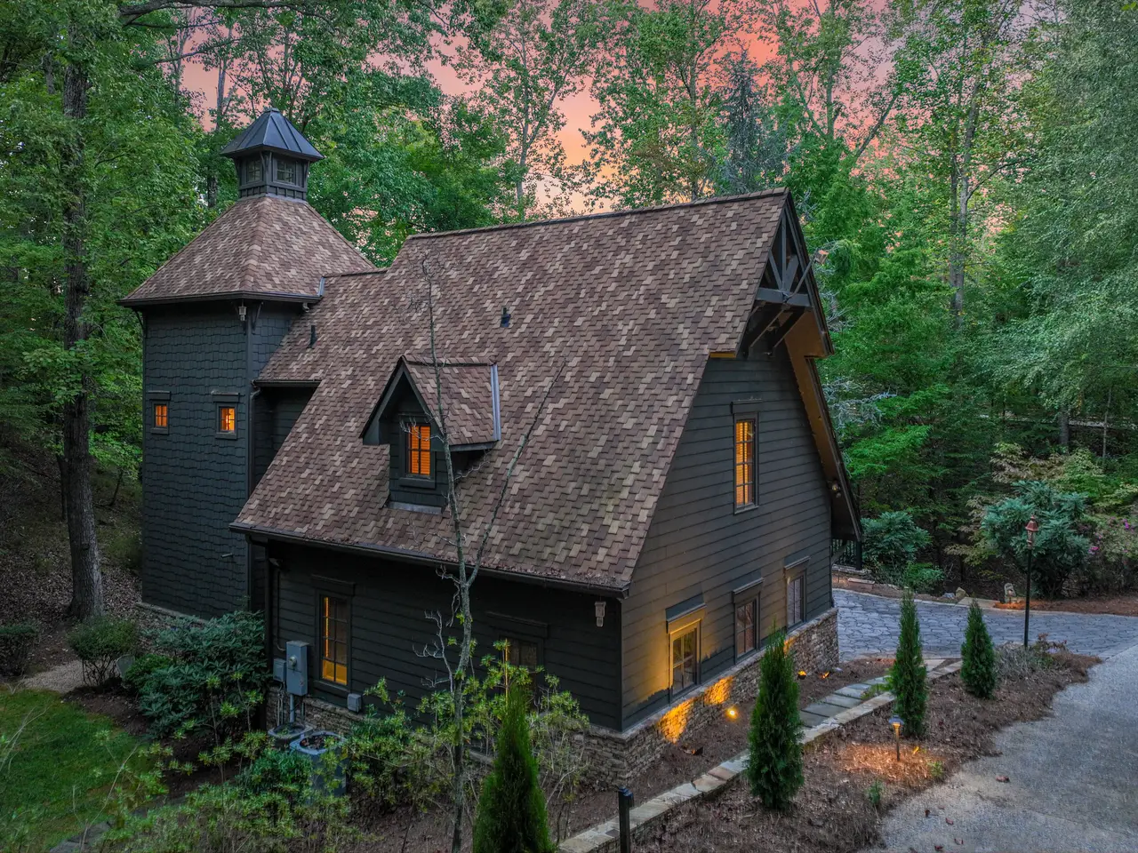 This magnificent, elegantly rustic, custom built Lake Lanier estate on 6.78 acres includes a Main Home, a Carriage House, and 2 attached Guest Houses on deep water with a double slip party dock, along with a stream, multiple waterfalls and water features, covered gazebo, and stone walking paths, is like no other property you've experienced! It could easily function as a private estate, investment opportunity, or corporate retreat. A refined gated entrance and tree lined drive over the stream welcomes you to the main home reminiscent of a log home in the mountains. Once inside, you'll appreciate the family room with gorgeous, hand hewn logs and beams, pine floors taken from an 1800's cabin, both joined with wood pegs, wood ceiling, stone fireplace, and an open porch leading to a stone patio that captures beautiful lake views. The kitchen boasts a stone backsplash, Viking appliances of a 4 burner with griddle gas range and refrigerator, a Bosch dishwasher, built-in pantry, a second stone fireplace in the dining area, and lake views. Just off the kitchen is a laundry room, and a hall full bath with a SteaMist shower. Walk past a spiral staircase (reclaimed from a ship) and you'll find a generous guest bedroom with ensuite offering a third stone fireplace, built-ins, lake views and French doors to a private screened porch. The bathroom includes a gorgeous stone accent wall and a huge, dual head shower. Upstairs, the primary bedroom with ensuite offers a cozy sitting/office area featuring a wood burning stove against a stone accent wall. Built-ins and a spacious morning bar lead into the luxurious bath with a makeup area, SteaMist shower, and stone floors. Within the bedroom, a fourth stone fireplace, huge walk-in closet with built-in storage, and French doors leading to your private deck overlooking the lake, combine to enhance the beginning or ending of your day. An additional bedroom/office with 3 closets, a sitting area and a fifth stone fireplace will warmly welcome guests. Two hall closets and a hall full bath complete the upper floor. The Carriage House features a 2 bay, heated and cooled garage with an interlocking tiled floor. Upstairs... you'll enjoy the convenience of a full kitchen with a Thermador 4 burner gas range, 2 Subzero under counter refrigerators, a Bosch dishwasher, granite counters, stained cabinets, wood walls and ceilings, and wide board pine flooring. A spacious dining and living area focuses on a stacked stone accent wall with a wood burning stove. A full bath, linen closet, and closet, along with a loft bedroom makes a perfect space for your guests. Should there be a power loss, a Generac generator supports the Main Home and the Carriage House. The Guest Homes allow for additional family or guests to feel right at home. Each home features 2 garage bays that are heated and cooled with separate thermostats, with 1 bay hosting an EV charger. Upon entering the homes, you'll find a laundry room with glazed cabinets, travertine tile floors, granite countertops and a sink. Before you walk upstairs, look up! You won't want to miss the stunning, light-filled, wood ceiling. Once upstairs, you'll find that both living spaces are private, yet conveniently connected. Each offers kitchenettes with Kitchen Aid refrigerators, drawer dishwashers and microwaves. The family and dining areas are intimate, and both have ample bedrooms with ensuites. Stone paths from the main home and the guest home lead past the stream, waterfall, and pond to a covered gazebo with beautiful lake views. The 32x32 double slip, covered dock is teak and has been recently pressure washed and oiled. Included in the dock are a boat hoist and 4 jet ski ports. The dock electrical was also recently rewired. This amazing property also features stone accent walls. A walkable paved cart path that leads to the adjacent vacant lot with a concrete drive allows for overflow parking, an RV or trailer for your watercraft, and a separate gated entrance.