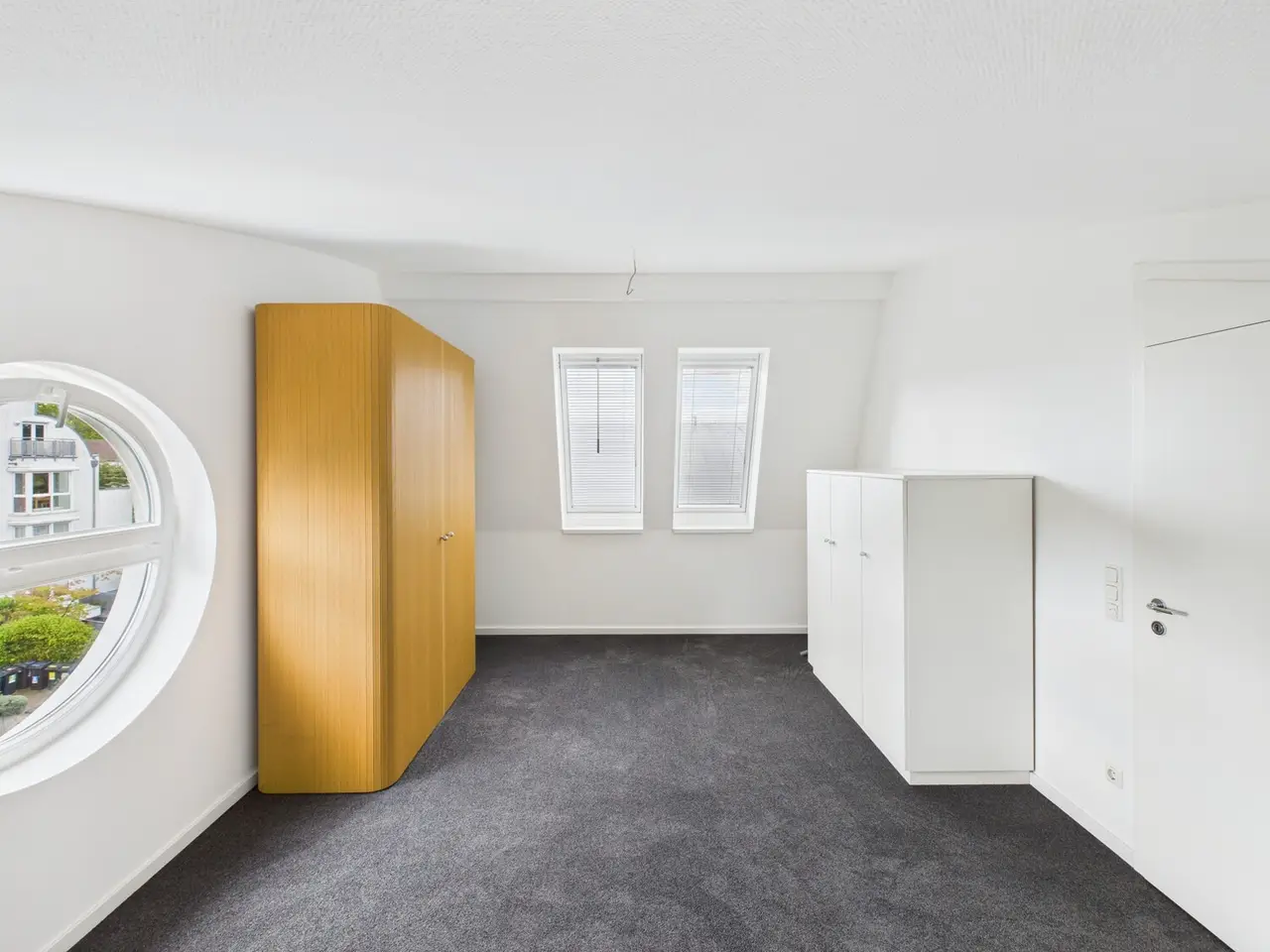 This spacious penthouse maisonette extends over two floors (2nd and 3rd floor) in a well-kept residential complex with only a few residential units and impresses with a first-class combination of well thought-out room layout, high-quality furnishings and an outstanding location with an exceptional view over the city of Wiesbaden. The living space of approx. 156 m² offers ideal conditions for upscale living and versatile usage options. Upon entering the apartment, you are greeted by a light-flooded, spacious living area with elegant marble flooring, which impressively combines living comfort and style. From here, you have direct access to the spacious west-facing balcony, which offers wonderful panoramic views of the city - a particular highlight in the evenings. The fitted kitchen is tastefully equipped and offers plenty of space for culinary development thanks to well thought-out fixtures and work surfaces. The guest shower room adjoins the living area - practical for everyday life and guests alike. There is also another room that can be used optimally as a study or guest room. There are two bedrooms on the upper level of the penthouse maisonette, which could be used flexibly as bedrooms, teenagers' rooms or studies. The carpeted floors in the sleeping areas create a homely atmosphere. Two of the bedrooms are equipped with practical built-in wardrobes, which offer plenty of storage space and perfectly complement the room layout. The master bedroom is particularly noteworthy, with floor-to-ceiling windows offering an impressive view over Wiesbaden. The comfortable master bathroom offers both a bathtub and a separate shower. The apartment is equipped with energy-efficient gas central heating, which was extensively modernized in 2018. In addition, the underfloor heating in the entire living area ensures a pleasant indoor climate. The apartment includes a cellar room and an additional storage room in the underground garage, directly adjacent to the stairwell - ideal for bicycles or seasonal items. Two fully-fledged underground parking spaces (€ 30,000 each) are available for your vehicles. The penthouse maisonette is located in a small community of owners and offers exclusive living in a quiet, yet very central location in Wiesbaden. All daily amenities, schools and public transport are within easy reach. The combination of high-quality construction, special architecture, modern furnishings and the attractive room layout make this offer particularly appealing. Arrange a viewing appointment and see the advantages of this unique apartment for yourself.