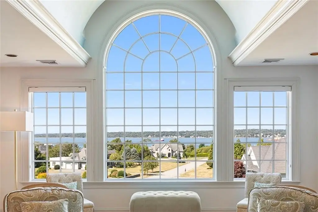 Perched above the waters of Narragansett Bay, this custom-built home in Portsmouth offers refined craftsmanship, timeless design, and gorgeous water views all set on a beautifully landscaped property designed for luxury living. Featuring four spacious bedrooms and three full bathrooms, plus an additional bonus room. This home has been meticulously maintained inside and out. The first floor has a primary bedroom, office and sunroom. The chef's kitchen is appointed with premium appliances, custom cabinetry and a large granite countertop. Numerous sun-filled living areas with high ceilings and custom finishes all positioned to enjoy the view of the bay. An in home elevator provides access to all three floors making living easy and convenient for entertaining on any floor. A beautiful walkout lower level with loads of potential for the new owners. There is a three-car garage with unfinished space above ideal for a guest suite, yoga, art studio or private gym. The property has multiple decks and patios thoughtfully positioned around the home to capture water views and the spectacular sunsets. Being located adjacent to the Aquidneck Club, this property is just a short golf cart ride away for sporting enthusiasts. A residence that truly has it all and more.