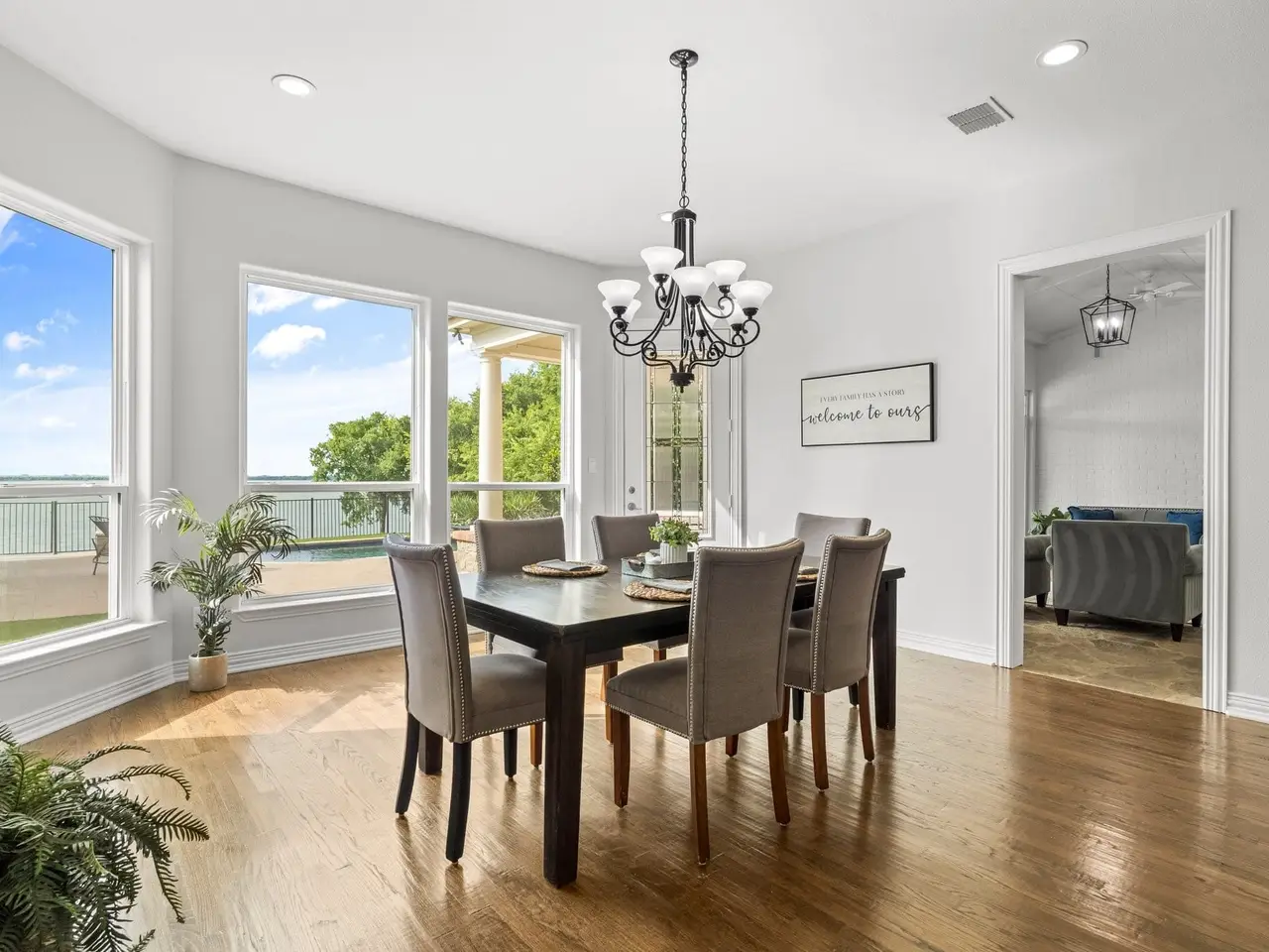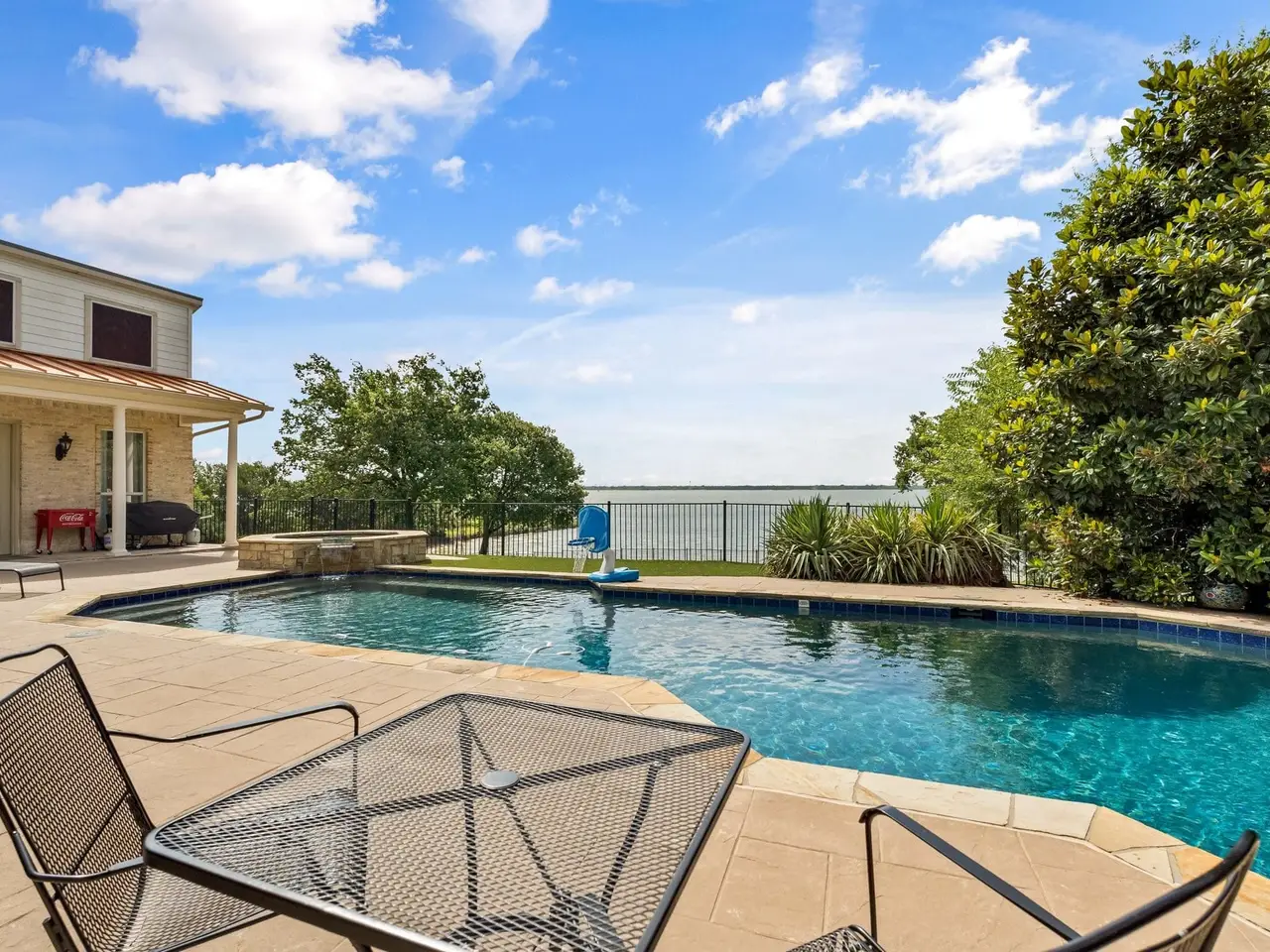 Located on an exclusive cul-de-sac with commanding lake views, this custom estate offers luxury lakefront living at its finest. With 4 bedrooms, 4.5 baths, set on 1.4 meticulously maintained acres, this home combines timeless craftsmanship with modern comfort for the discerning buyer. Inside, you'll find hand-scraped hardwood floors, soaring ceilings, and a warm living area anchored by a stone fireplace and built-in wet bar, perfect for both executive entertaining and cozy evenings in. Expansive windows frame breathtaking water views from the living room, kitchen, and breakfast area, filling the home with natural light and serenity. The sunroom retreat offers a peaceful place to begin or end the day, while the gourmet kitchen features a gas stove, center island, breakfast bar, and a spacious walk-in pantry, ideal for hosting or everyday living. The primary suite retreat is a private sanctuary with a spa-like bath that includes a freestanding soaking tub, oversized shower, dual vanities, and a spacious walk-in closet complemented by a flexible area perfect for a dressing room, workout space, or more. A mezzanine office with built-ins offers a quiet, elevated workspace ideal for working from home or creative pursuits. Upstairs, newly installed carpet, spacious secondary bedrooms, and a versatile game room offer privacy and flexibility for guests or family. Thoughtful storage throughout the home supports a clutter-free, elevated lifestyle. Step outside to your outdoor oasis featuring a sparkling pool, hot tub, and a fully equipped 446 Sq Ft pool house with a full bath, ideal for guests or entertaining. The covered patio, complete with a second fireplace and uninterrupted water views, creates the perfect setting for year-round enjoyment. This is a rare opportunity to own one of the area's premier lakefront luxury homes.