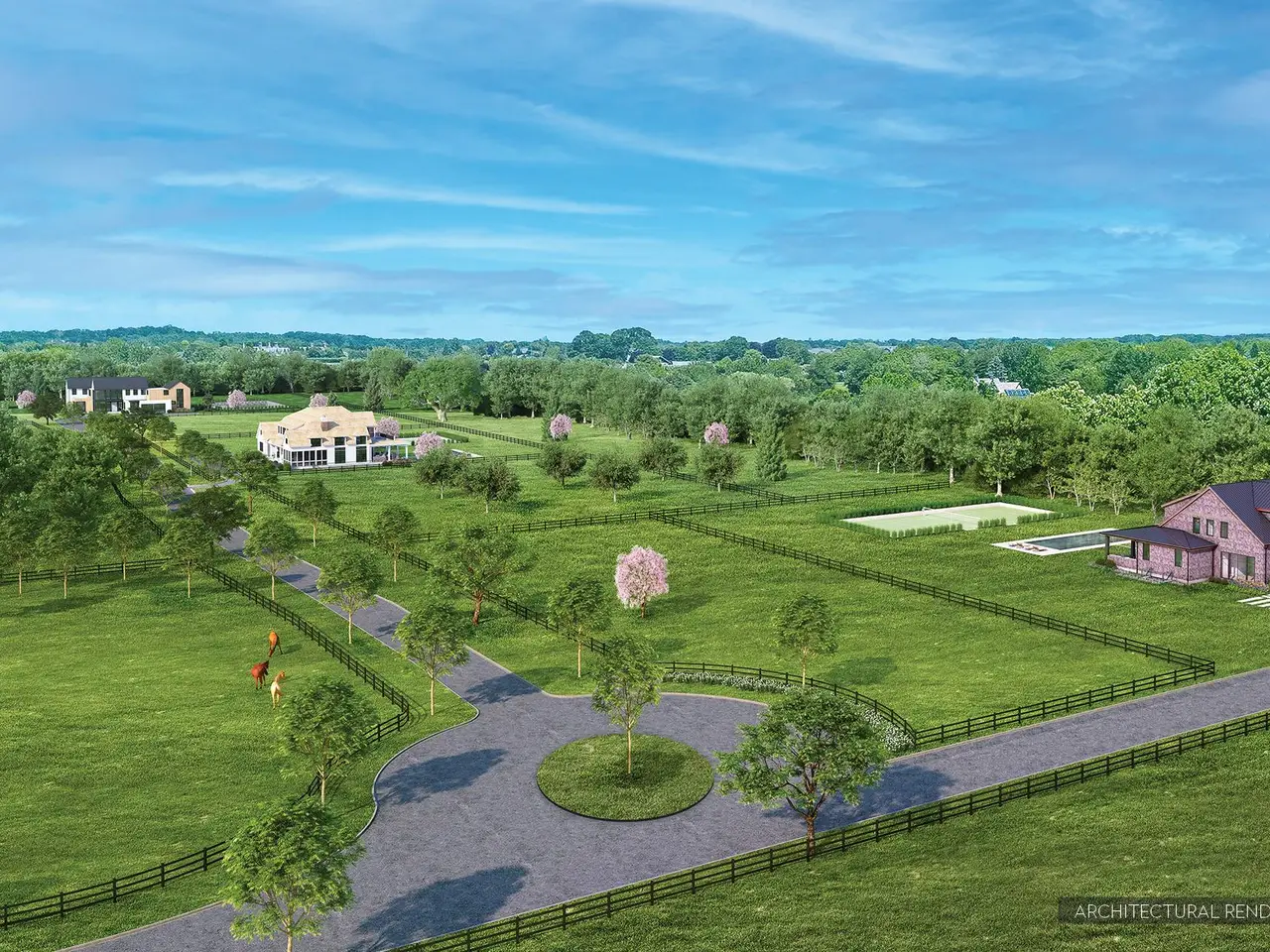 Exceptional, newly constructed and state of the art. A gorgeous new home in an equally stunning setting. Located within the private, 23+/- acre community of Windy Hill Farm in Bridgehampton the property is a sprawling 1.6+/- acre parcel, with pool and tennis, at the end of a cul-de-sac and overlooking open fields. The residence will be built to the highest standards of design and feature 9 bedrooms, 8 full bathrooms and one half bath across 6,875+/- sf of living space as well as a host of amenities including a rock climbing wall and sauna on the lower level, Tesla charging station, hydronic radiant floor heat in the garage and basement, a solar energy system and smart home tech. Finest materials and exquisite craftsmanship melding with architectural details including high ceilings, walls of glass, indoor and outdoor fireplaces, and a standing seam metal roof. The foyer opens into a perfectly designed floor plan. The east wing of the home features a living room, beautiful office, and 2 bedrooms suites. The west side offers a professional chef's kitchen, open to the family room, with large butler's pantry and breakfast area. An expansive covered porch, right off the kitchen and family room is stylish place to lounge in the glow of the outdoor fireplace. State of the art tech can be found throughout, adding to a sense of comfort and convenience. The entire home is prewired for Sonos. The bedrooms are elegant, nearly all with en suite baths. Both the primary and junior primary suites offer luxurious accommodation to relax and unwind. The walk-out lower level features a glassed gym area with access to the lower court and and Tennis beyond, sauna, game room wine closet, ample storage, and 2 bedrooms sharing a bath. Outside, the lush, well-manicured grounds will surround a gunite infinity swimming pool, tennis court, and offer pasture views. Option may be available during the pre-construction period to custom build a pool house or accessory structure for up to 3 horses with cost depending on the buyer's final choices of amenities. 13+ acres of the Windy Hill Farm community will be preserved as common open space for the exclusive use of the homeowners inclusive of a 100-year-old apple orchard and a planned horse pasture. A homeowner association will manage the usage of the space to insure it preserves the bucolic nature of the community. Located in Bridgehampton, NY, a hamlet long renowned for idyllic estates, historic horse farms and exceptional equestrian events.