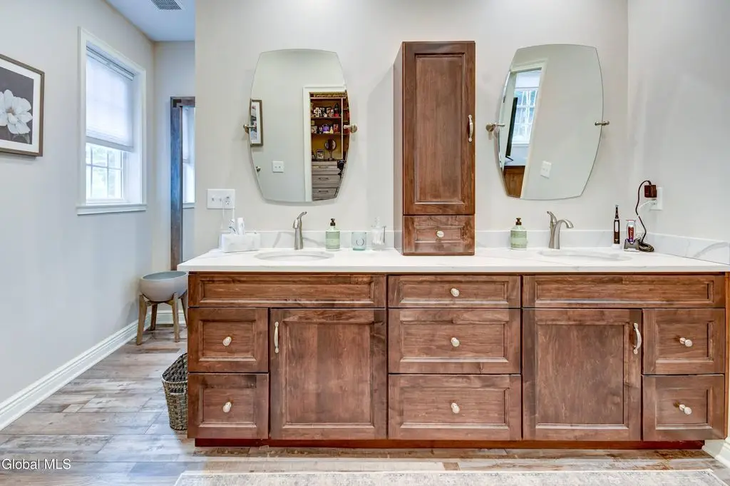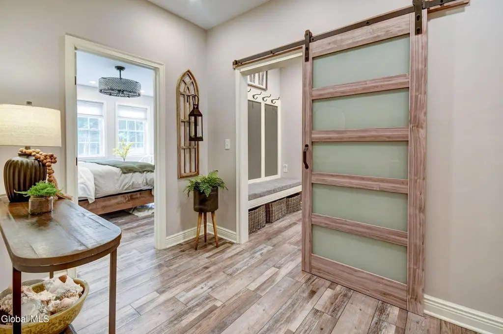 Set on 1.5 private acres in the Guilderland School District, this 1,800 sq ft 3-bed, 2-bath custom Craftsman-style ranch offers comfort and space in a serene setting. A long private driveway leads to a charming one-story home featuring a warm living room with gas-burning fireplace, spacious eat-in kitchen, and generous bedrooms. Enjoy the convenience of public water/sewer and an oversized 2-car garage. Surrounded by trees, yet minutes to shopping, schools, and highwaysC/B?B=this home blends quiet living with everyday access. Love the outdoors look no further, while staying close to home. Featuring beautiful wildlife & nature just outside your windows. a Complete wooded surrounding, A gardeners dream, driving an abundance of beauty & nature in your home Environment. ft. Perennial Garden & ...