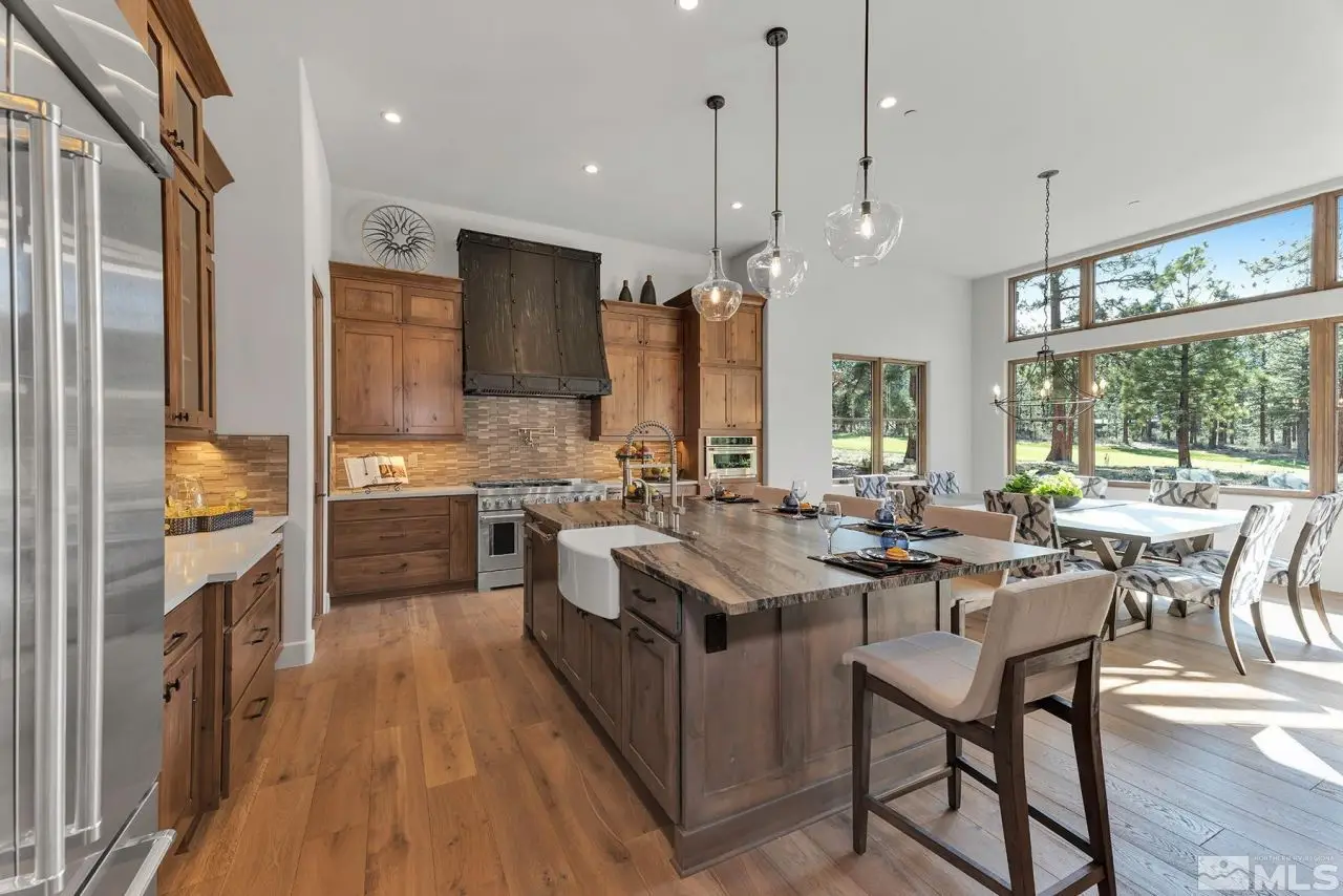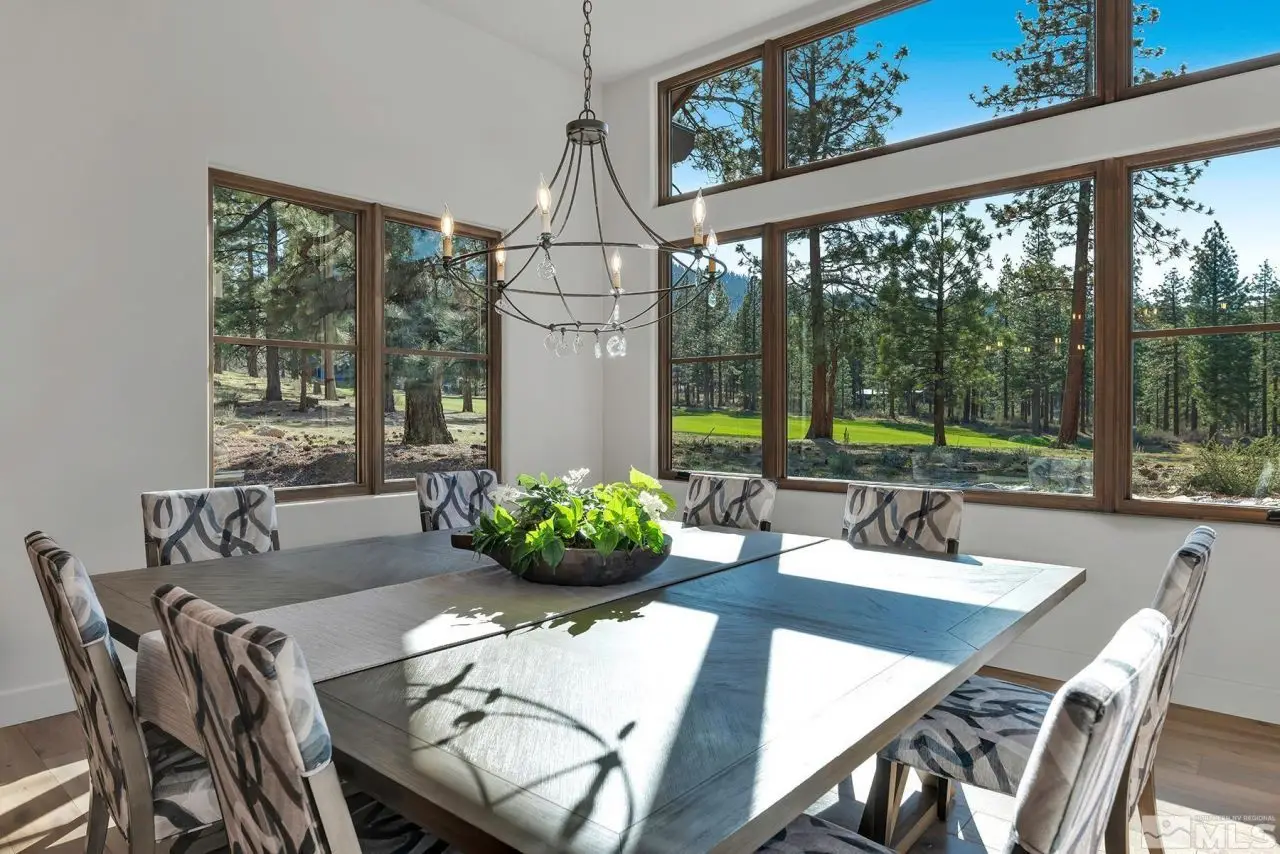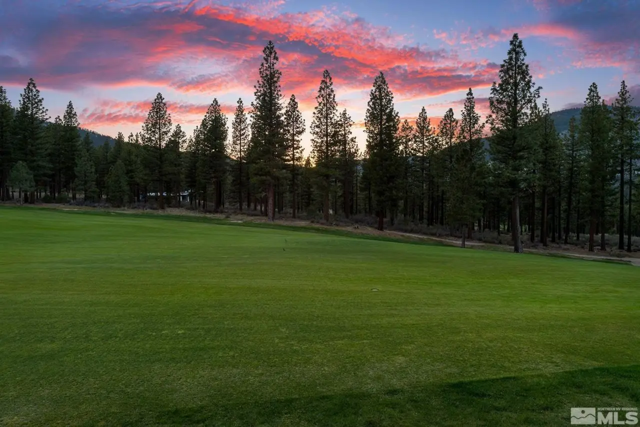Immerse yourself in the tranquility of nature as you breathe in the crisp mountain air, serenade your senses with the melodies of chirping birds, and witness the graceful deer welcoming you to Clear Creek Tahoe - a haven where natural beauty meets luxury. Nestled amidst towering pines, this charming mountain cottage has sweeping views of the third fairway, as well as the lustrous green on Nevada's premier private golf course. Designed as a single-story custom retreat, this home offers a warm, inviting atmosphere and an open floor plan perfect for hosting gatherings with loved ones or enjoying sunset views from the expansive covered deck. The heart of the home, the Great Room, seamlessly integrates a spacious dining area and a well-appointed kitchen. A towering stone gas fireplace anchors the room, reaching up to a tongue & groove wooden ceiling adorned with elegant beams. The kitchen features a generous island, exquisite cabinetry, a wine refrigerator, and even a Wi-Fi-enabled oven for modern convenience. Equipped with a Lutron Smart Home system, the residence allows effortless control of lighting and HVAC settings via your smartphone. A dedicated office space, complete with barn doors and shutters for privacy and its own HVAC zone, makes remote work a pleasure. The grand master suite boasts a stunning granite fireplace, a private deck perfect for morning coffee amidst vibrant scenery, and a luxurious bathroom offering a garden tub, steam shower, heated floors, and a spacious walk-in closet. Two additional large en-suite bedrooms on the south side of the home offer privacy and panoramic views of the golf course, completing this exceptional retreat. The home has been lovingly cared for and maintained while the owners were building a larger home within the community. The exterior was re-stained in 2023. Clear Creek Tahoe is more than a community?it's a lifestyle. Anchored by Nevada's #1 ranked residential golf course, it offers an unparalleled blend of mountain and lake amenities. The private Lake & Ski House provides 180 feet of sandy beach, water sports, and a shuttle service to Heavenly Ski Resort. Summit Camp is a hub for recreation with a pool, water slide, hot tub, tennis, pickleball, and bocce. At the heart of it all, the spacious Clubhouse features a year-round wellness and fitness center, ensuring adventure and relaxation in every season.
