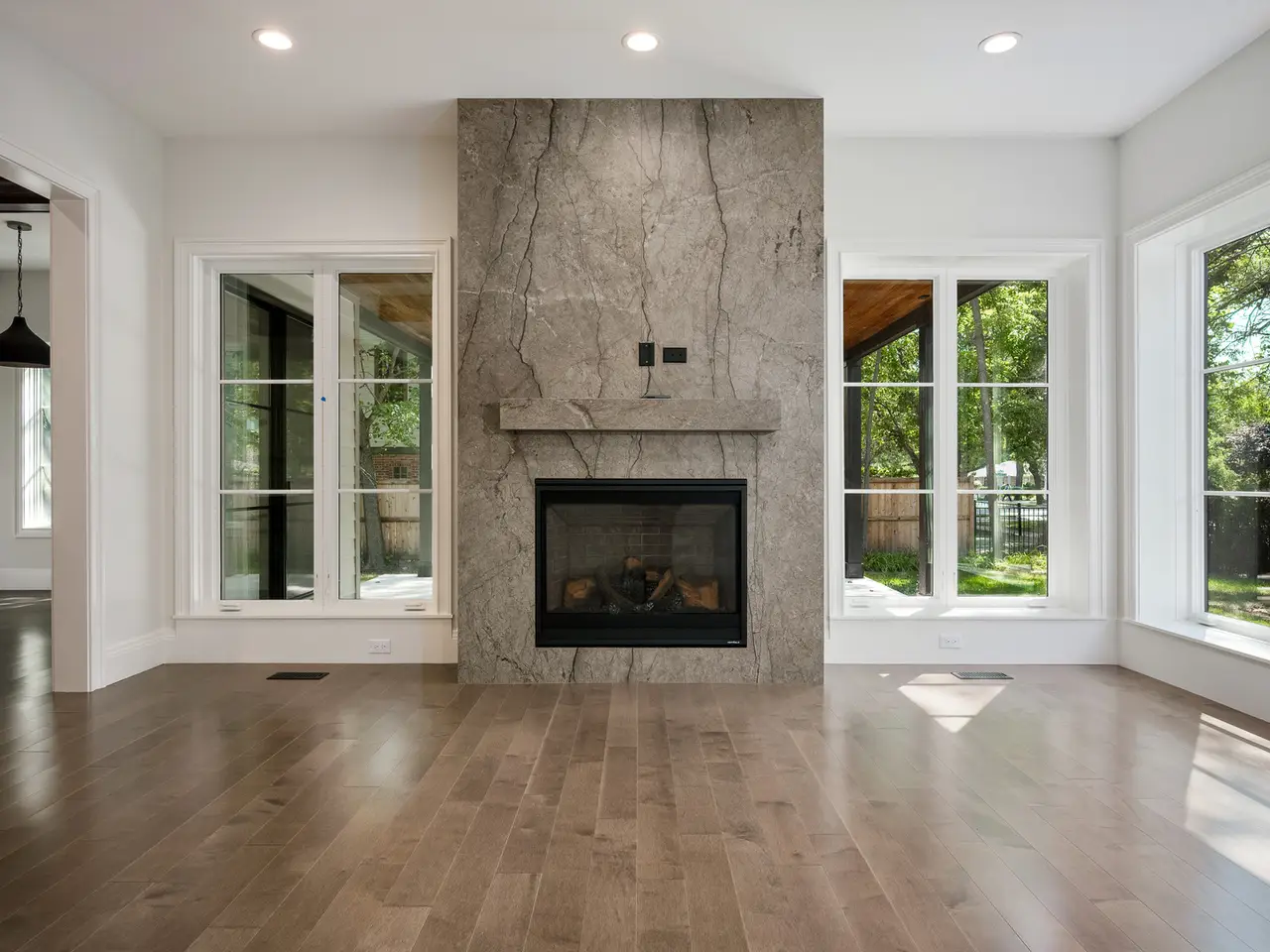 • Covered porch with fireplace