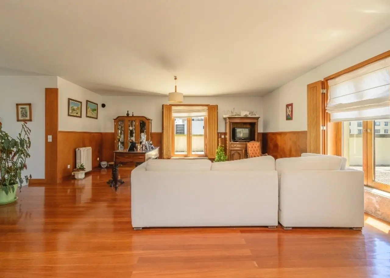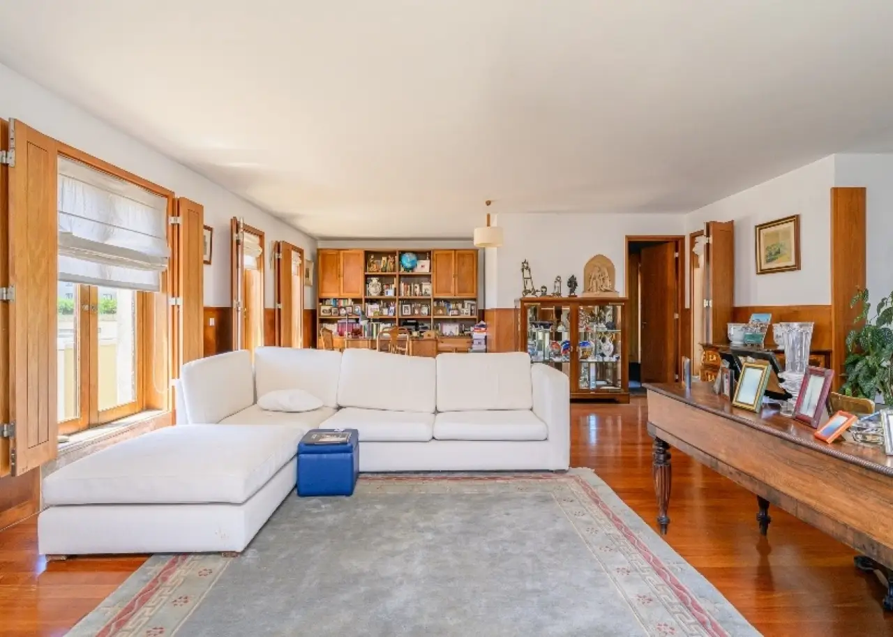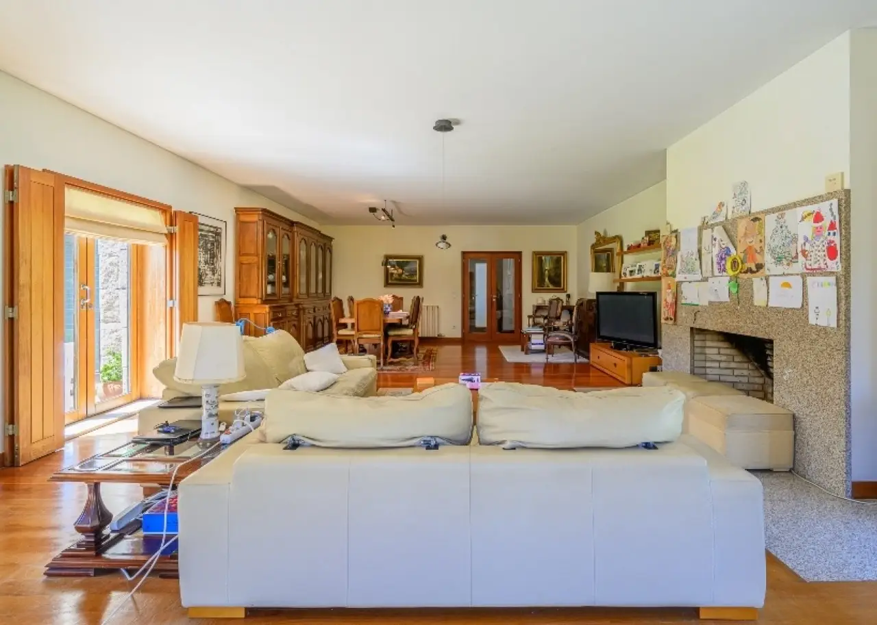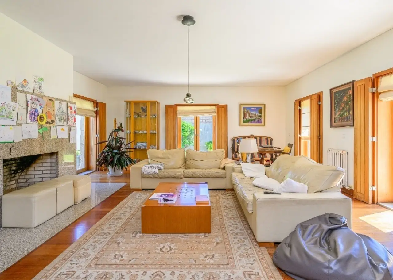 Fantastic four-bedroom detached villa, located in a noble and quiet area of Leça da Palmeira, a 2-minute walk from the beach. This incredible villa, with a huge garden and surrounded by a granite wall, has spacious and bright areas, all of which have access to the outside garden space. The generously-sized living room has various seating and dining areas and is around 60 m2. Next to the kitchen there is a fifth room that can be used as an office or playroom and is served by a bathroom. In the private area of the villa there are four bedrooms, one of which is a huge suite, all with access to the outside. On the upper floor there is a large room, served by a bathroom, which functions as a second living room, giving access to three terraces and wonderful views. There is also a large basement of around 60 m2 and a garage with capacity for 3 cars. All the accesses to the garden, as well as the windows, are protected by interior wooden shutters. Located in the center of Leça da Palmeira, with shops and services nearby. Good access to the highway and easy access to the center of Matosinhos and the center of Porto. CHARACTERISTICS: Plot Area: 1 008 m2 | 10 850 sq ft Deployment Area: 390 m2 | 4 198 sq ft Building Area: 538 m2 | 5 791 sq ft Bedrooms: 4 Bathrooms: 4 Garage: 3 Energy efficiency: C