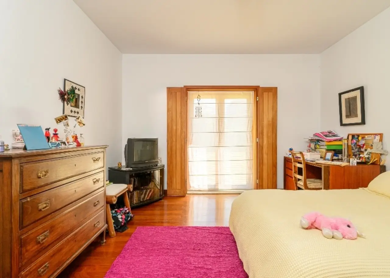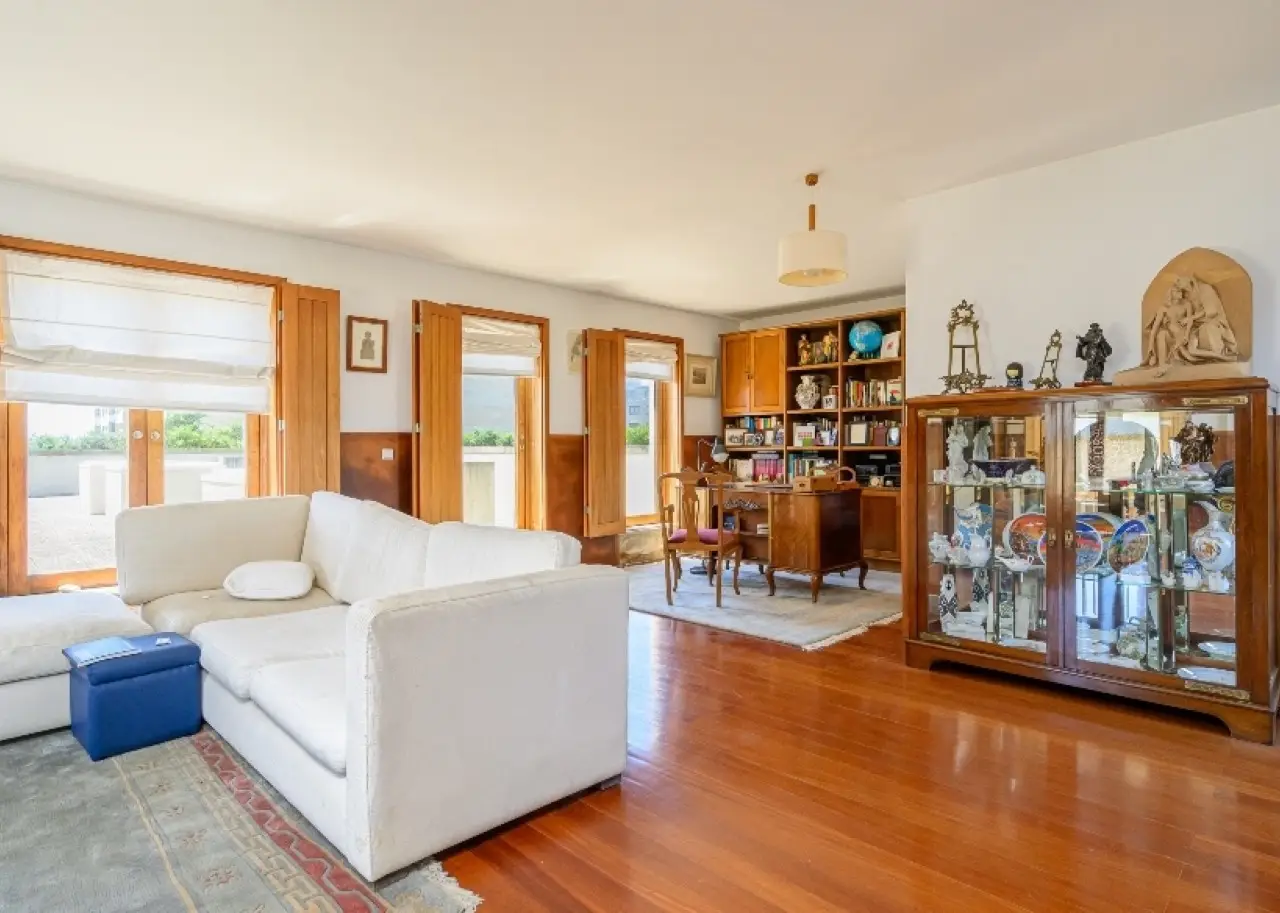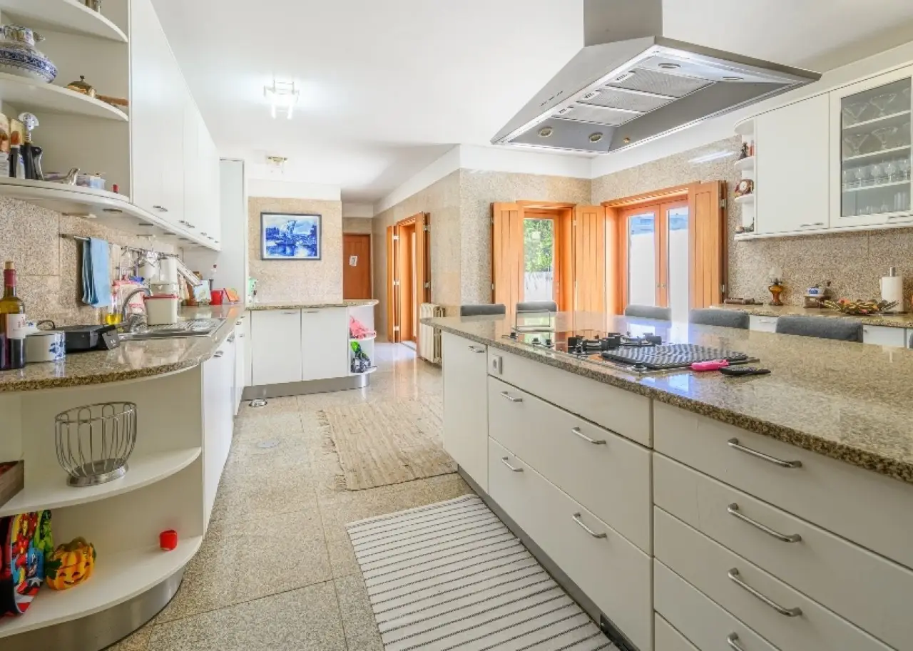 Fantastic four-bedroom detached villa, located in a noble and quiet area of Leça da Palmeira, a 2-minute walk from the beach. This incredible villa, with a huge garden and surrounded by a granite wall, has spacious and bright areas, all of which have access to the outside garden space. The generously-sized living room has various seating and dining areas and is around 60 m2. Next to the kitchen there is a fifth room that can be used as an office or playroom and is served by a bathroom. In the private area of the villa there are four bedrooms, one of which is a huge suite, all with access to the outside. On the upper floor there is a large room, served by a bathroom, which functions as a second living room, giving access to three terraces and wonderful views. There is also a large basement of around 60 m2 and a garage with capacity for 3 cars. All the accesses to the garden, as well as the windows, are protected by interior wooden shutters. Located in the center of Leça da Palmeira, with shops and services nearby. Good access to the highway and easy access to the center of Matosinhos and the center of Porto. CHARACTERISTICS: Plot Area: 1 008 m2 | 10 850 sq ft Deployment Area: 390 m2 | 4 198 sq ft Building Area: 538 m2 | 5 791 sq ft Bedrooms: 4 Bathrooms: 4 Garage: 3 Energy efficiency: C