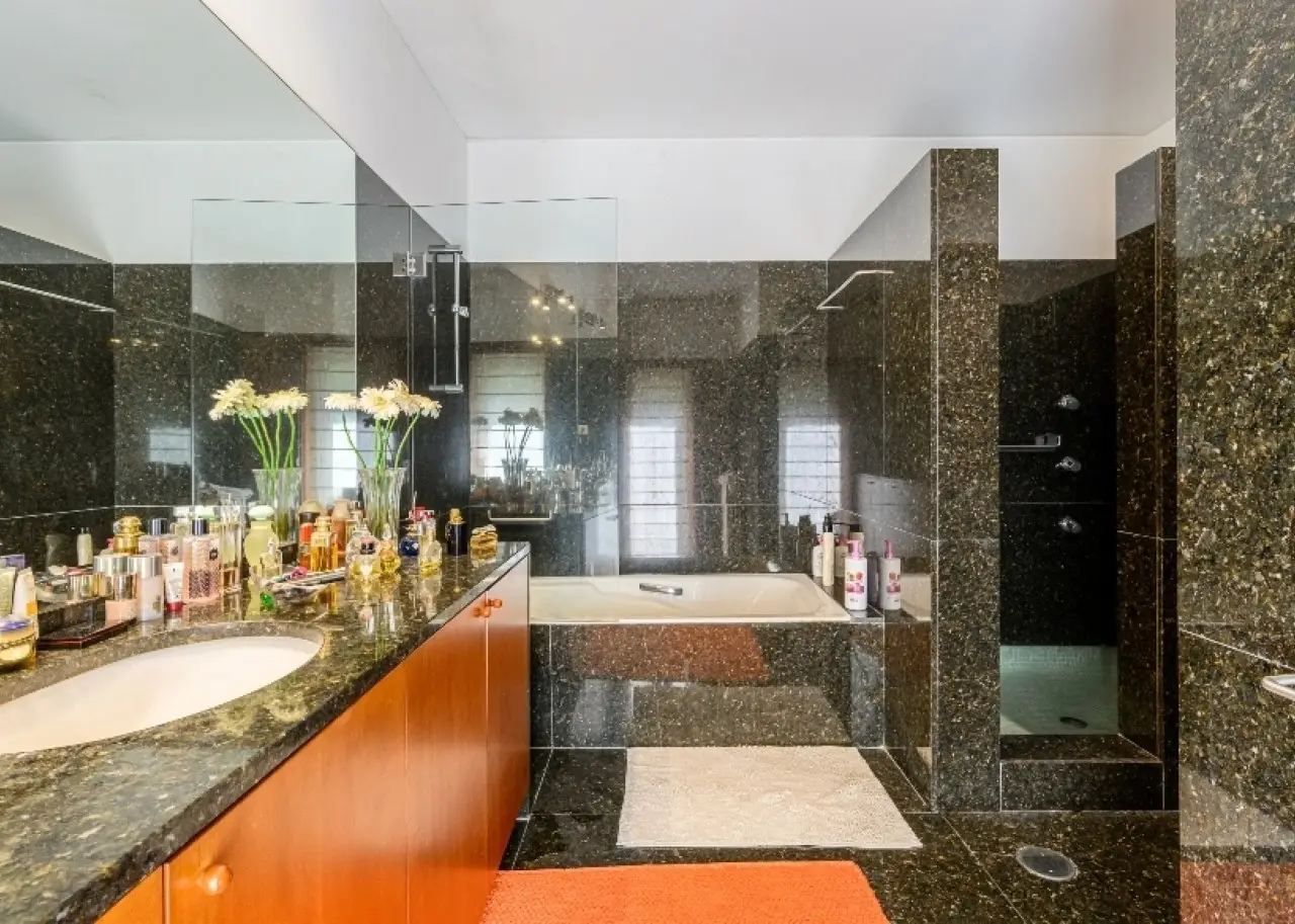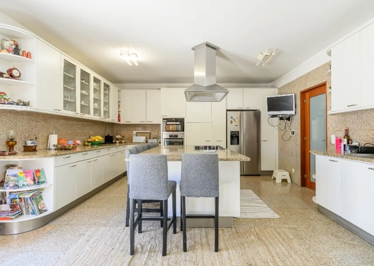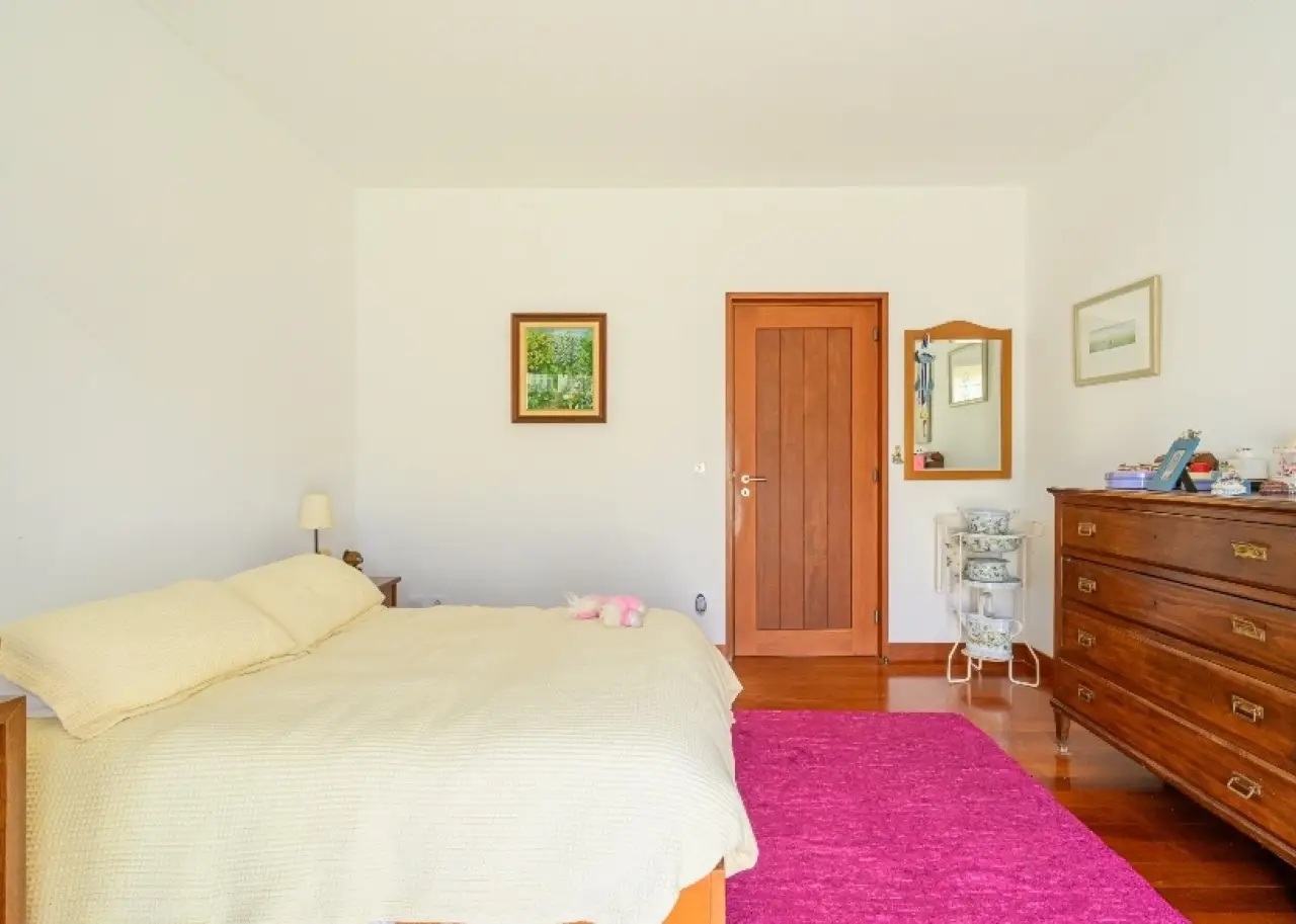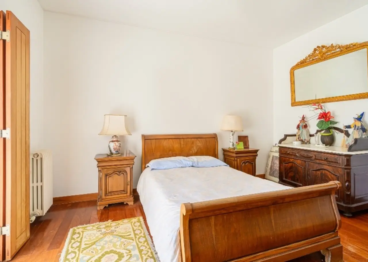 Fantastic four-bedroom detached villa, located in a noble and quiet area of Leça da Palmeira, a 2-minute walk from the beach. This incredible villa, with a huge garden and surrounded by a granite wall, has spacious and bright areas, all of which have access to the outside garden space. The generously-sized living room has various seating and dining areas and is around 60 m2. Next to the kitchen there is a fifth room that can be used as an office or playroom and is served by a bathroom. In the private area of the villa there are four bedrooms, one of which is a huge suite, all with access to the outside. On the upper floor there is a large room, served by a bathroom, which functions as a second living room, giving access to three terraces and wonderful views. There is also a large basement of around 60 m2 and a garage with capacity for 3 cars. All the accesses to the garden, as well as the windows, are protected by interior wooden shutters. Located in the center of Leça da Palmeira, with shops and services nearby. Good access to the highway and easy access to the center of Matosinhos and the center of Porto. CHARACTERISTICS: Plot Area: 1 008 m2 | 10 850 sq ft Deployment Area: 390 m2 | 4 198 sq ft Building Area: 538 m2 | 5 791 sq ft Bedrooms: 4 Bathrooms: 4 Garage: 3 Energy efficiency: C
