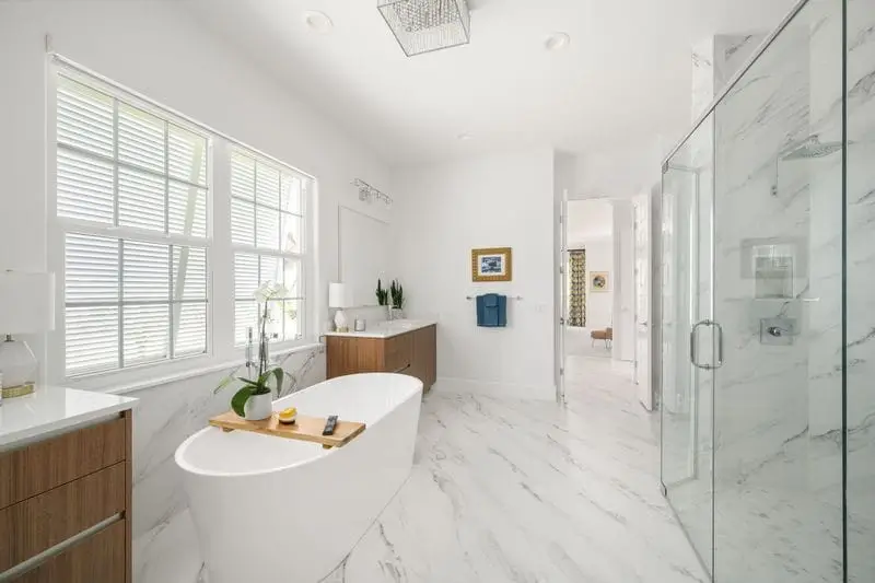 Luxurious Bermuda designed exterior & spacious modern interior boasts 14' high octagon tray ceiling in living room, wood burning FP & custom moldings. European inspired kitchen & baths, large 36x36 porcelain tile floors & walls. KitchenAid appliances 36 cooktop, French door bottom freezer, built-in oven/microwave, 36 hood & Bosch DW. Owner's suite, has 2 vanities, soaker tub, lg shower, walk-in-closets, custom shelving. Impact windows & storm shutters, Hurricane insulated garage door, whole house Generac generator, BBQ gas line, 2 A/C units, split A/C in garage & central vacuum.Rmszapprox