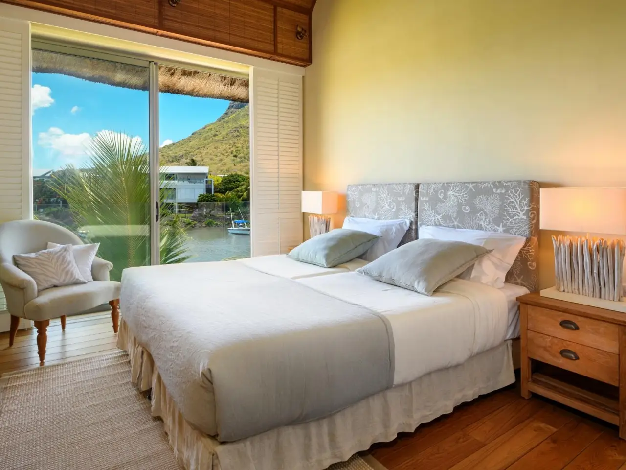 Located at the point of the only residential marina on the southwest coast of Mauritius, in Black River, discover this magnificent villa offering exclusive views of the river and the ocean. 5 bedrooms, 3 of which are ensuite with ocean and sunset views, and with a living area of 395 m2, this exceptional villa offers great amenities and finishes. A boat mooring space and a boat parking space are included as well as the exclusive use of a 243 m2 garden attached to the villa and a parking space. This property offers you the exclusivity of living in a marina with gym, spa, restaurant with swimming pool, and at the entrance, a tennis court with its swimming pool, and double security