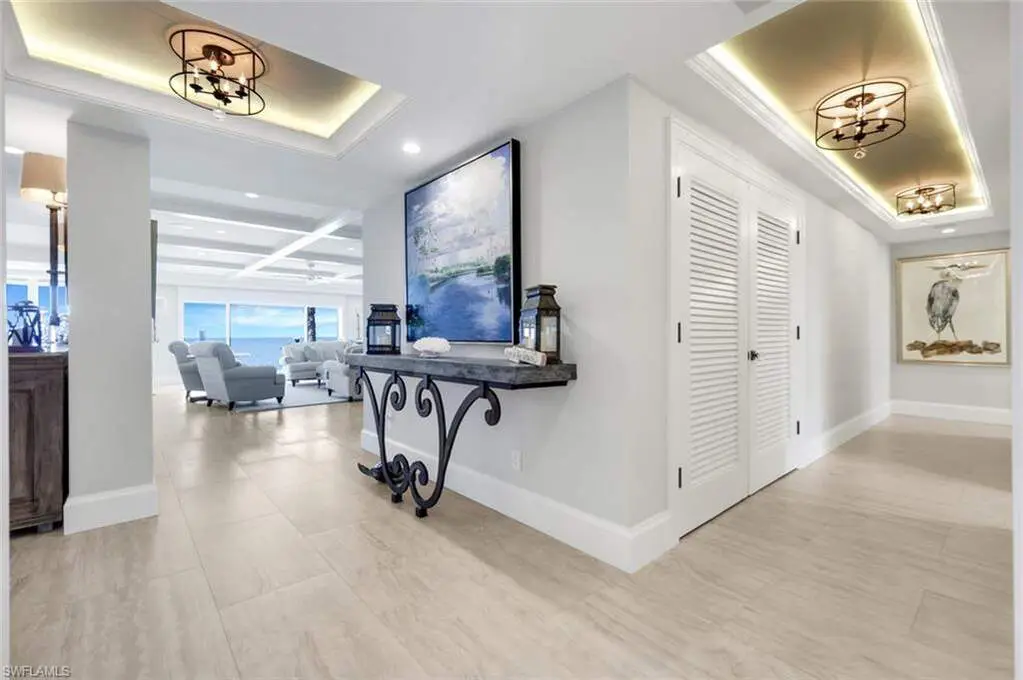 The Best Address in Naples! Rarely offered Beach Retreat, THE LAURENTIANS, DIRECT PANORAMIC VIEWS, Only 32 units, 2 buildings, on 3.5 acres of White Sand -GULF FRONT. This 3rd Floor BEACH Home has been totally re-mastered from "WALLS IN" Nothing overlooked,Coastal contemporary High End Finishes.4 generous sized bedrooms, all en-suite, 75 FEET of captivating GULF VIEWS, listen to the surf from the primary bedroom, State of the Art finishes, from Impact glass to remote window treatments, from zoned unique comfort controlled air to total whole house purified water, Only 2 Units per floor, over 3180 feet of living area. Located minutes from OLDE Naples. 2 Elevators, 16 units, Garage parking. Walk the beach out your front door, or swim in the pool adjacent. Walk to 1st Watch for Breakfast, or downtown to the shopping, galleries and fine restaurants. This uncomparable offering offers flexible closing date.