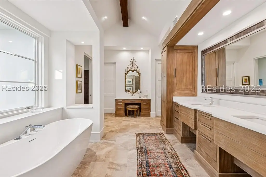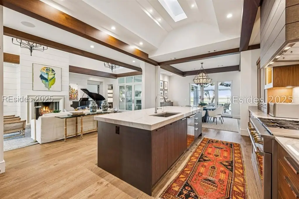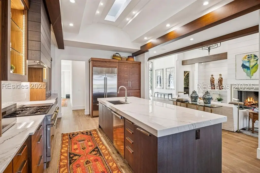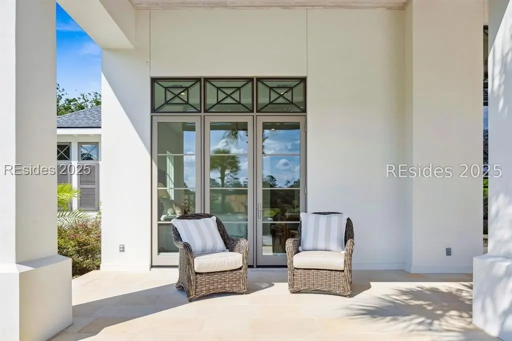 Experience refined Lowcountry living in this award-winning 2023 custom-built masterpiece, designed by a renowned Dallas architect and nestled amidst breathtaking marsh and river views. Showcasing exceptional craftsmanship with bespoke black walnut and white oak cabinetry and beams, this home earned the 2023 Light House Award for Best Kitchen, Best Bathroom, Best Exterior, and Best Overall. Every detail speaks to luxury--from the architect-designed entry door and three ensuite bedrooms to two elegant wood-burning fireplaces with gas options, custom cast stone surrounds, and dual private offices. Entertain effortlessly on limestone patios, a screened rear porch with electric screens, and enjoy the oversized three-car garage with epoxy floors, Sonos sound system, art lighting, and stunning ceiling designs. This is coastal elegance at its finest.