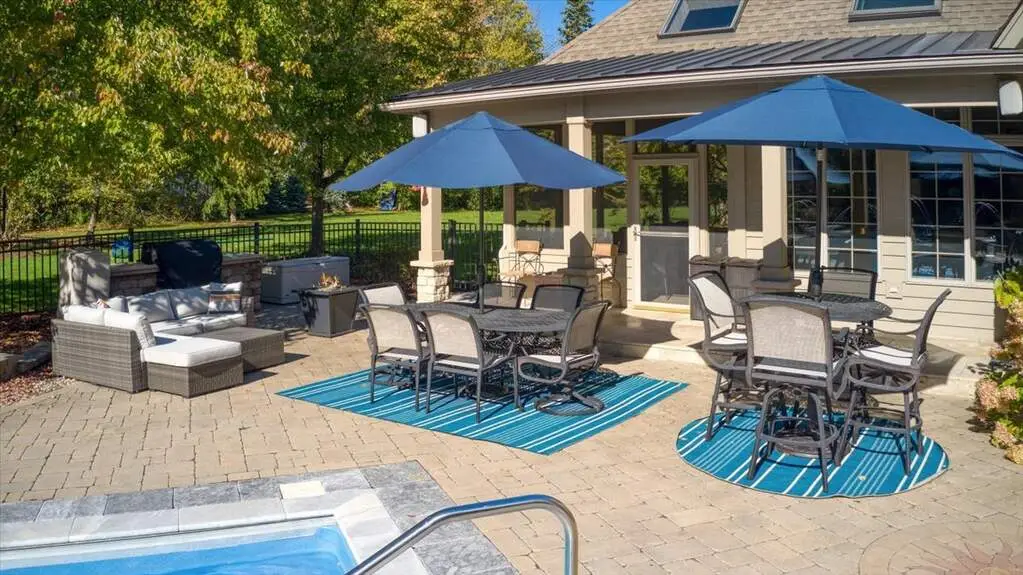 • Luxurious outdoor living with fire pit and built-in grill