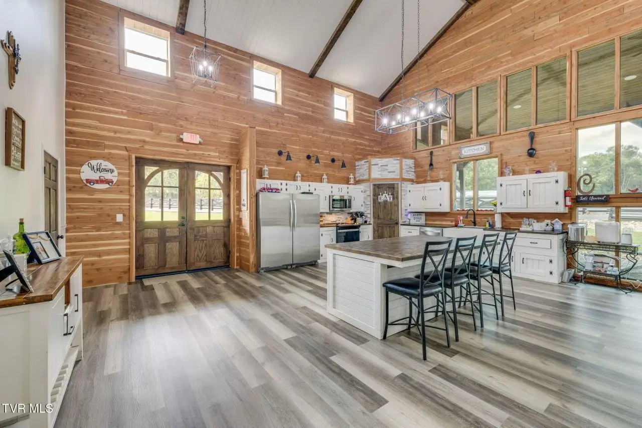 Whether you're searching for your dream home or an investment opportunity, this property has it all! This one-of-a-kind Airbnb offers a 6600 sq ft custom-built barndominium with 2 car garage sitting on nearly 3 acres in the scenic Tennessee countryside. Plus, a 60x40 detached 3-bay garage/shop. This 5-bedroom, 3-bath layout showcases 32-foot cathedral ceilings and expansive windows that fill the space with natural lighting. A cozy fireplace adds warmth and charm to the main living area, creating an inviting atmosphere for gatherings throughout the year. The master suite is conveniently located on the main level featuring a spacious master bedroom, a full bath with double vanities, a beautifully tiled shower, and a large walk-in closet. Upstairs, you will find two additional bedrooms, a full bath, a large bonus room, and a movie room perfect for movie nights, game days, or relaxed hangouts with friends and family. Completely Furnished! Take a refreshing splash in the in-ground pool, the perfect spot for sunny afternoons and evening swims. Enjoy the screened-in porch with an outdoor kitchen featuring a fridge, sink, and Blackstone grill, where cookouts and brunches with family and friends are always a good time. The porch also includes two large TVs, perfect for football season and game nights. Perfect as a private residence or as a vacation rental, it offers the ideal backdrop for weddings, birthday celebrations, weekend retreats, or the ultimate getaway. The outdoor space is well-suited for event setups - tents, tables, dance floors, photo stations, and more. Also included is a 60x40 metal garage with three garage bays, currently leased out month to month by a local trucking company. Offering two offices and a full bathroom with shower, generating consistent monthly income from a long-term tenant. Currently zoned B3, but with approval from planning and zoning, it can be converted to residential.