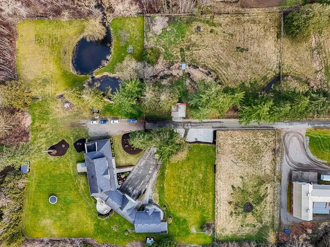 This breathtaking 8.39-acre country estate is the complete package. Perfectly blending rural charm with modern convenience, this extraordinary property offers two residences,a 7-stall barn with a tack room,a classic red barn with a loft, a workshop,and pastoral beauty in every direction. The principal residence was completely remodeled and renovated in 2015, featuring top-tier craftsmanship and high-end finishes. Designed for comfortable living, the primary bedroom is conveniently located on the main floor, while four additional bedrooms and a spacious games room are upstairs.A long, scenic driveway welcomes you home, leading past rolling fields, peaceful ponds, and stunning landscapes.