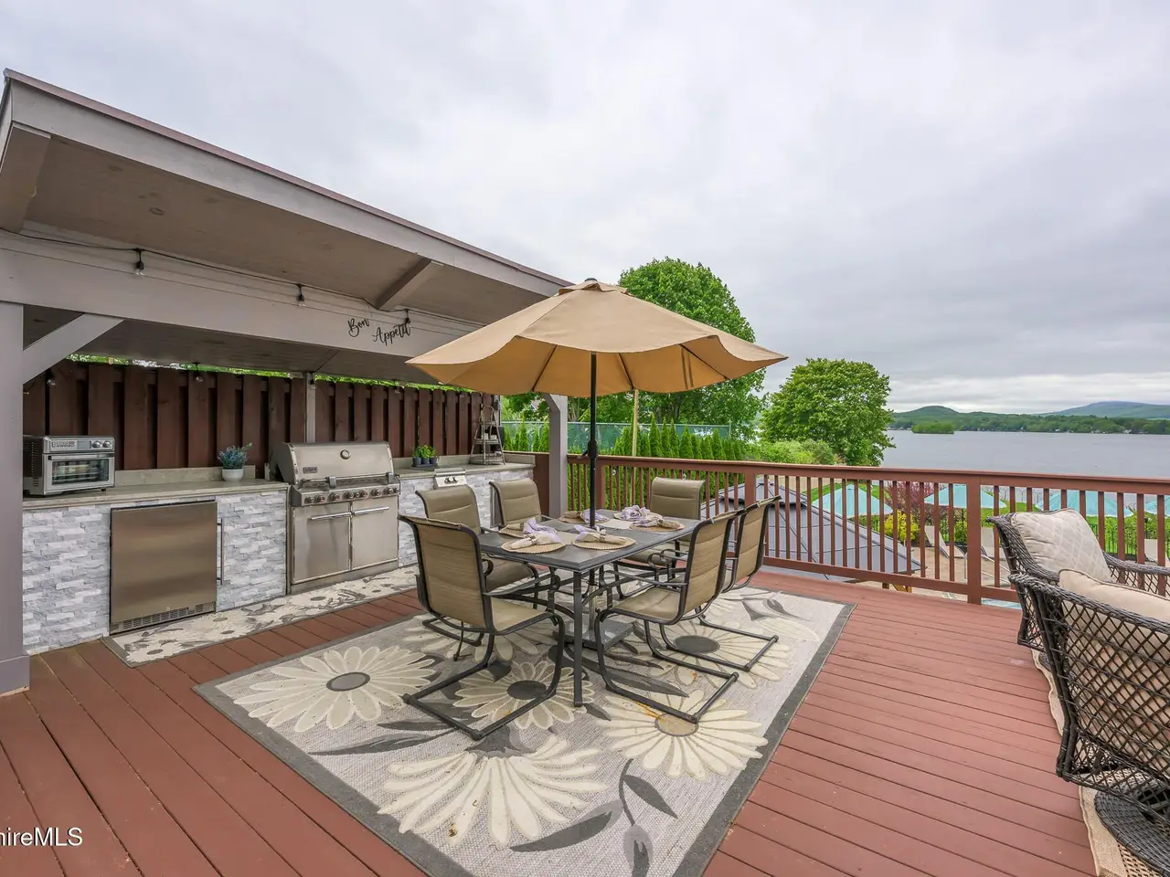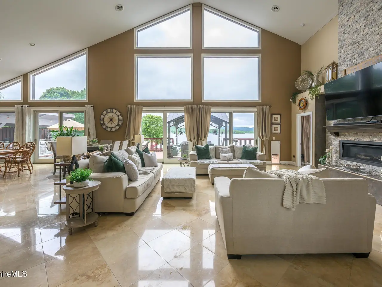 Welcome to an extraordinary opportunity on the shores of Pontoosuc Lake. This remarkable estate sets a new standard for lakefront living in Pittsfield and beyond, offering a rare combination of luxury, scale, and setting.With over 18, 700 square feet of total space, including an impressive amount of garage space suitable for car collectors or hobbyists, this home provides room to live, relax, and entertain on a grand scale. The main living area features a thoughtful open floor plan that connects seamlessly to the water, making every space feel tied to the view.Enjoy panoramic northern-facing views of Pontoosuc Lake, Mount Greylock, and the surrounding Berkshire hills. Whether lounging on the expansive deck, swimming in the in-ground pool, or setting off from your private dock the connection to nature and water is ever-present. This gated home is also perfectly suited for multi-generational living or hosting extended guests. In addition to the main living area, there are three well-separated living quarters, each with its own kitchen, living room, and private entrance. This layout allows everyone to enjoy privacy and independence while still being part of the same retreat. Inside, the kitchen is a true chef's space, outfitted with high-end Wolf and SubZero appliances and detailed with exceptional finishes. Outdoors, the property continues to impress with a fully equipped kitchen and built-in BBQ, beautifully integrated pool and lounge areas, a gas fire pit, and direct access to the water, making it ideal for entertaining at any scale. Throughout the home, music can be enjoyed through a whole-house audio system. There are five laundry units, a dedicated home office, a spacious game room and loft, and parking for 18+ vehicles. Entry is both gated and fully fenced for privacy and security, with an electric gate welcoming you into the estate. The home was built with a strong emphasis on sustainability, designed to be nearly fully eco-friendly, and features central air along with premium Pella iron-clad windows and doors. This is more than a lake house. It is a legacy property that offers the best of Berkshire living with privacy, presence, and a front-row seat to one of the most breathtaking views in the county.