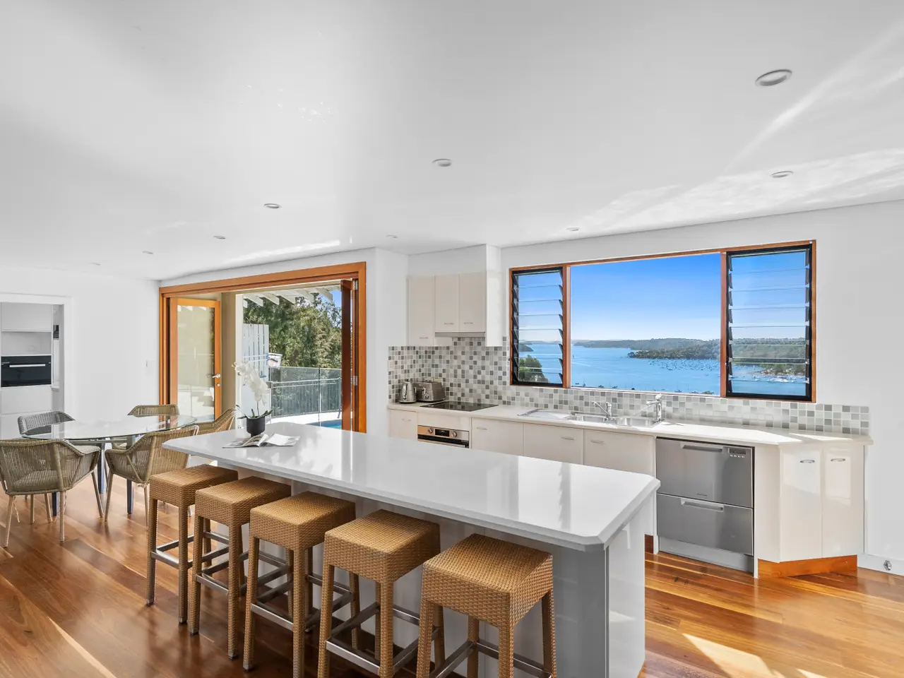 Privately nestled within a full acre on Bayview's most prestigious street, this contemporary entertainer boasts extraordinary, due north vistas straight up Pittwater to Lion Island and the Central Coast. The home spans three light-soaked levels with ample space for the family to spread out, while inviting the outdoors in with all main living zones merging with an enormous sunlit terrace and sparkling saltwater pool. Well designed and finished with quality appointments throughout, the expansive layout provides maximum privacy and flexibility for parents, children and weekend guests. - Sensational position offering 180-degree north views across Pittwater - Seamless connection to expansive, sunlit terraces + saltwater pool - Gorgeous hardwood floors and bifolds across all main living zones - Tri-level design; warm and sunny in winter, cool and breezy in summer - Exceptional privacy and a versatile layout; bedrooms on each level - Elegant kitchen includes both walk-in pantry and full butler's pantry - Master ensuite, fully equipped home theatre, wood burning fireplace - Guest powder room, air con, double garage with internal access