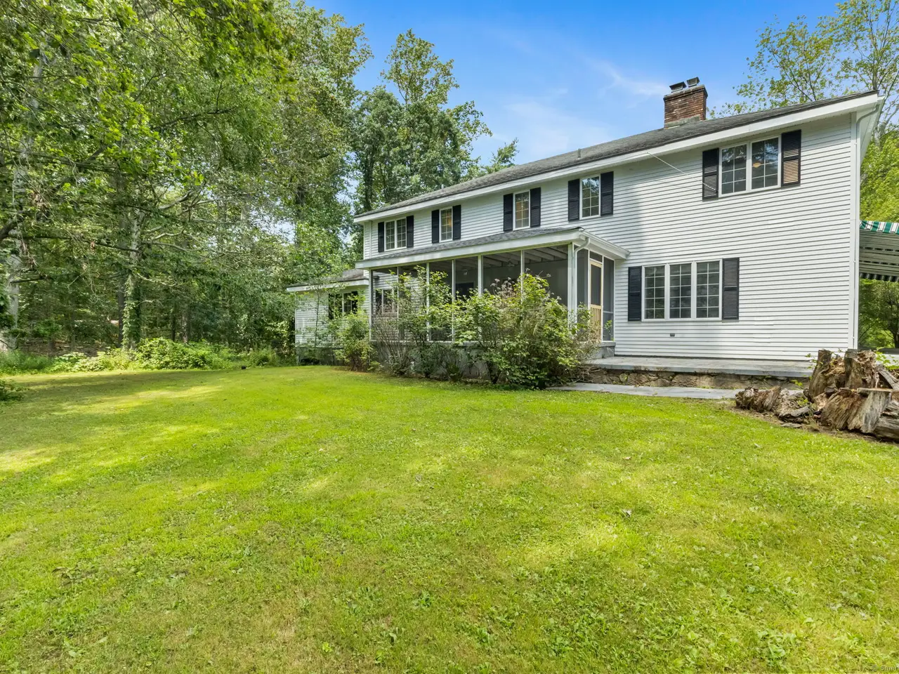 Opportunity Awaits! Bring your vision to this COLONIAL in desirable New Canaan. Potential for customization is limitless. Gorgeous 2 park-like acres with pond access and aerator welcomes you. Property features a peaceful yard, mature shade trees that line the driveway and lend privacy. Picturesque walking/biking community where neighbors gather. Wrap around porch invites you to sit, read, chat leisurely. Large foyer leads you to ample living spaces including; kitchen with island, dining room, living room and family room w/ wood burning brick fireplace. Three season porch. French doors to stone patio for dining al fresco. First floor guestroom w/ en-suite. Upstairs; 4 additional bedrooms, balcony, 2 hall baths and a Primary en-suite. Baths are finished with neutral colored tiles. Four garage bays total; 2 car attached garage and additional detached 2 car garage with bonus finished space above- perfect for home office, studio, gym, multi-generational living. Storage space abounds. Central Air to keep you cool. With its adaptable layout and prime location, this home presents a rare opportunity of convenience and possibility. Close to award winning New Canaan Schools, main commuting roads, Metro-North train, the Silvermine Art Guild and only a few minutes to shopping too! This home has a great floor plan to enjoy entertaining and everyday living. Portable generator to keep you running if ever needed. Untapped potential. Perfect to renovate into your dream home. Floor Plans are approximate.