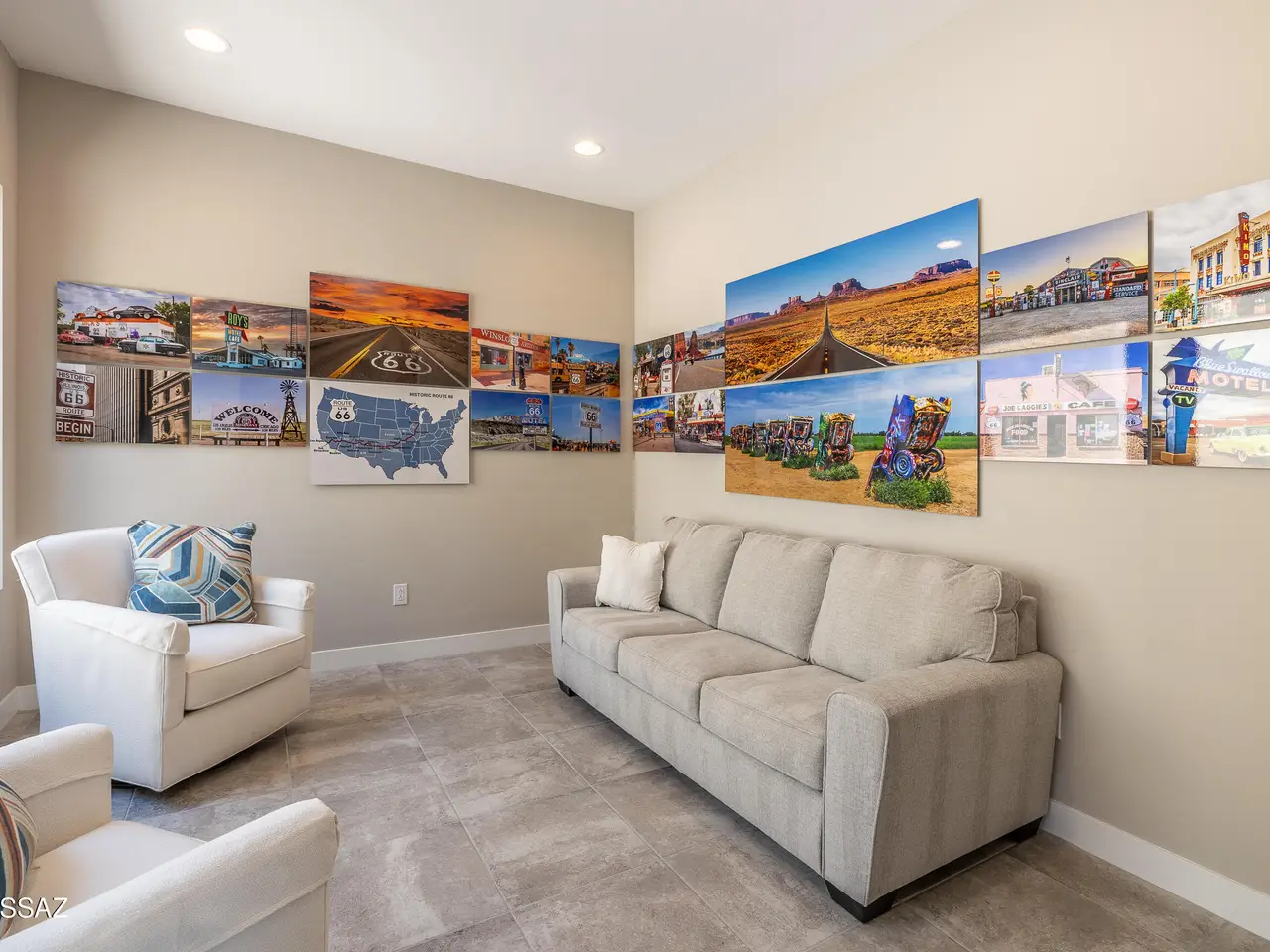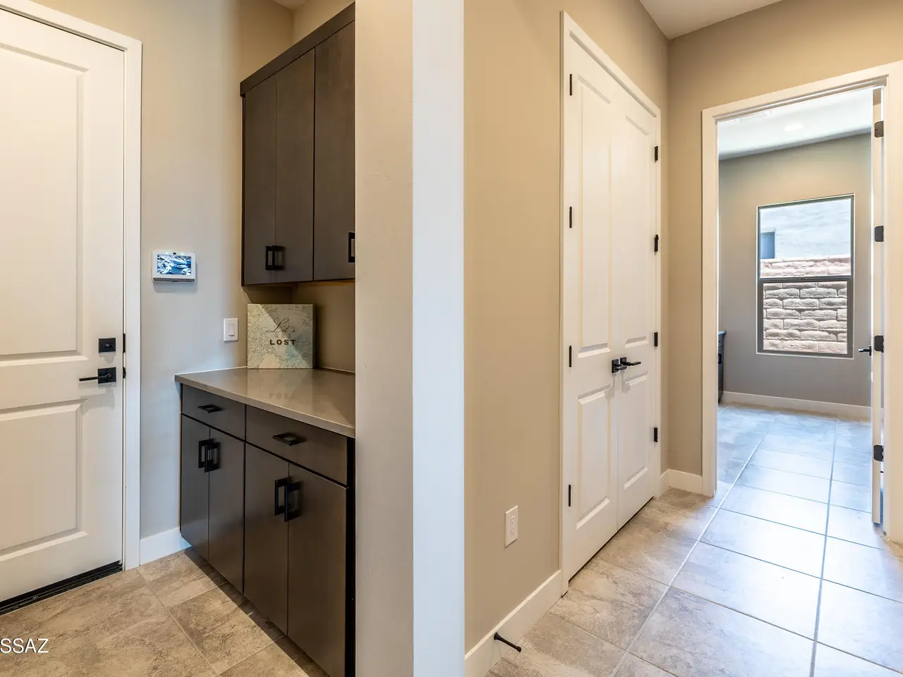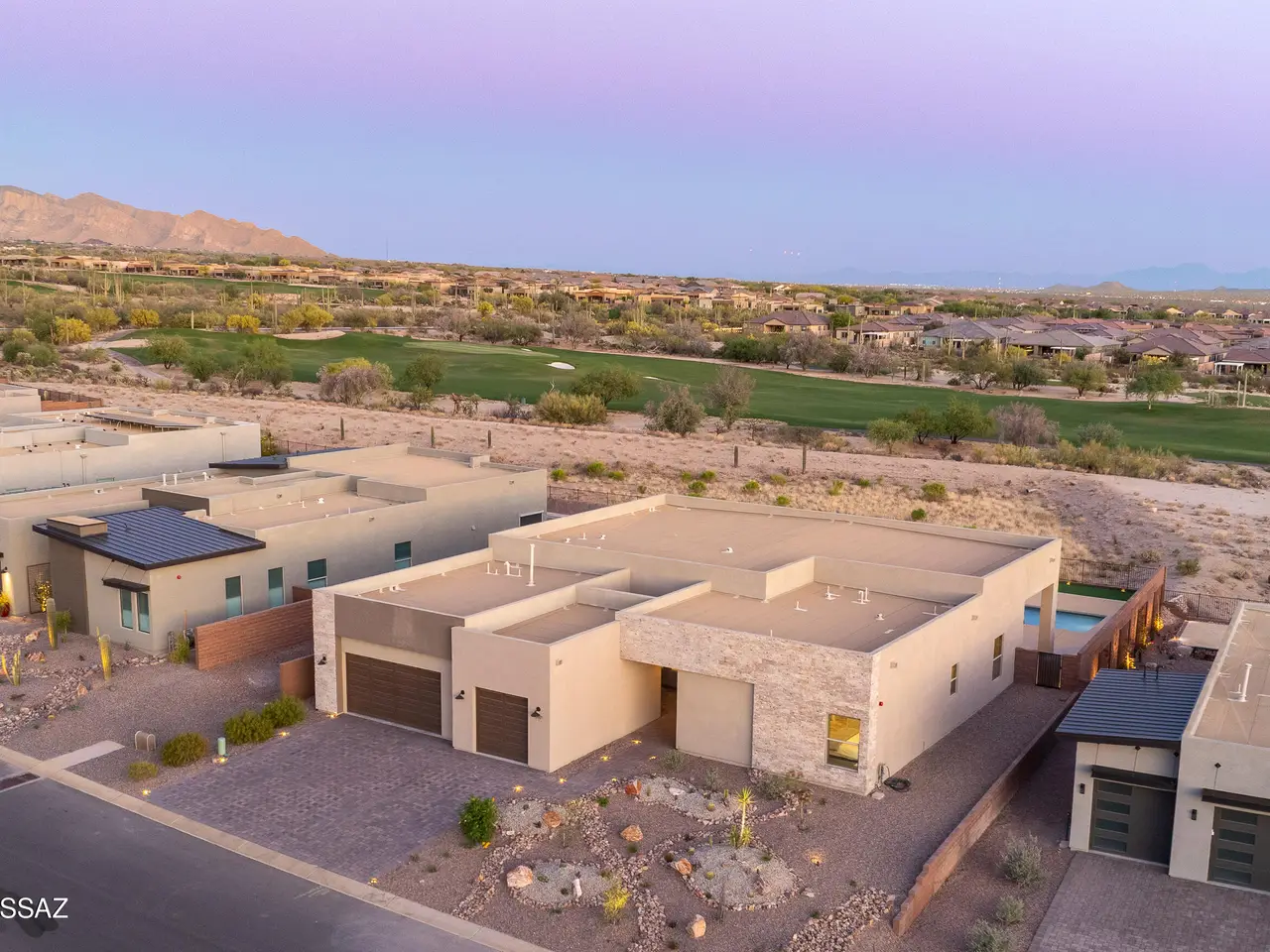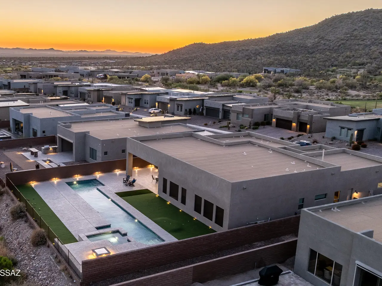WOW best describes this stunning, relaxing, luxury-living-in-the-desert exquisite home at Fairfield's Boulder Bridge Pass. Owner has spared nothing to make this home the most inviting residence in the neighborhood. One of a kind 60ft heated lap pool let's you swim real laps- real exercise! Plus other casual entertainment: your own putting green & bocce ball court! Elevated spa & modern crushed glass firepit hosts beautiful mountain views. All at your own relaxing resort style home. No homes behind-natural desert buffer then the golf course beyond. Sunrise & sunset skies will mesmerize you at different times of the year. Panoramic mountain views throughout backyard. Deep & spacious under porch area + private (and rare for the subdivision) front courtyard. Great for private relaxation. + This Sycamore model has been modified to become a full 4 bedroom all w/private ensuite bathrooms - & of course an extra powder room. Grand open great room concept living. Spacious kitchen island bar, grand dining area, and additional private den or bonus room. Drop station as you enter the home through garage (which is an oversized 3 car garage w/tankless water heater. Expansive laundry room w/utility sink and mini mud room/hallway. Darkening room tight window shades in all bedrooms. Kitchen is state of the art w/LG stainless appliances. NO carpet in home! Stylish and modern 12'x8ft high corner meet Multi-Slide door in great room/dining. Clean, crisp & new. Home barely lived in. Still has new home feel! Lovely custom front landscape design just installed May 2025. This is a spectacular home - new and absolutely beautiful with basically nothing left to do but move in and enjoy your oasis resort style living in the desert!