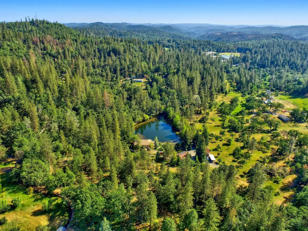 Introducing a stunning Mediterranean-style retreat nestled in the heart of 23.5 acres of natural beauty. Enter through the gates to this tranquil oasis and be greeted by a large pond brimming with bass, bluegill and a variety of magnificent wildlife. The main house is 3600+/- sqft and boasts three master suites, each offering outside access for seamless integration with nature. Brazilian hardwood decks invite relaxation and elevate outdoor entertaining over a picturesque setting of the lovely pond. A charming, full studio guest house approximately 864+/- sqft awaits above the workshop as well as a detached office with additional garage space below. Owned solar panels and three miners inches for irrigation supply ample water for the rhododendrons, crape myrtles, fruit-bearing trees and your own fenced-in garden. This unique property seamlessly blends the beauty of Mediterranean architecture with the splendor of its surroundings. Paradise awaits!